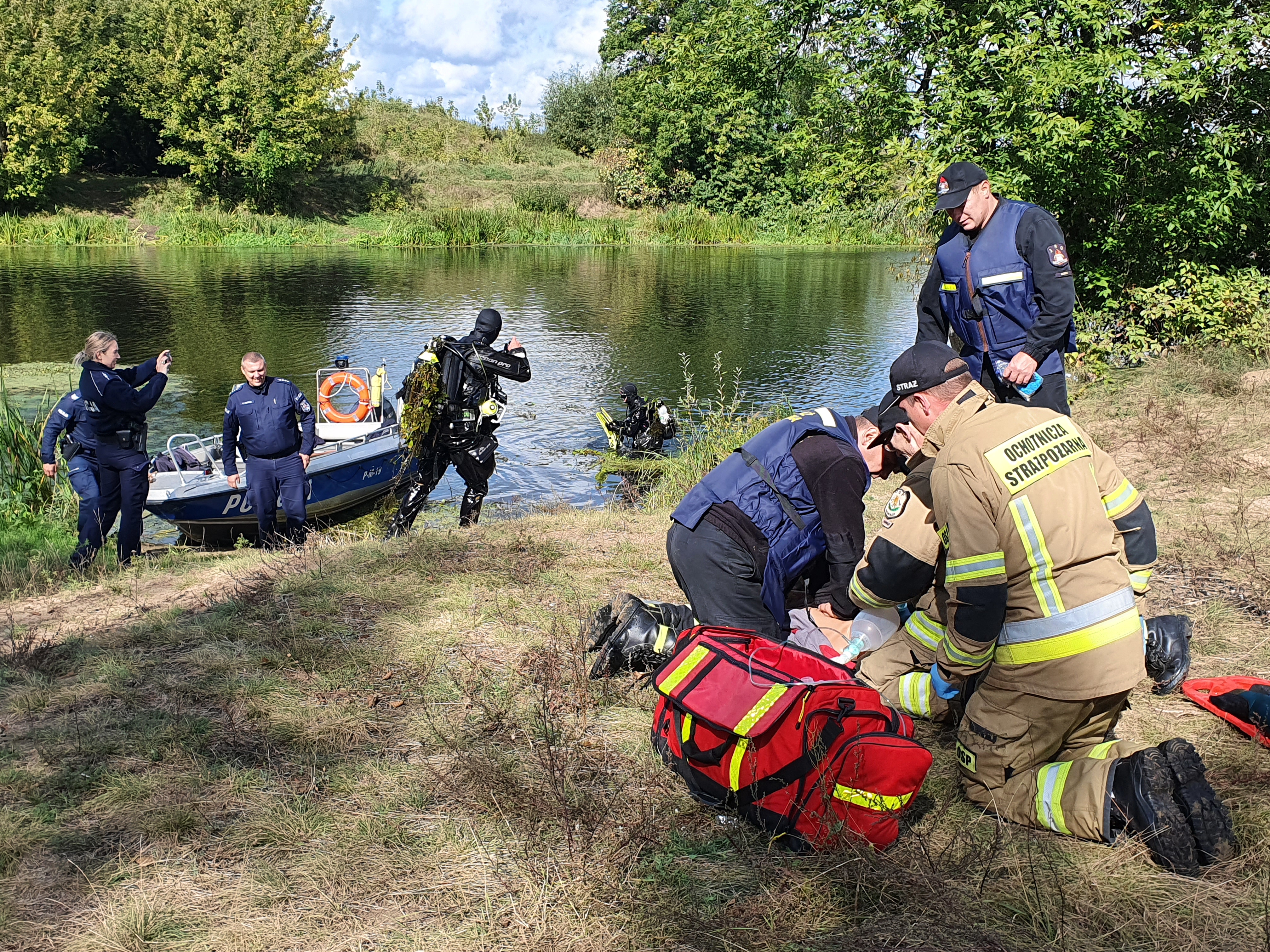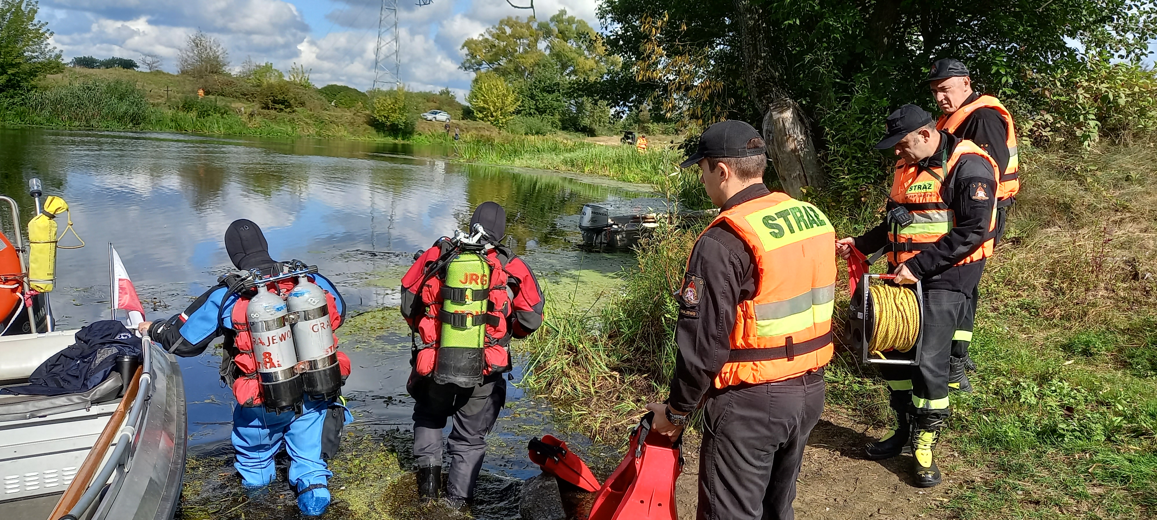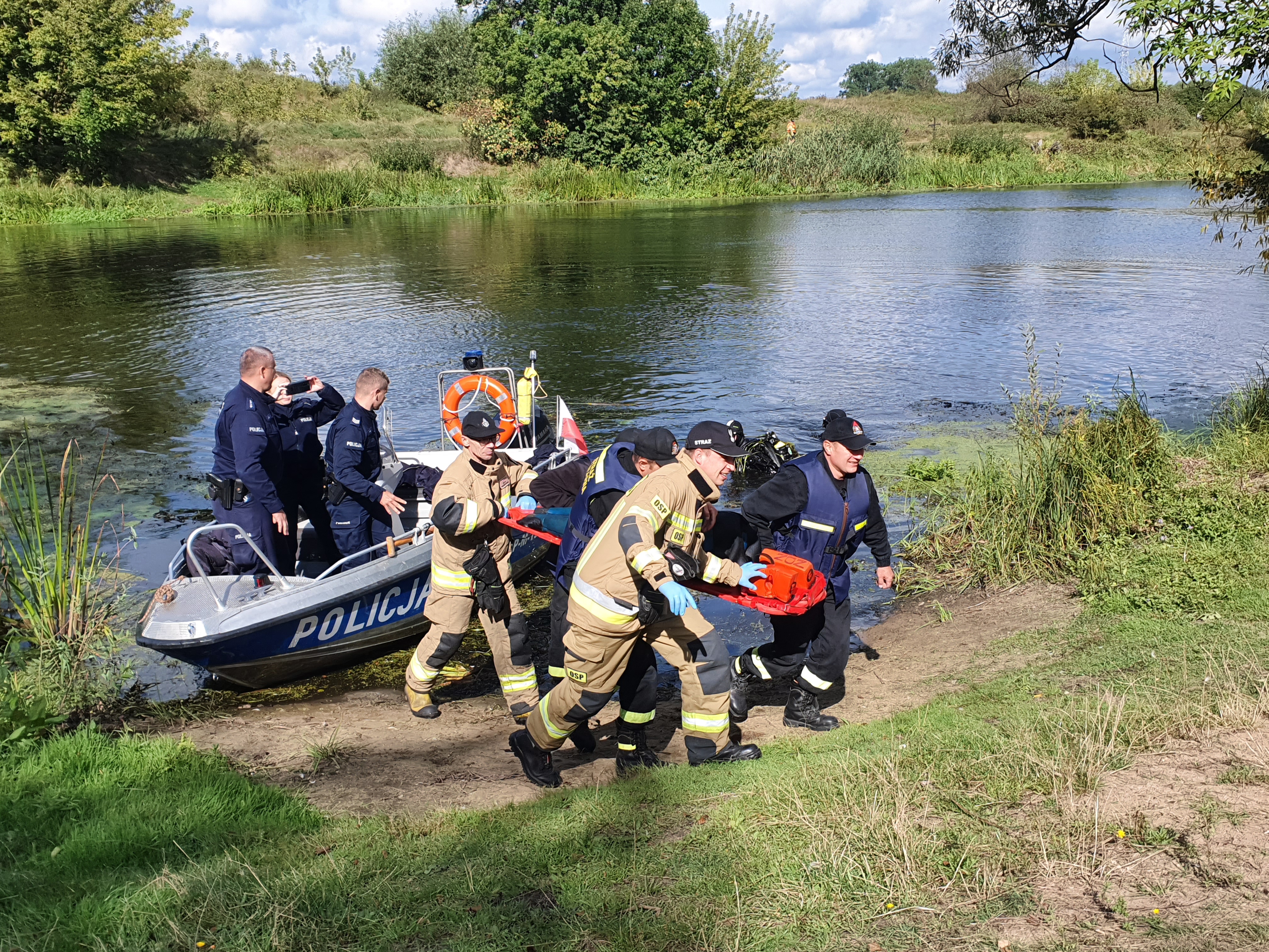W dniu 13 września 2022 r. w okolicy Osowca, gm. Goniądz, powiat moniecki odbyły się ćwiczenia dowódczo – sztabowe z zakresu doskonalenia technik ratownictwa osób tonących na rzece Biebrza. Założeniem do ćwiczeń było zaginięcie dwóch osób płynących kajakiem. Do zadań ratowników należało odnalezienie osób poszkodowanych, ich transport oraz udzielenie im kwalifikowanej pierwszej pomocy, a także odnalezienie sprzętu pływającego oraz jego przetransportowanie na brzeg. W ćwiczeniach udział wzięli strażacy płetwonurkowie ze Specjalistycznej Grupy Wodno – Nurkowej „Biebrza”, w skład której wchodzą strażacy z KP PSP Grajewo i KP PSP Mońki. Działania PSP wspierali strażacy z OSP Goniądz i OSP Osowiec, a także funkcjonariusze z Komendy Powiatowej Policji w Mońkach. Z uwagi na małą przejrzystość wody działania były znacznie utrudnione. Pomimo tego, poszkodowani zostali zlokalizowani i ewakuowani. Udało się także zlokalizować i przetransportować sprzęt pływający Ćwiczenia obserwowali: Komendant Powiatowy PSP w Mońkach, Zastępca Komendanta Powiatowego PSP