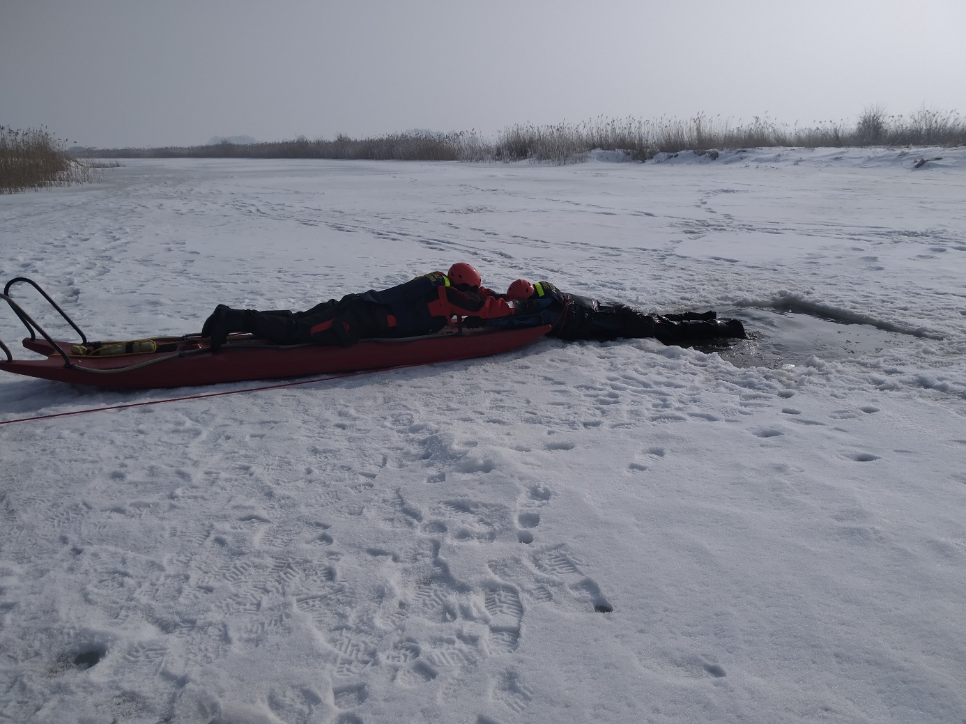 Ćwiczenia z ratownictwa lodowego.