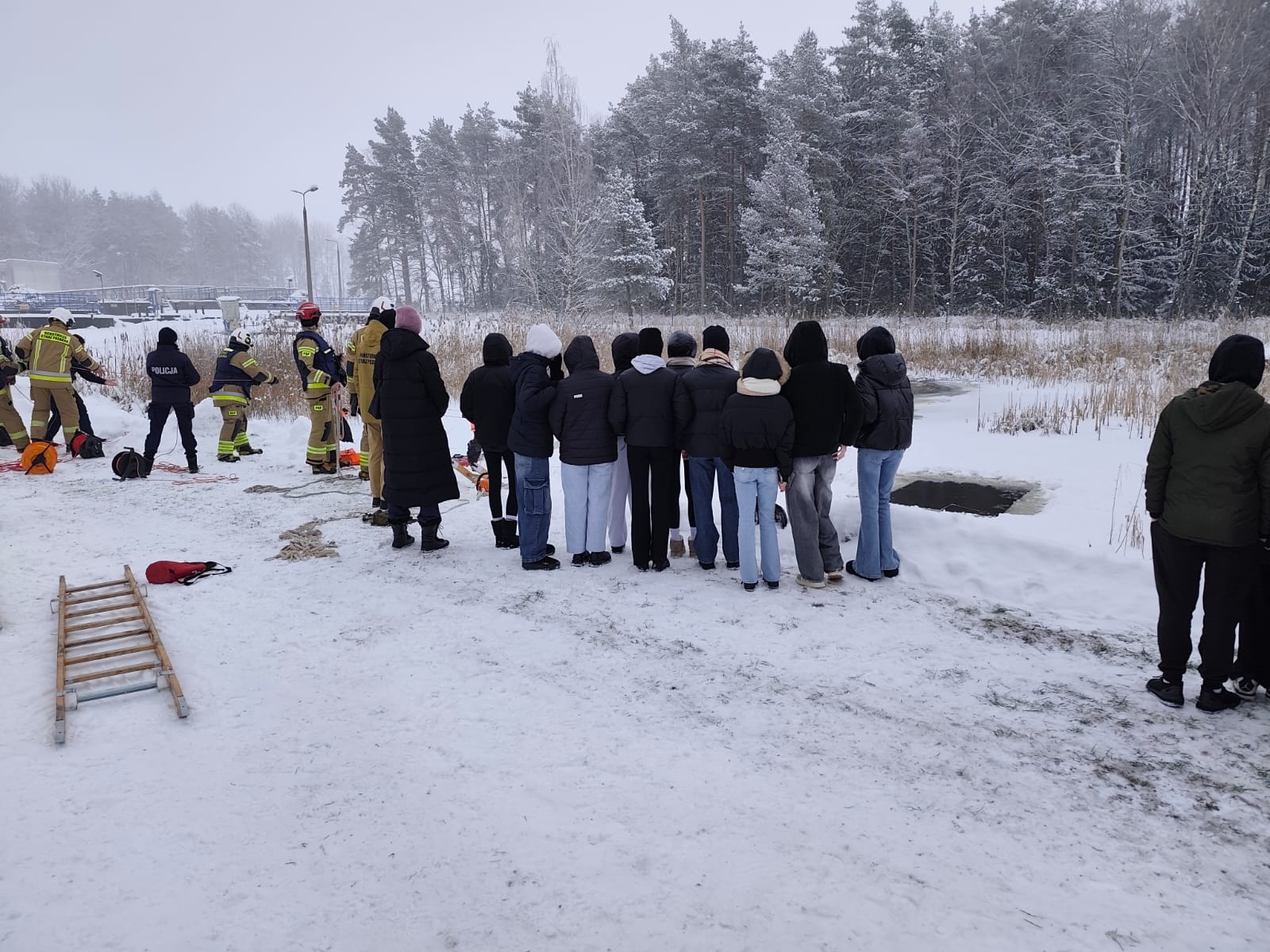 Ćwiczenia połączone były z pokazami oraz prelekcją dla młodzieży szkolnej z monieckich szkół, których celem było podniesienie świadomości na temat zagrożeń związanych z wchodzeniem na zamarznięte akweny.