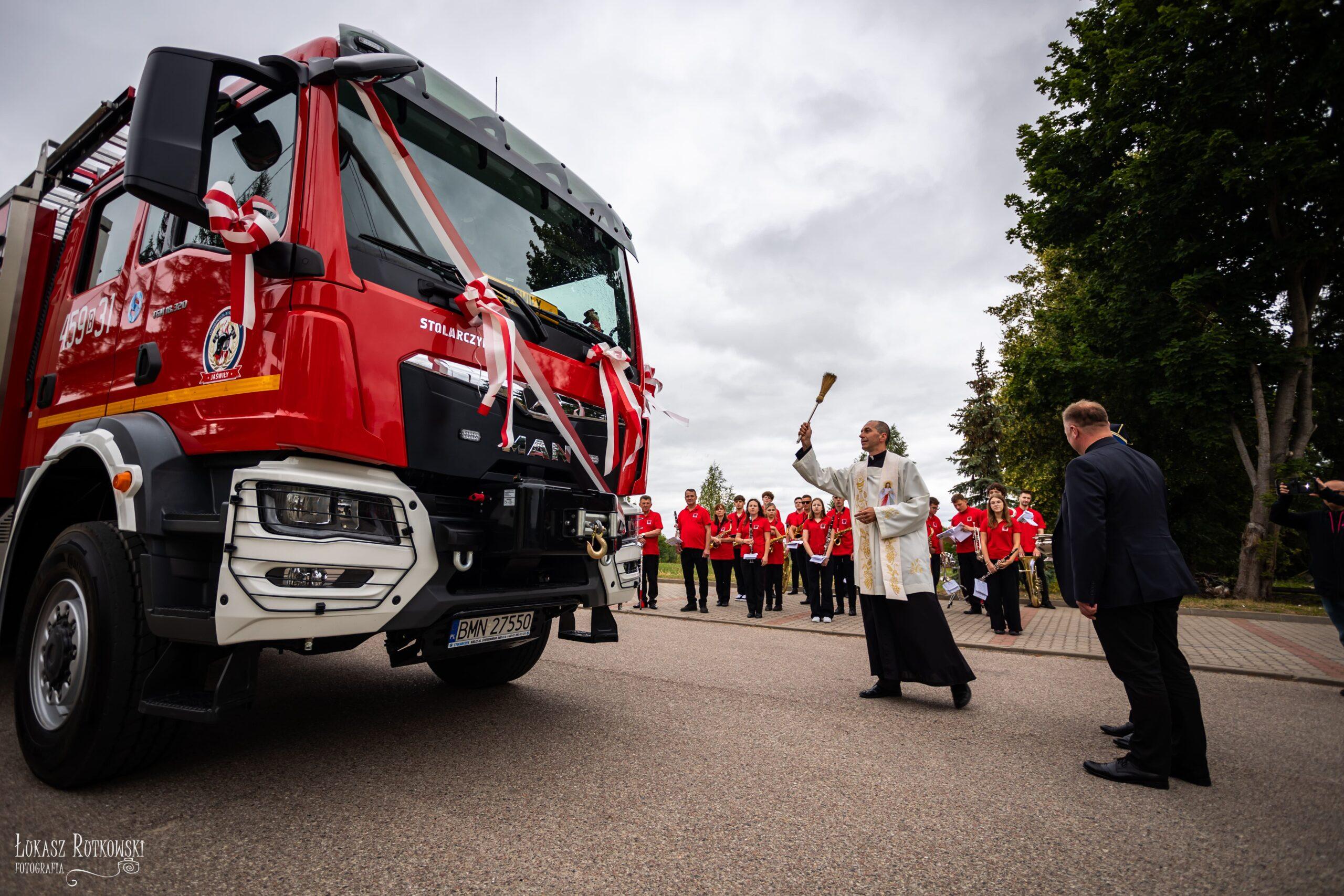 Kolejnym punktem uroczystości było poświęcenie i przekazanie nowego samochodu ratowniczo-gaśniczego. Poświęcenia dokonali: ks. mł. bryg Wojciech Ejsmont – Wojewódzki Kapelan Strażaków, ks. Tadeusz Rutkowski – proboszcz parafii p.w. Najświętszego Serca Pana Jezusa w Jaświłach oraz poprzedni proboszcz parafii w Jaświłach: ks. Andrzej Kramkowski. Aktu przekazania dokonali st. bryg. Marcin Wierel – Zastępca Podlaskiego Komendanta Wojewódzkiego PSP oraz Pan Marek Jarosz Wójt Gminy Jaświły.