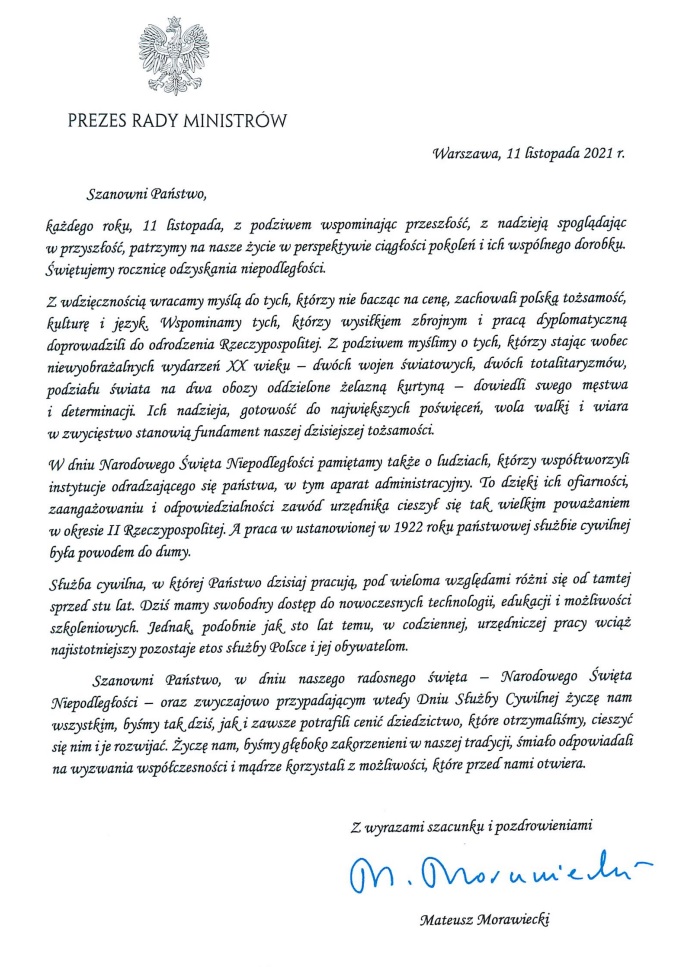 List Prezesa Rady Ministrów do członków korpusu służby cywilnej