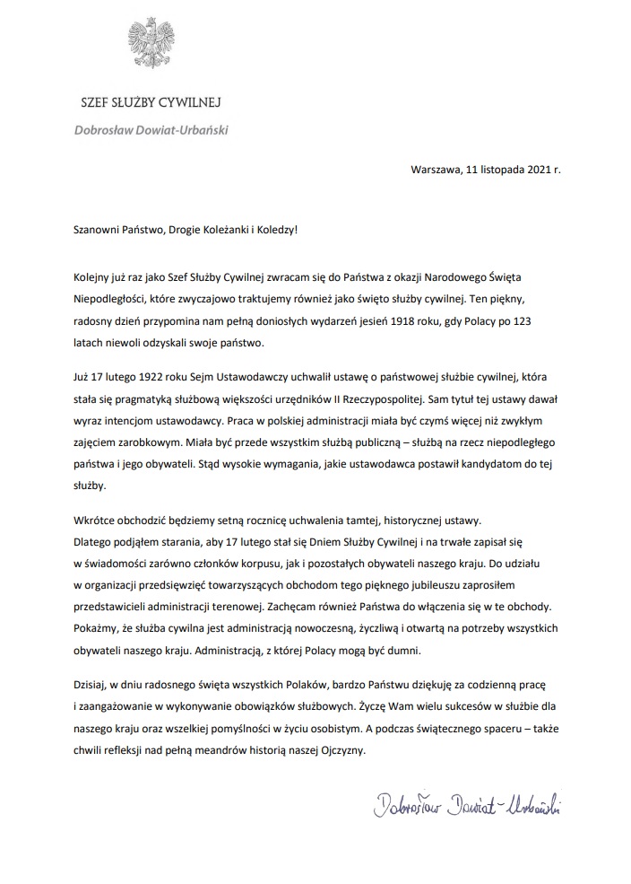 List Szefa Służby Cywilnej do członków korpusu służby cywilnej