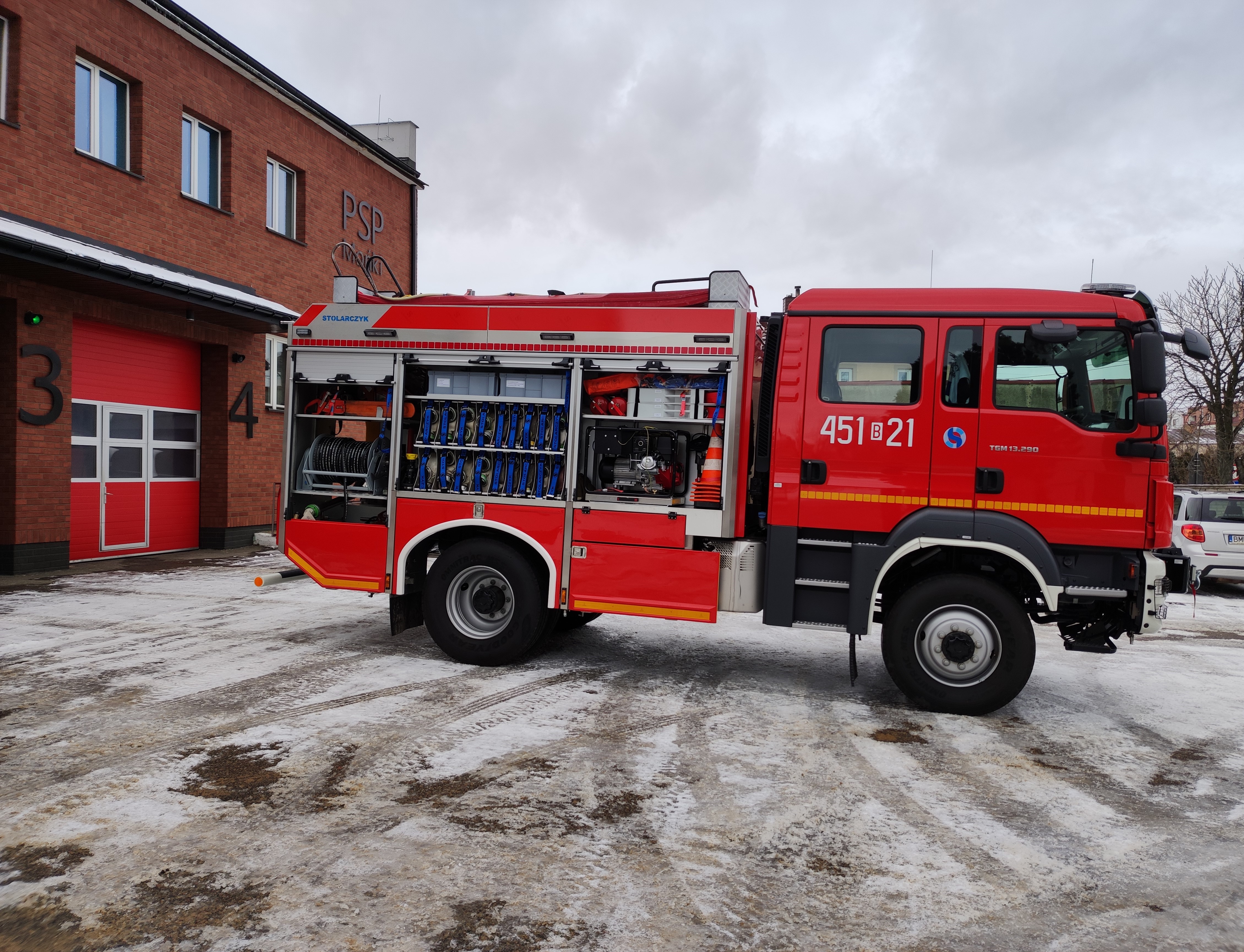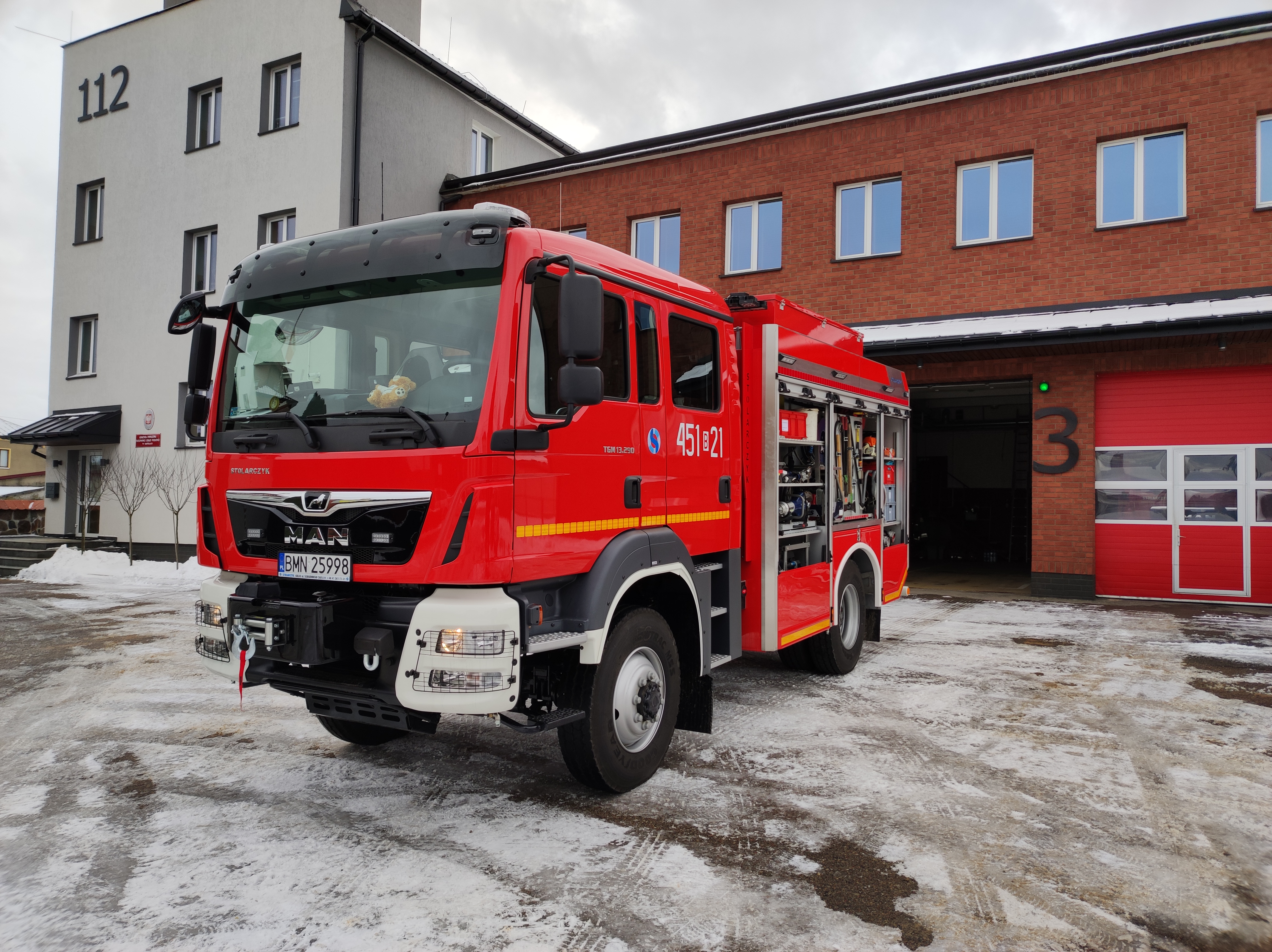 Z dniem 1 lutego 2022 roku do służby w Komendzie Powiatowej PSP w Mońkach wszedł nowy średni samochód ratowniczo – gaśniczy na podwoziu Man TGM 13.290 4x4 typu GBA 3,5/28. Pojazd zabudowała firma STOLARCZYK technologia pożarnicza. Zakup pojazdu możliwy był dzięki środkom z budżetu państwa, dofinansowaniu z Funduszu Przeciwdziałania Covid- 19 oraz wsparciu przez lokalne samorządy z gmin: Krypno, Mońki, Jaświły i Trzcianne. Całkowity koszt pojazdu wraz z wyposażeniem wyniósł 896 670 złotych. Nowy Man zastąpi dotychczas użytkowany samochód GBA 2,5/24 Renault Midlum 300.14 DXi. Pojazd zakupiono z następującym wyposażeniem: zestaw lanc mgłowych do szybkiego natarcia, agregat prądotwórczy o mocy 5,8 kW, dwie osobiste kamery termowizyjne, drabinę nasadkową, pięć radiotelefonów nasobnych w wykonaniu Ex oraz 5 latarek w wykonaniu Ex, działko wodno – pianowe oraz wciągarkę samochodową. Pozostałą cześć wyposażenia stanowi sprzęt przeniesiony z dotychczas użytkowanego średniego samochodu ratowniczo – gaśniczego.