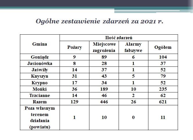 Podsumowanie działalności KP PSP w Mońkach za 2021 r.