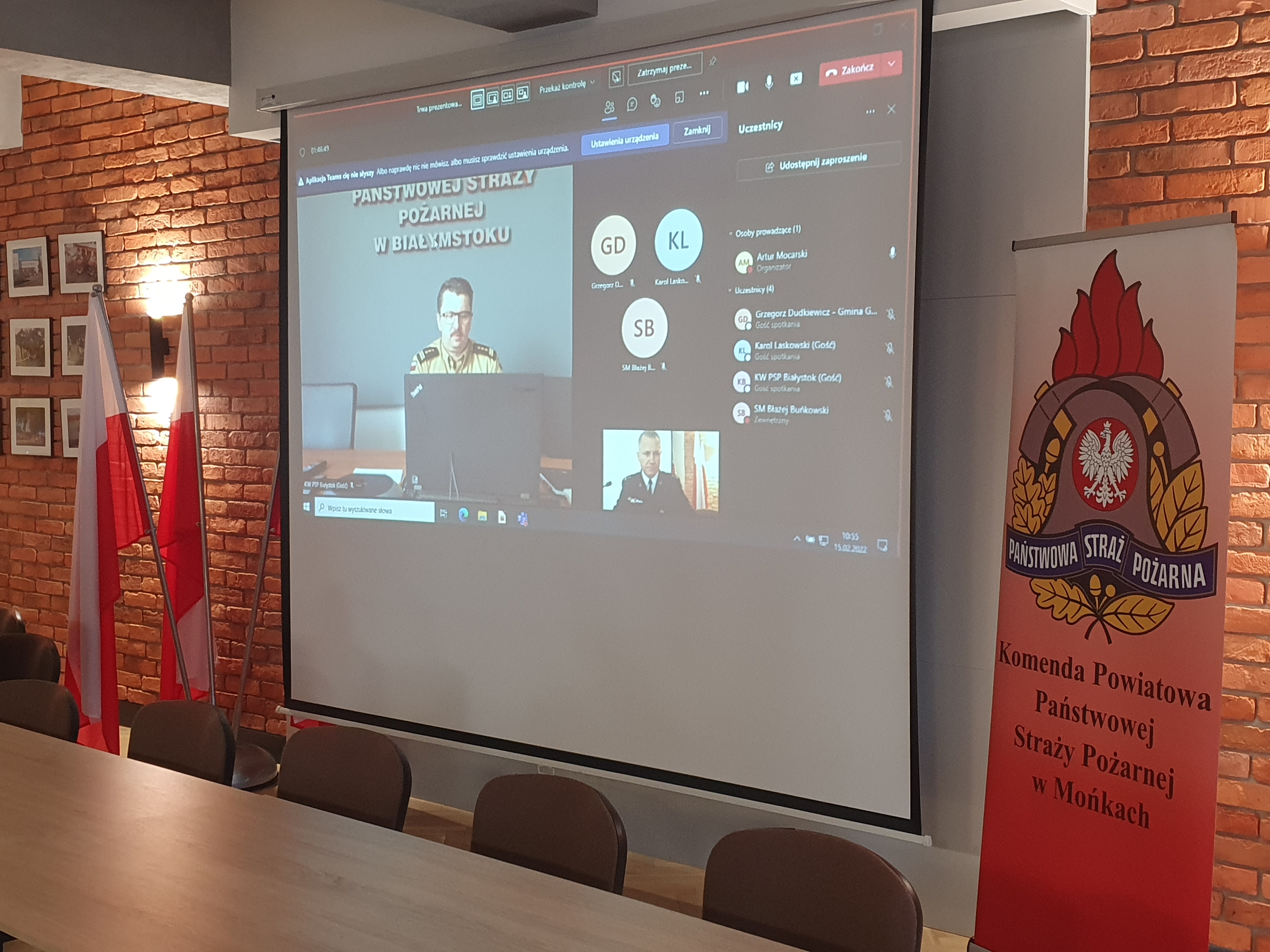15 lutego 2022 roku o godzinie 11.00 odbyło się podsumowanie działalności Komendy Powiatowej Państwowej Straży Pożarnej w Mońkach. Spotkanie odbyło się w formie wideokonferencji, w której uczestniczyli st. bryg. Robert Dzierżek zastępca podlaskiego komendanta wojewódzkiego PSP, Pan Błażej Buńkowski starosta powiatu monieckiego, burmistrzowie i wójtowie, prezes zarządu powiatowego związku OSP RP w Mońkach oraz funkcjonariusze i pracownicy cywilni KP PSP w Mońkach. Po krótkim powitaniu komendant powiatowy PSP w Mońkach bryg. Dariusz Koc wraz ze swoim zastępcą podsumowali działalność komendy za 2021 r., przedstawiono również główne kierunki i zadania zaplanowane do realizacji w 2022 roku. Spotkanie było dobrą okazją do złożenia podziękowań samorządom powiatu monieckiego za współpracę i pomoc oraz podziękowań funkcjonariuszom i pracownikom cywilnym tutejszej komendy za zaangażowanie w dążeniu do zrealizowania wszystkich planów.
