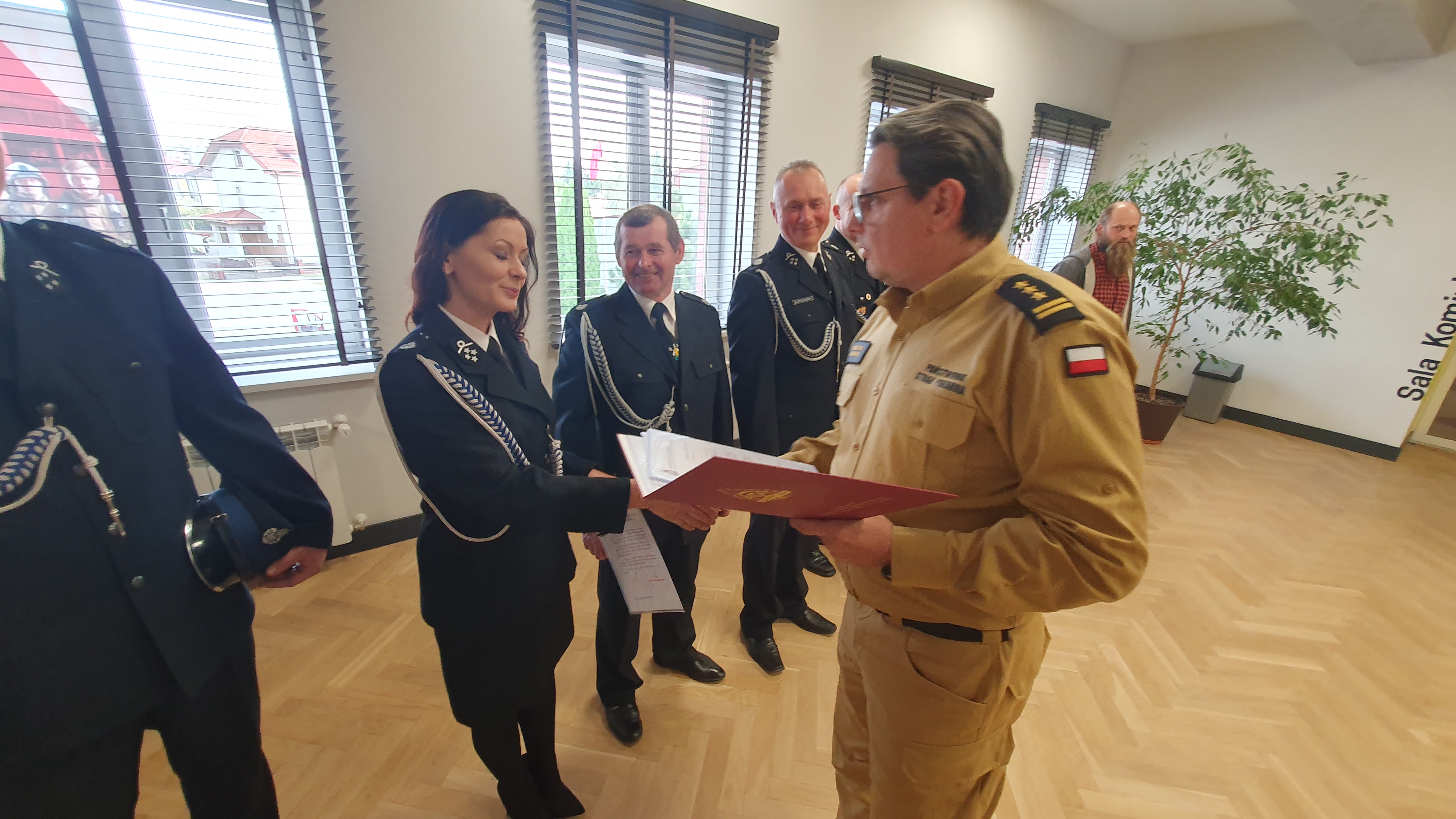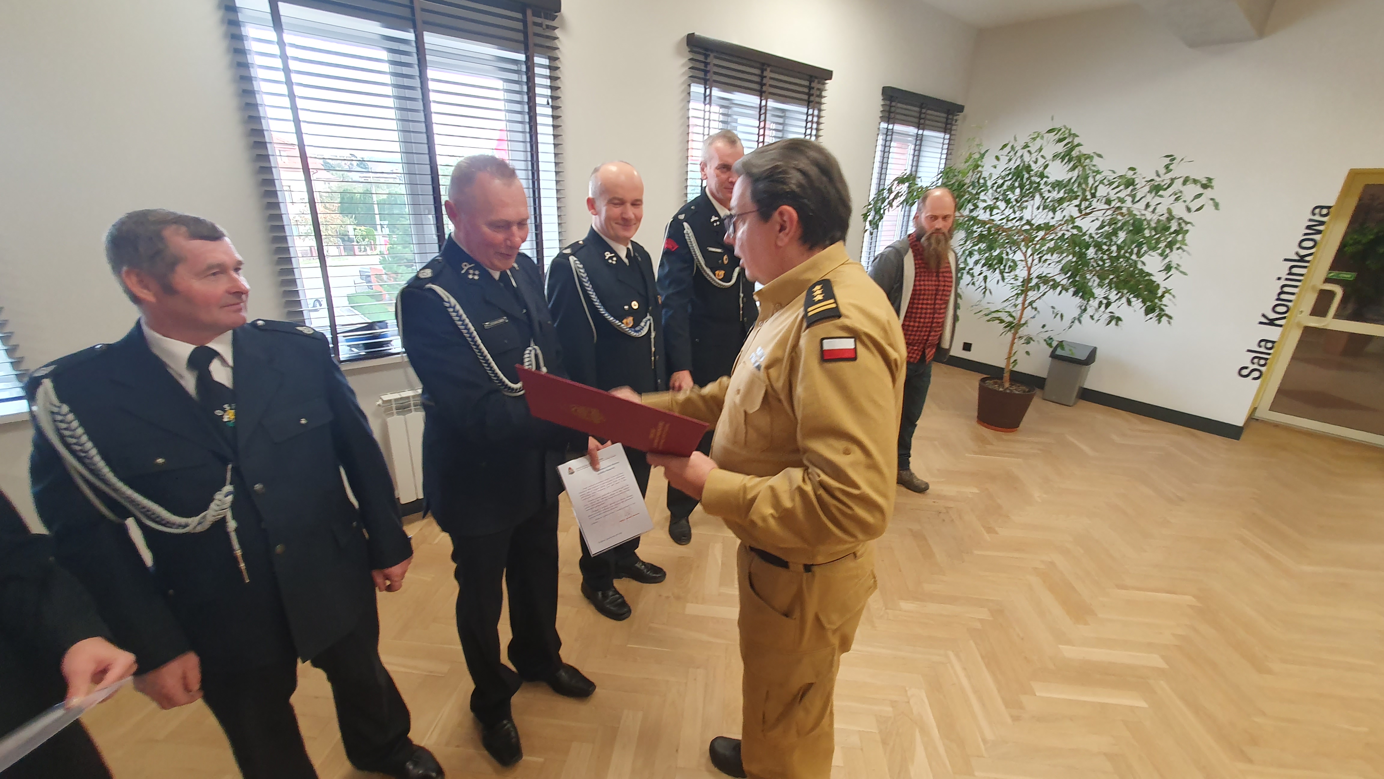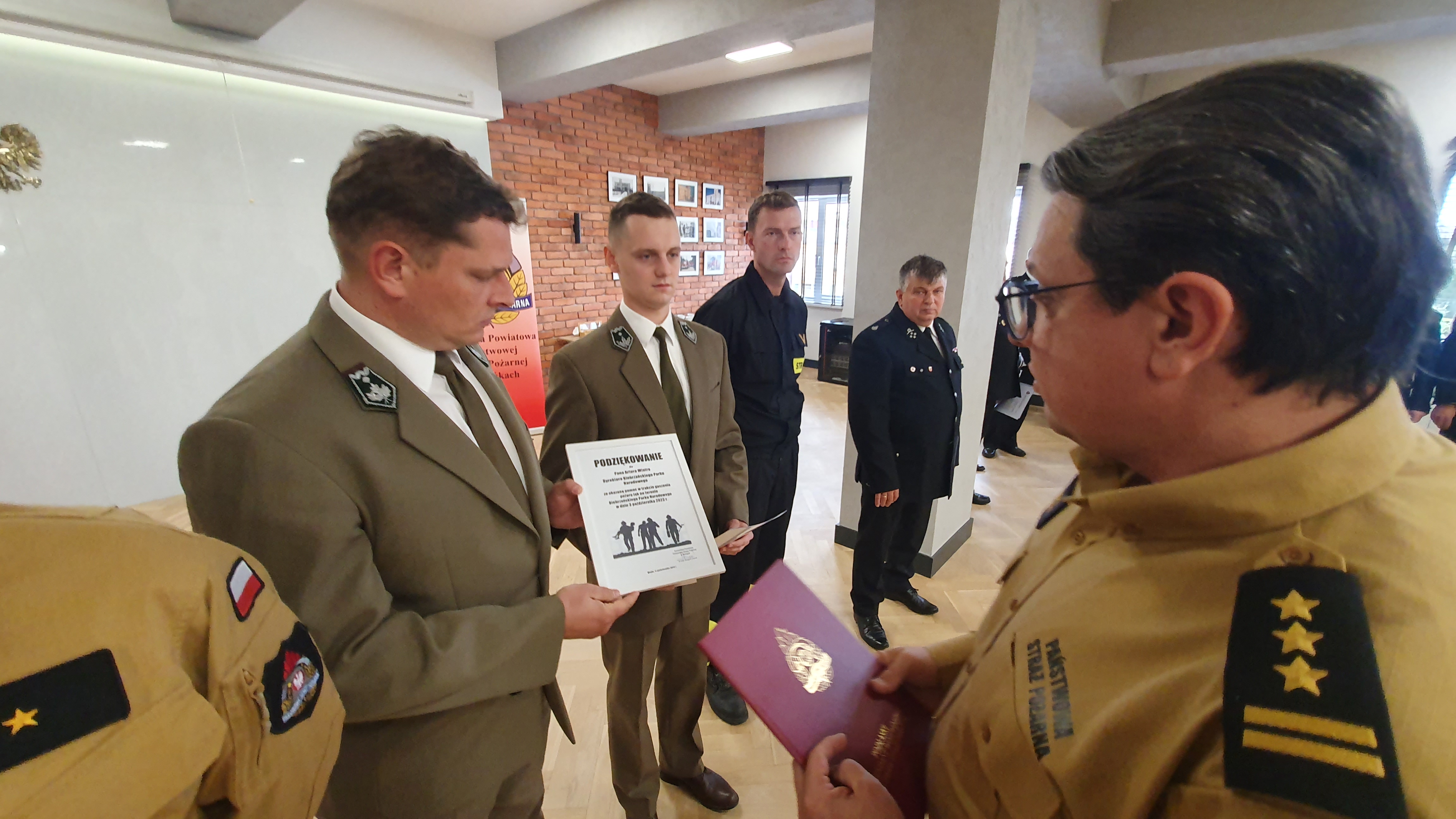 11 października 2023 r w Komendzie Powiatowej Państwowej Straży Pożarnej w Mońkach miało miejsce uroczyste podziękowanie za udział w gaszeniu pożaru na terenie Biebrzańskiego Parku Narodowego w dniu 3 października 2023 r. W imieniu nadbryg. Sebastiana Zdanowicza Podlaskiego Komendanta Wojewódzkiego Państwowej Straży Pożarnej oraz własnym podziękowania przekazał st. bryg. Grzegorz Lisowski Komendant powiatowy Państwowej Straży Pożarnej w Mońkach. Podziękowania otrzymały: