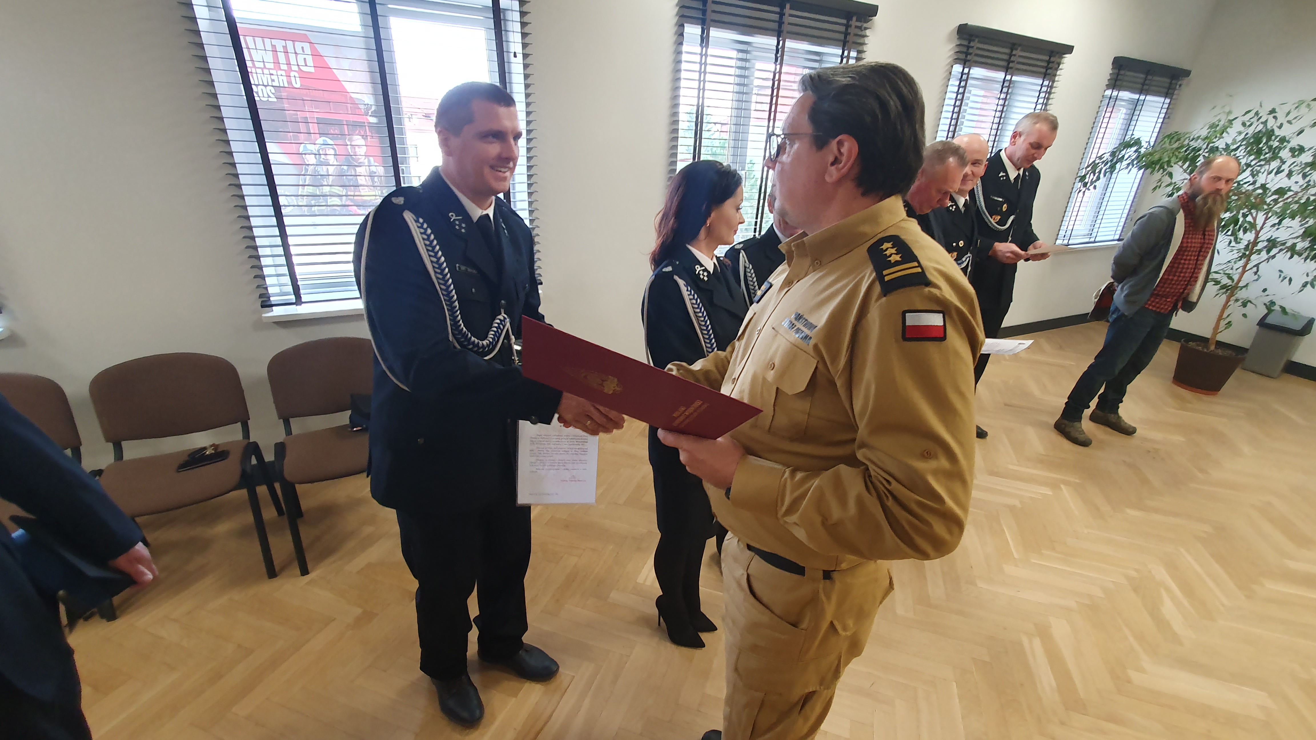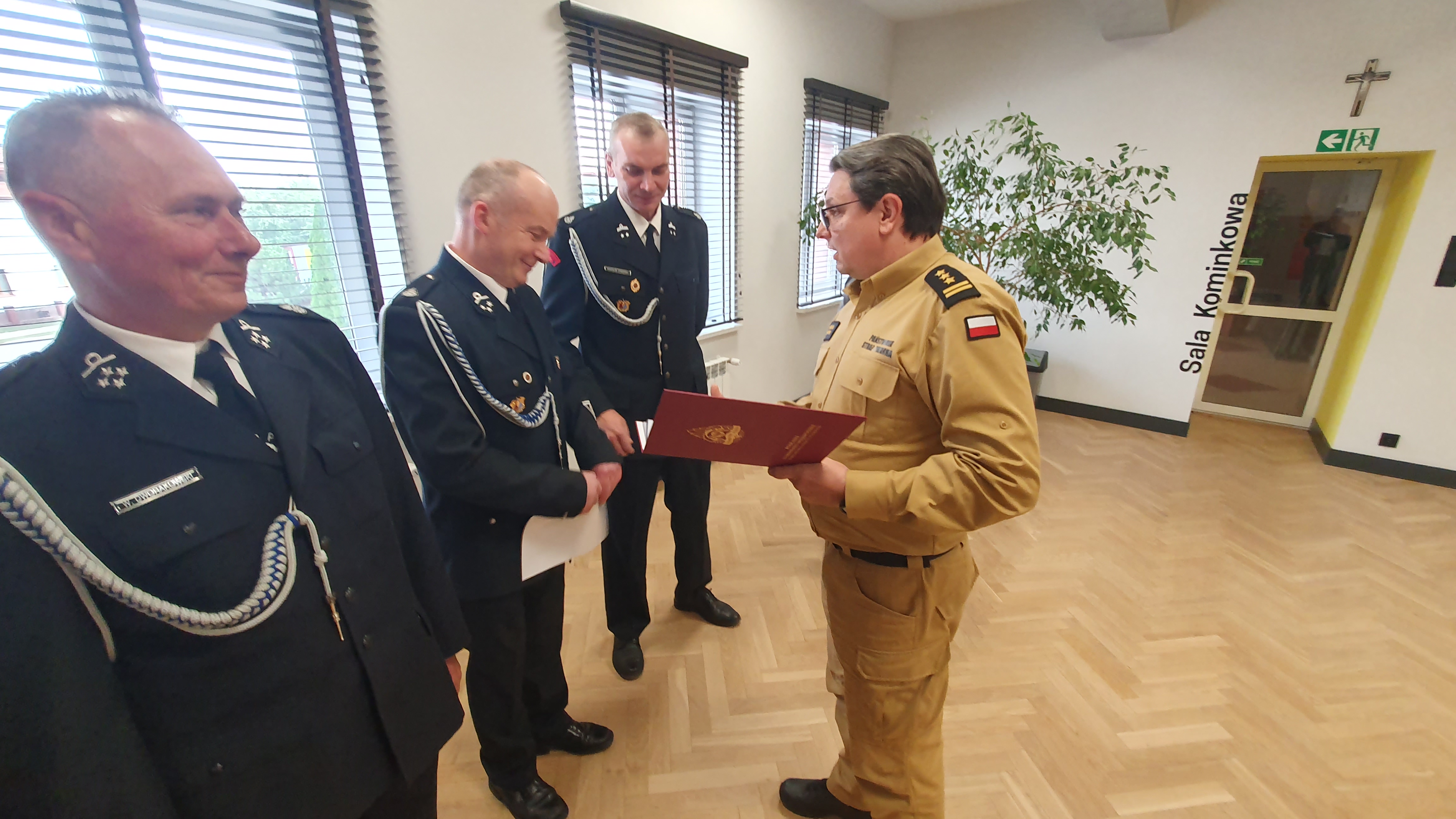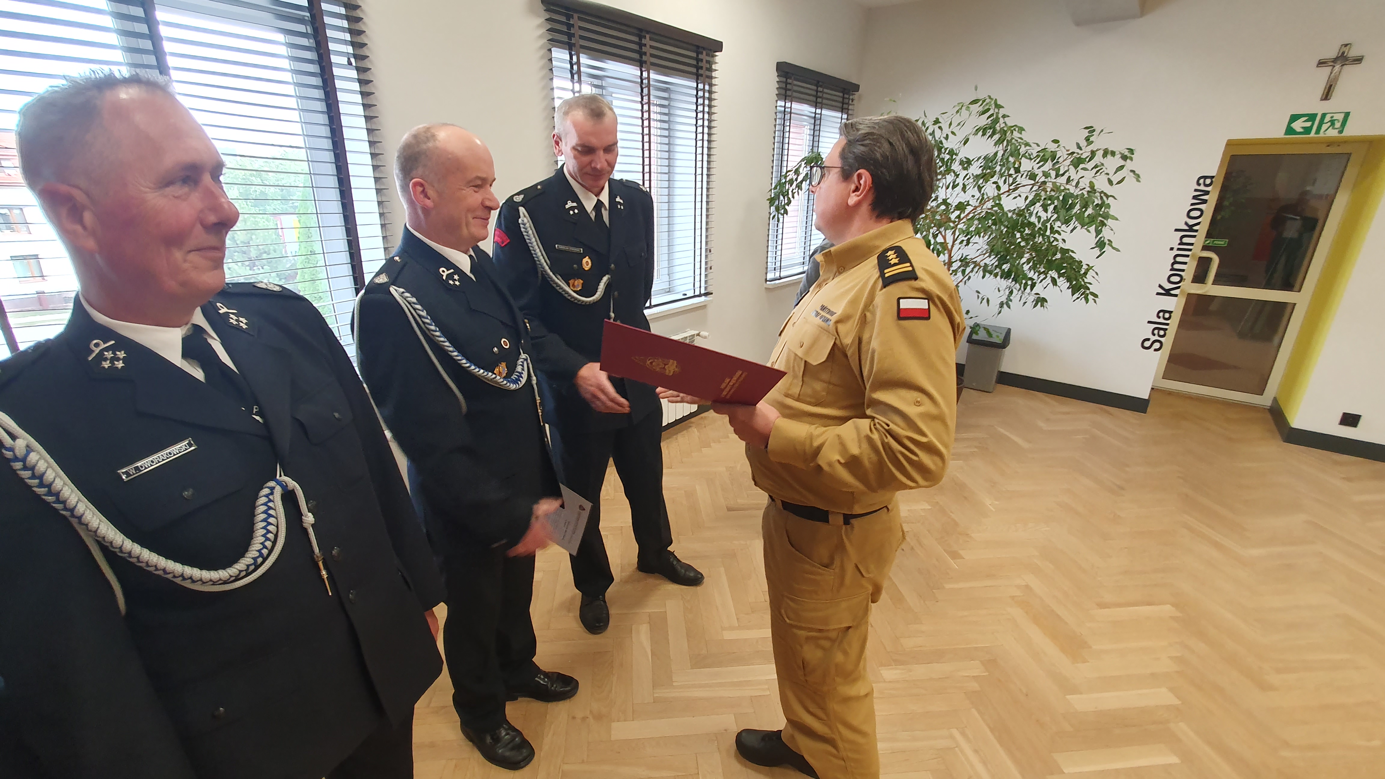 11 października 2023 r w Komendzie Powiatowej Państwowej Straży Pożarnej w Mońkach miało miejsce uroczyste podziękowanie za udział w gaszeniu pożaru na terenie Biebrzańskiego Parku Narodowego w dniu 3 października 2023 r. W imieniu nadbryg. Sebastiana Zdanowicza Podlaskiego Komendanta Wojewódzkiego Państwowej Straży Pożarnej oraz własnym podziękowania przekazał st. bryg. Grzegorz Lisowski Komendant powiatowy Państwowej Straży Pożarnej w Mońkach. Podziękowania otrzymały: