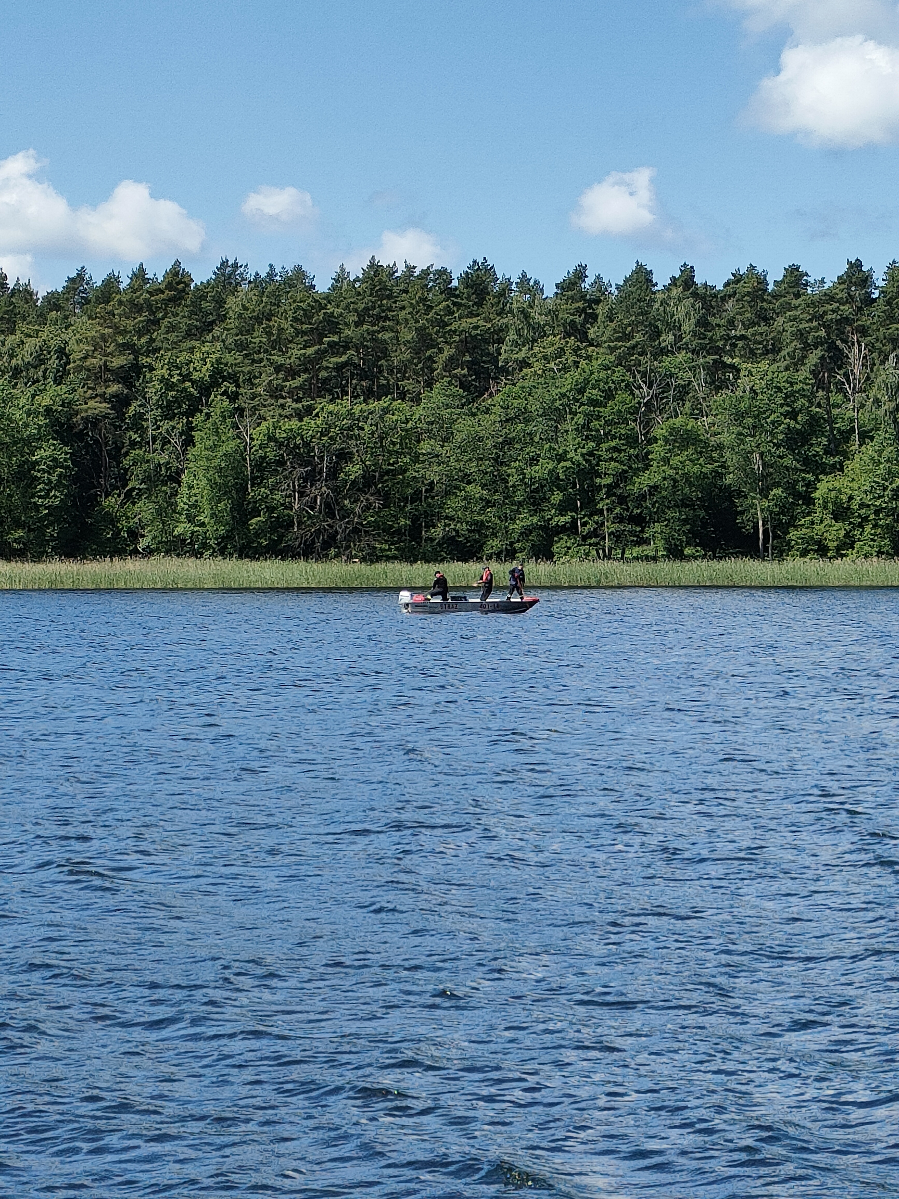 W dniach 19 i 22 czerwca 2022 r. w nurkowie z Komendy Powiatowej PSP w Mońkach wchodzący w skład Specjalistycznej Grupy Ratownictwa Wodno – Nurkowego „Biebrza” prowadzili działania poszukiwawcze na Jeziorze Rajgrodzkim, gdzie w dniu 18 czerwca mężczyzna w wieku około 50 lat wypadł z płynącej żaglówki