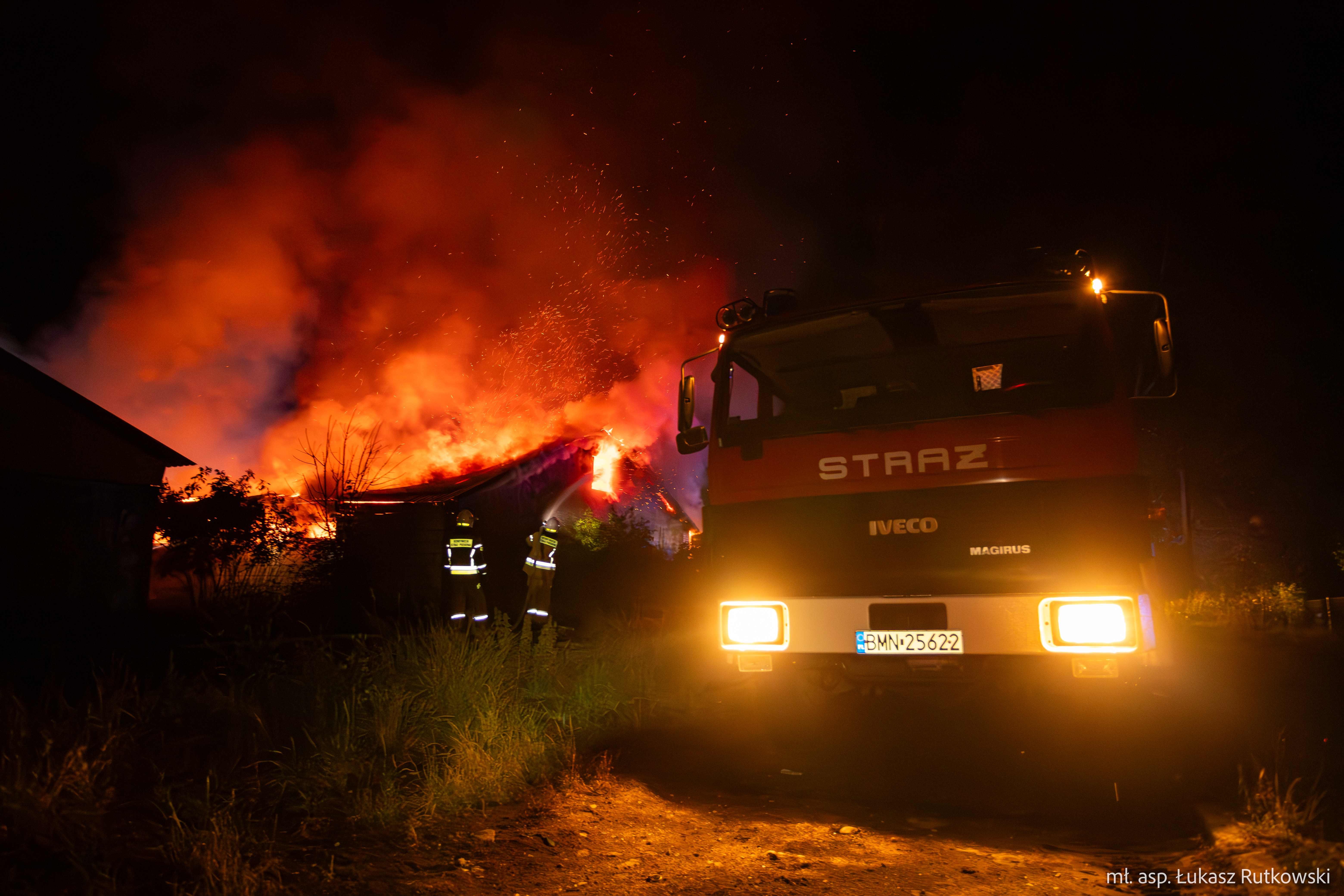 Pożar budynków inwentarskich w miejscowości Sikory.