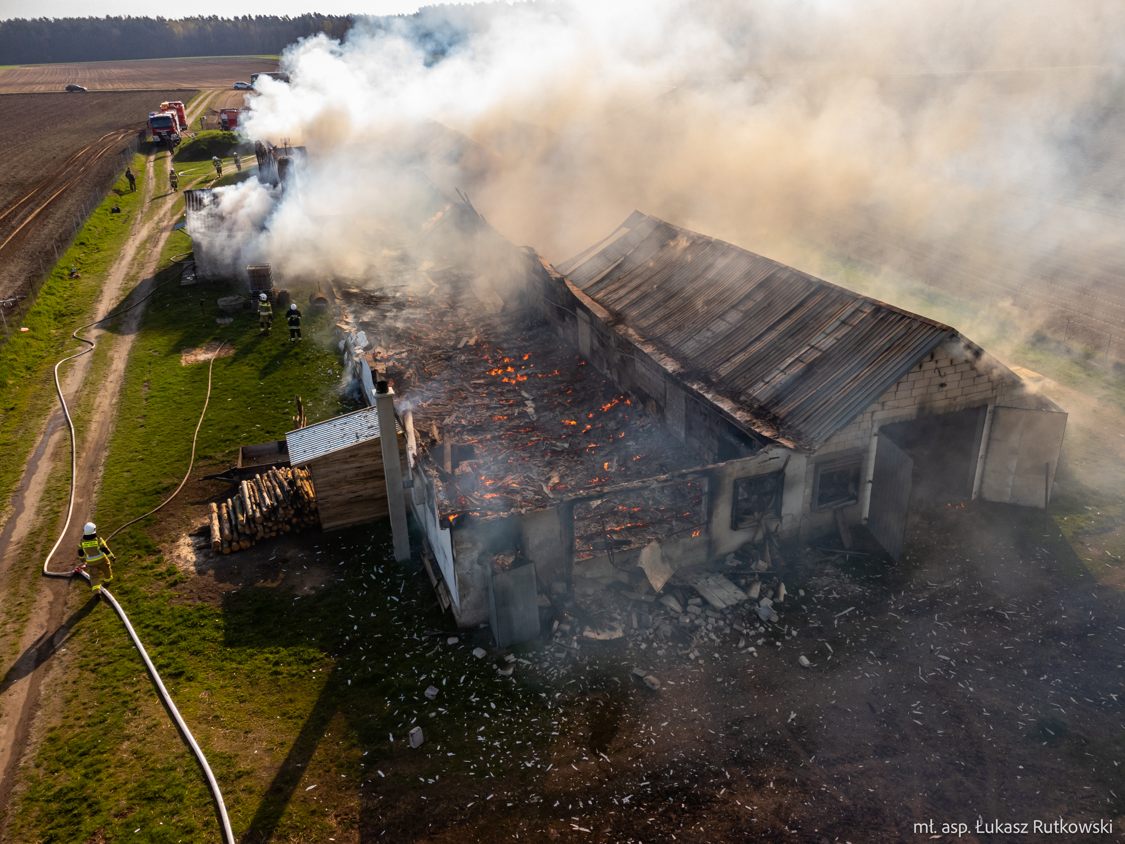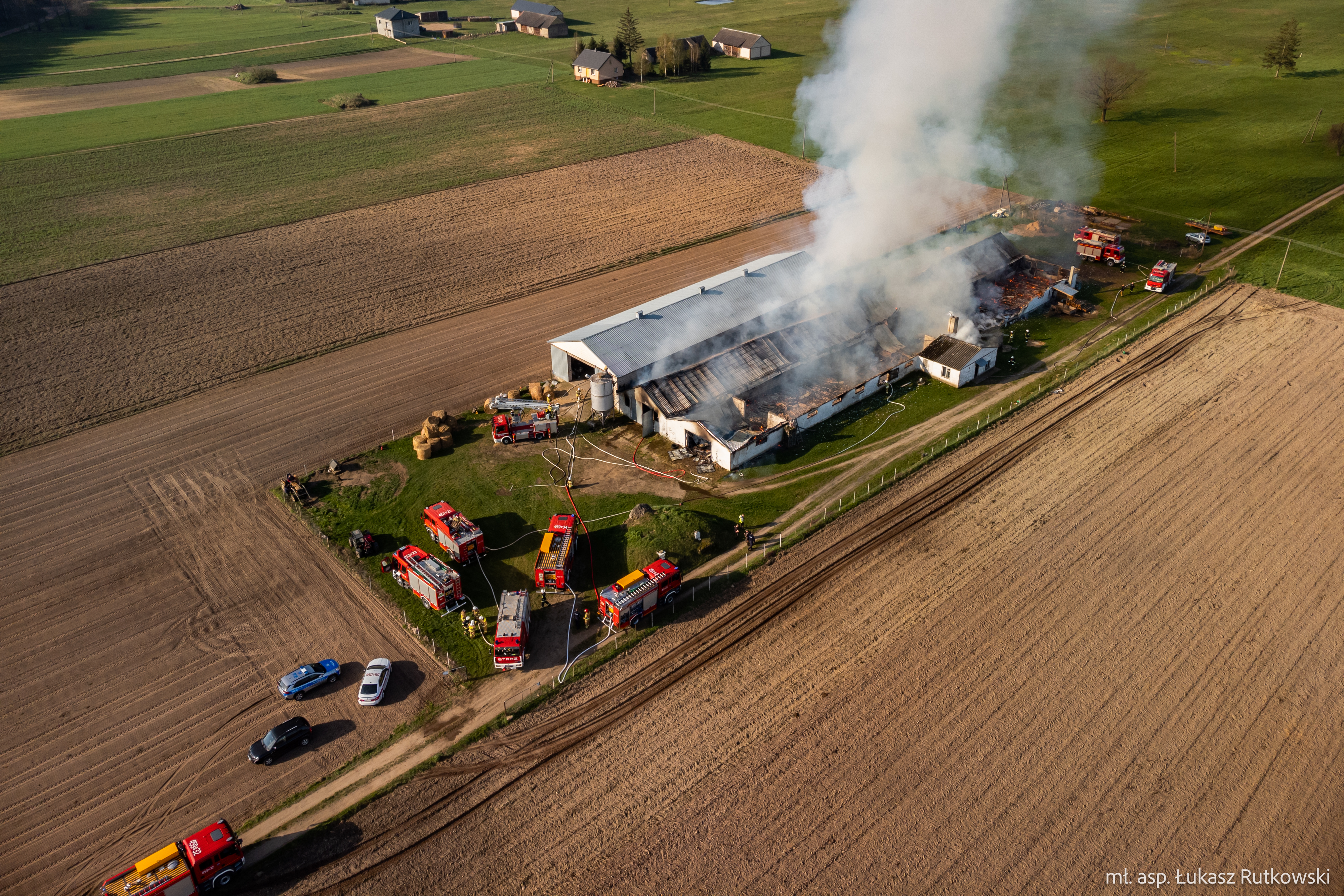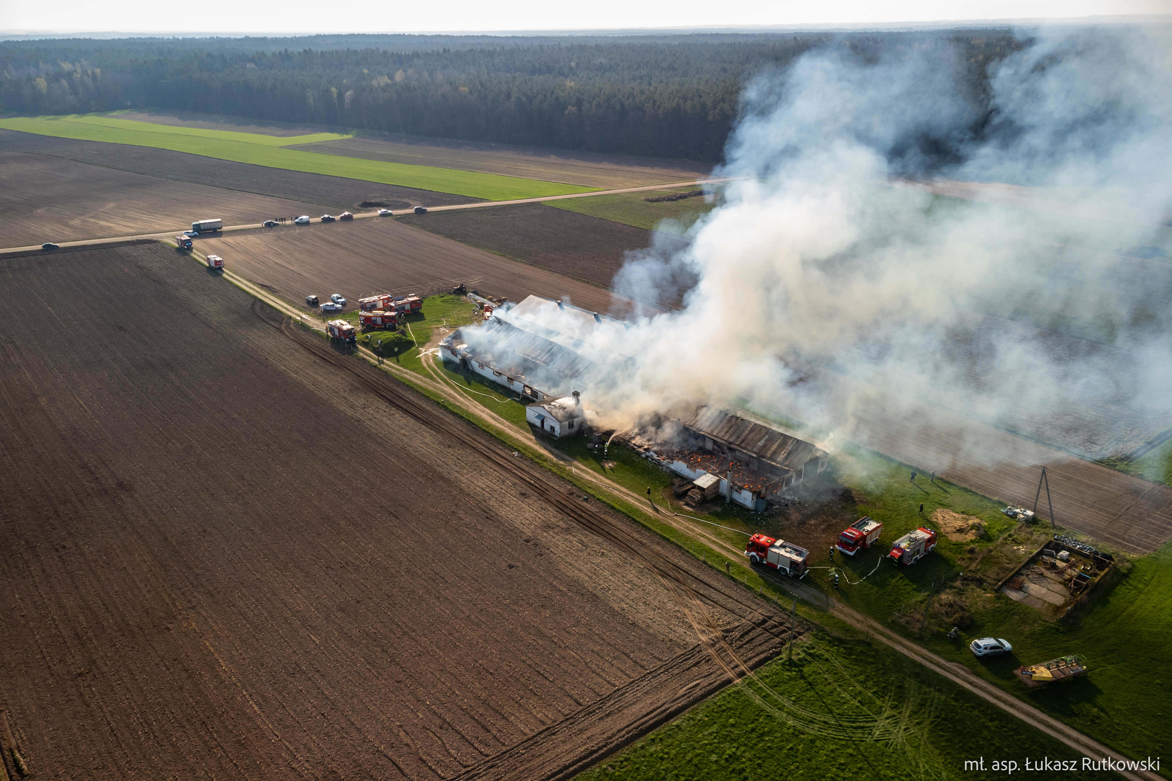 Po dojeździe na miejsce zdarzenia pierwszych zastępów straży pożarem całkowicie objęte były dwa, przyległe do siebie budynki inwentarskie; jeden o pow. 675m2 kryty blachą, drugi o pow. 600m2 kryty eternitem. Zagrożony był, przyległy do nich budynek gospodarczy o pow. 480 m2. Działania ratowniczo-gaśnicze skierowane były na obronę budynku gospodarczego oraz działania gaśnicze obydwu kurników. W trakcie działań zawaleniu uległy pokrycia dachowe kurników. Po stłumieniu ognia przystąpiono do prac rozbiórkowych istniejących konstrukcji budynków. Zaopatrzenie wodne stanowiła gminna sieć hydrantowa zlokalizowana w miejscowości Krynice i Trzcianne. Wykorzystano do działań także GCBM 28/18 z JRG Nr w Białymstoku. Na miejscu pożaru była Grupa Operacyjna Komendanta Powiatowego PSP w Mońkach oraz Grupa Operacyjna z Komendy Wojewódzkiej PSP w Białymstoku, w tym Grupa Dronowa.