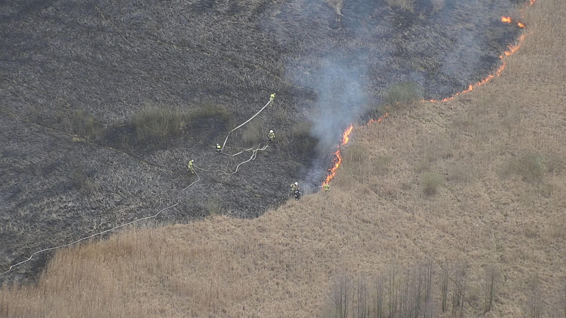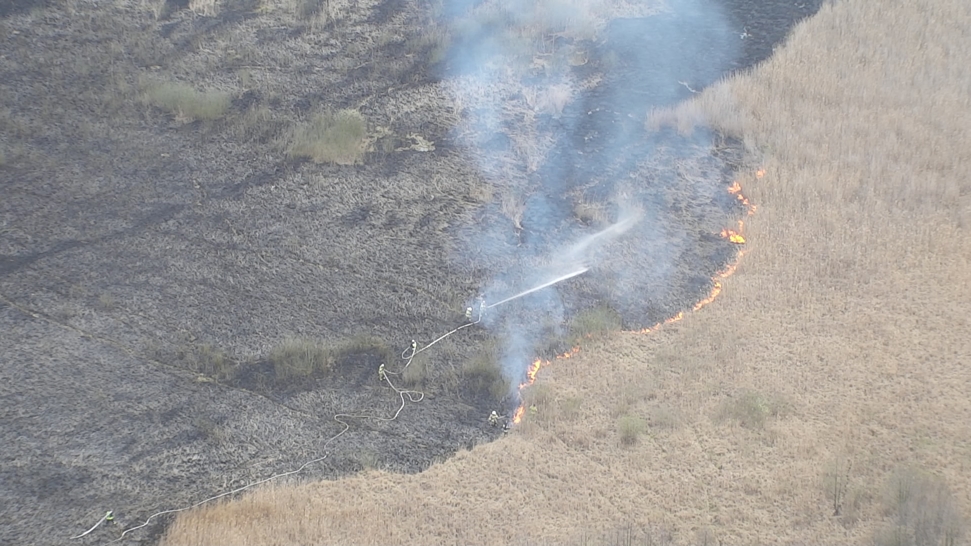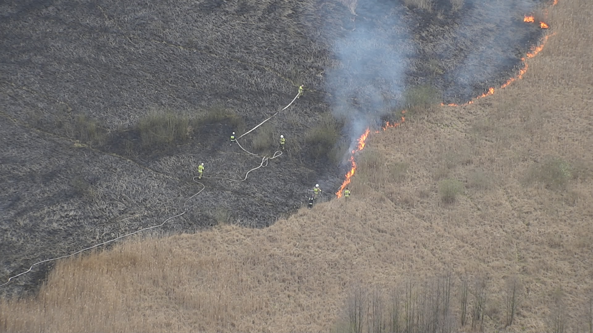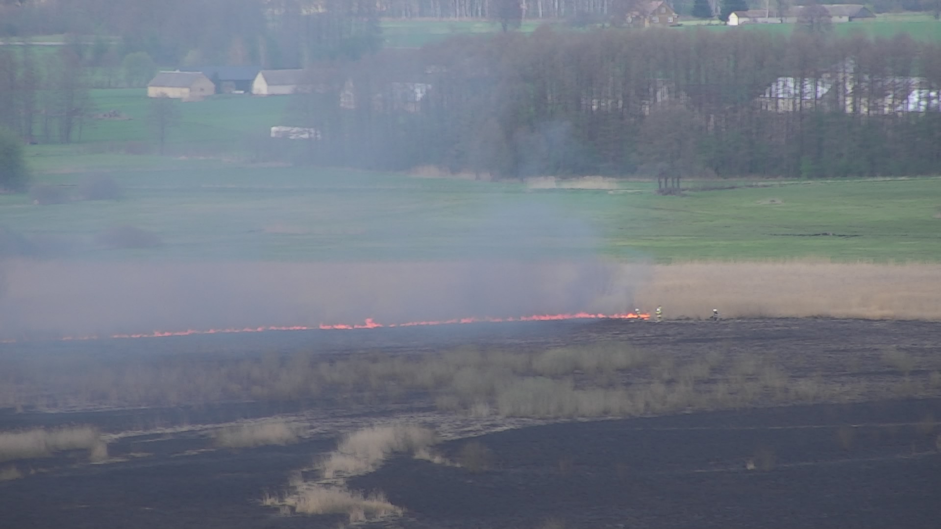 Pożar suchych traw i trzcinowiska, gmina Knyszyn, powiat moniecki