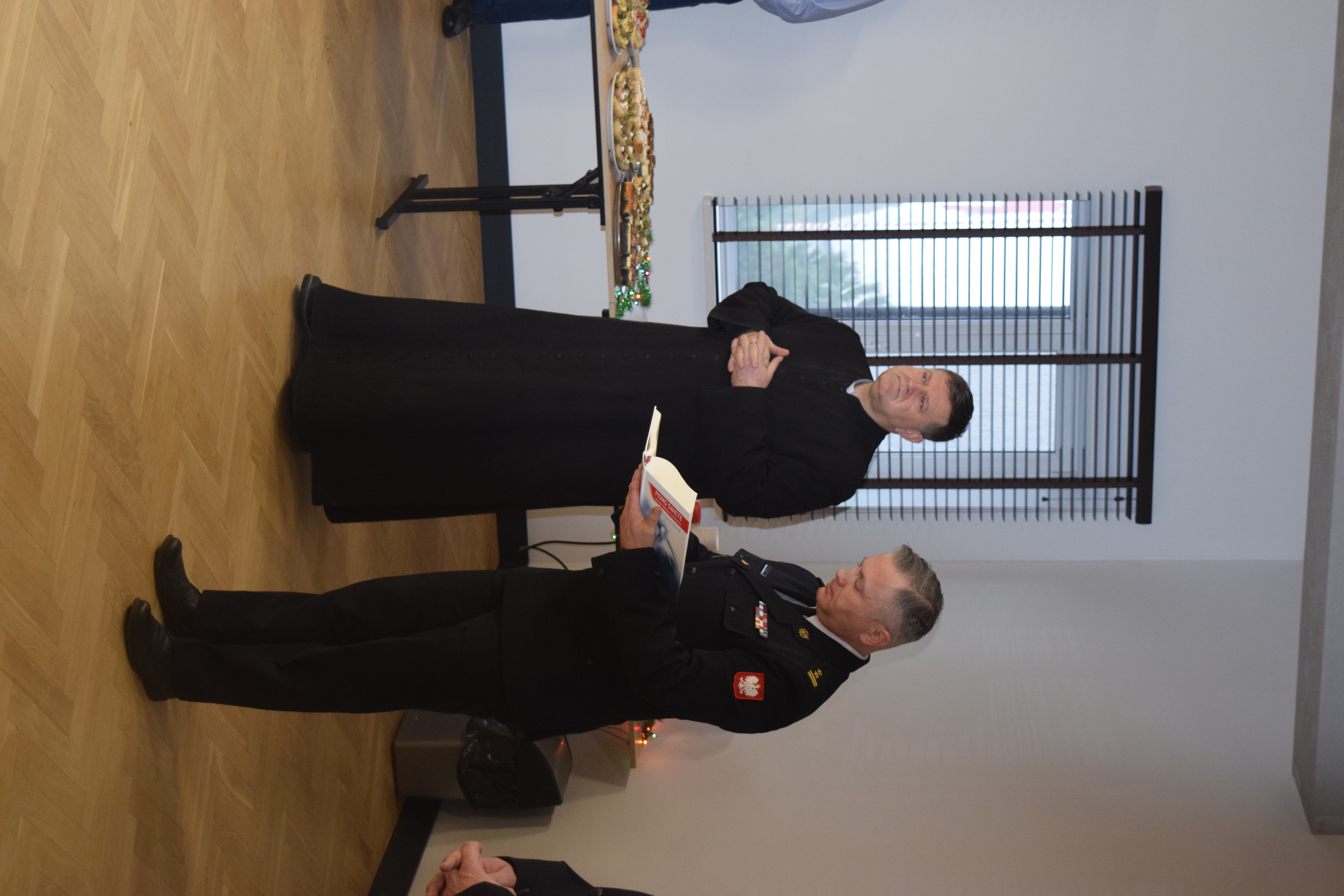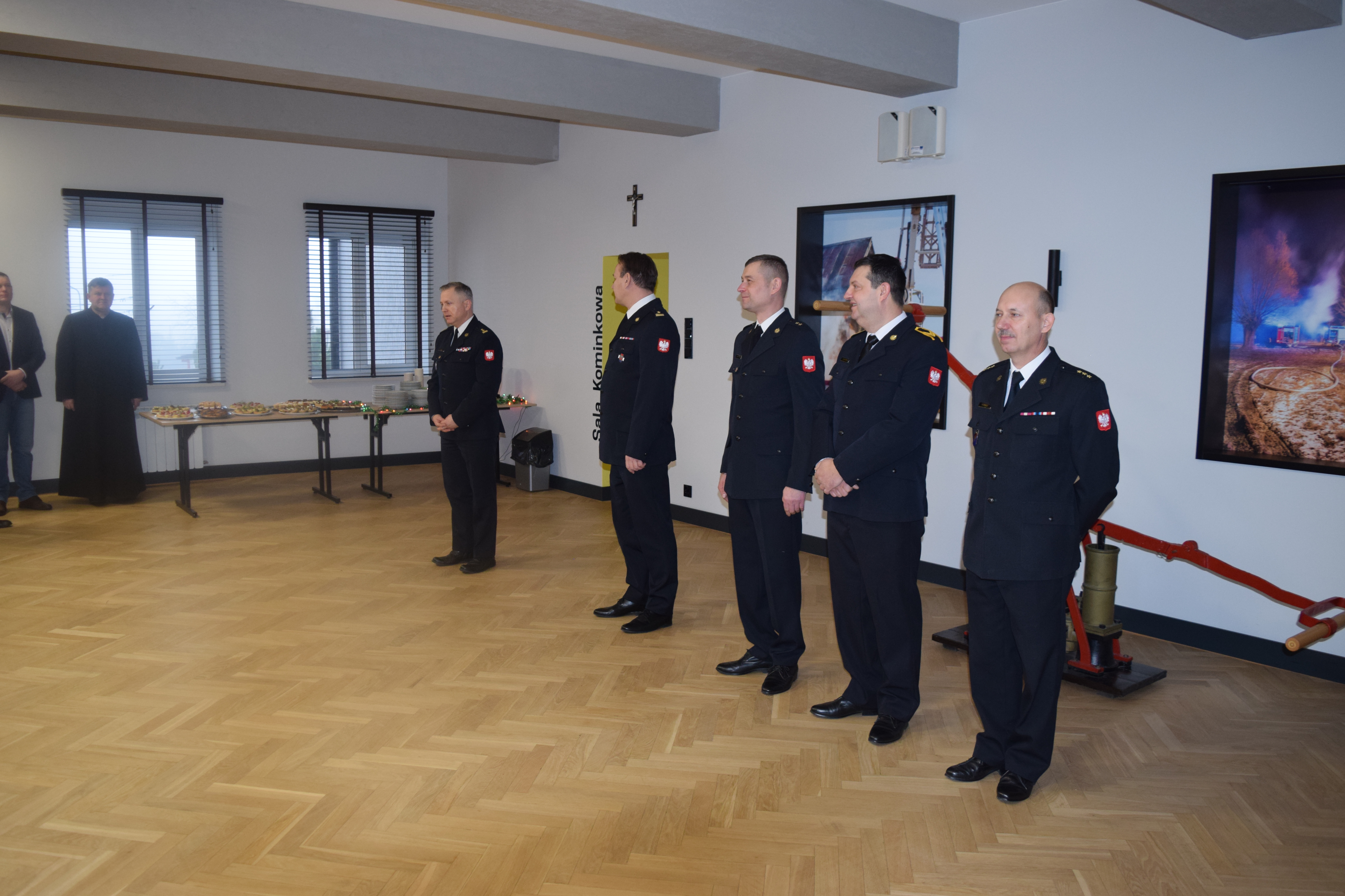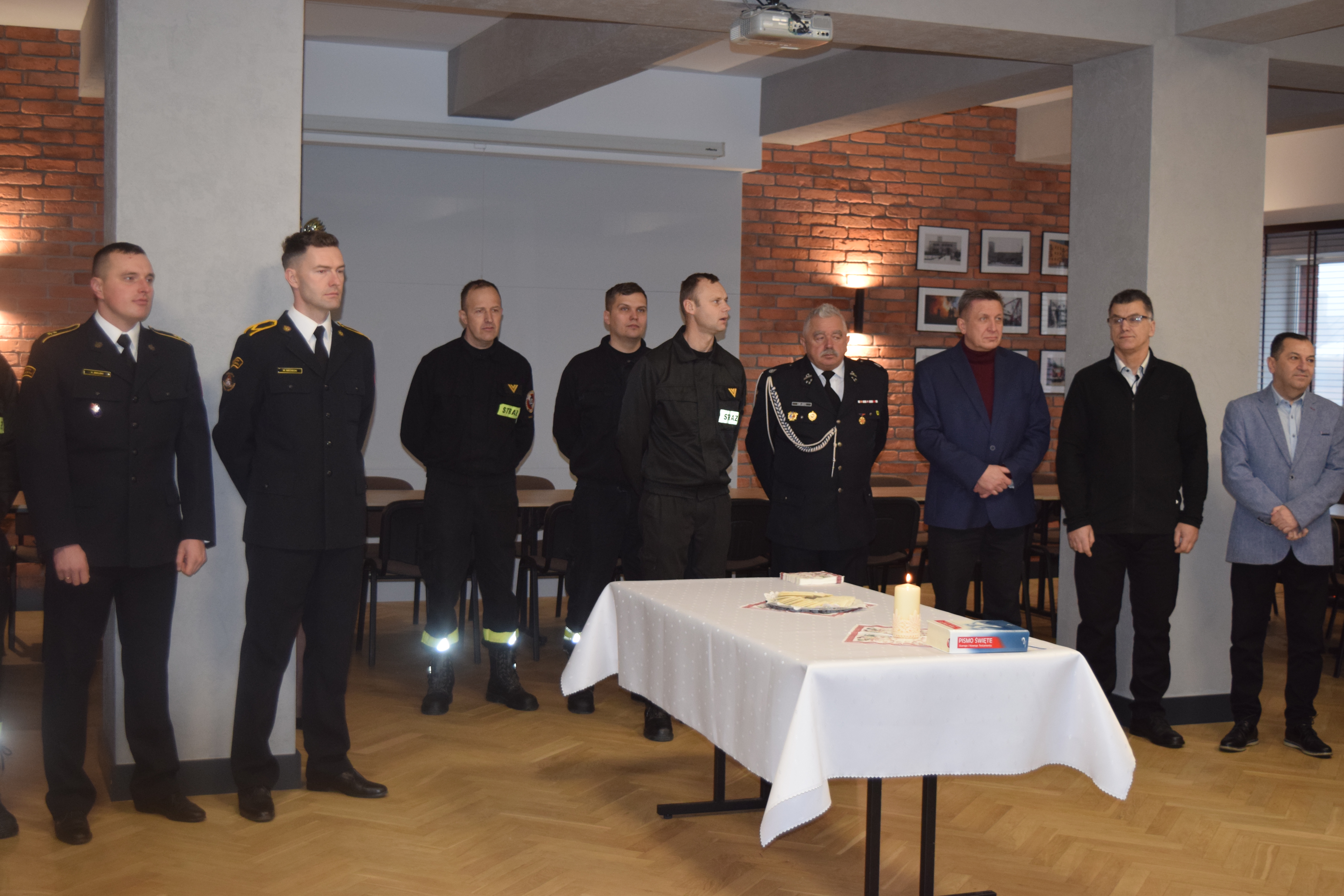 Komendant Powiatowy PSP bryg. Dariusz Koc przywitał przybyłych gości. Podziękował druhom, pracownikom cywilnym, funkcjonariuszom i władzom samorządowym za wspólną pracę w minionym roku oraz złożył wszystkim życzenia z okazji zbliżających się Świąt Bożego Narodzenia.