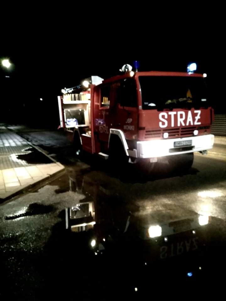 2 lipca około godziny 18.00 nad Mońkami i powiatem monieckim przeszła burza z gwałtownymi opadami deszczu. Do Stanowiska Kierowania Komendanta Powiatowego PSP w Mońkach wpłynęło wiele zgłoszeń o zalaniu obiektów użyteczności publicznej, magazynów czy piwnic w budynkach mieszkalnych. Do godzin porannych 3 lipca 2021 r. Jednostki Ochrony Przeciwpożarowej podjęły ponad 55 interwencji związanych z usuwaniem skutków ulewnego deszczu. Do działań skierowano zarówno strażaków z Jednostki Ratowniczo-Gaśniczej w Mońkach jak również jednostki Ochotniczych Straży Pożarnej z gminy Mońki oraz z powiatu monieckiego. W działaniach udział brało 4 zastępy z JRG w Mońkach oraz 9 zastępów z OSP powiatu monieckiego. Do wsparcia działań zadysponowano również pompę wysokiej wydajności z JRG PSP w Grajewie.