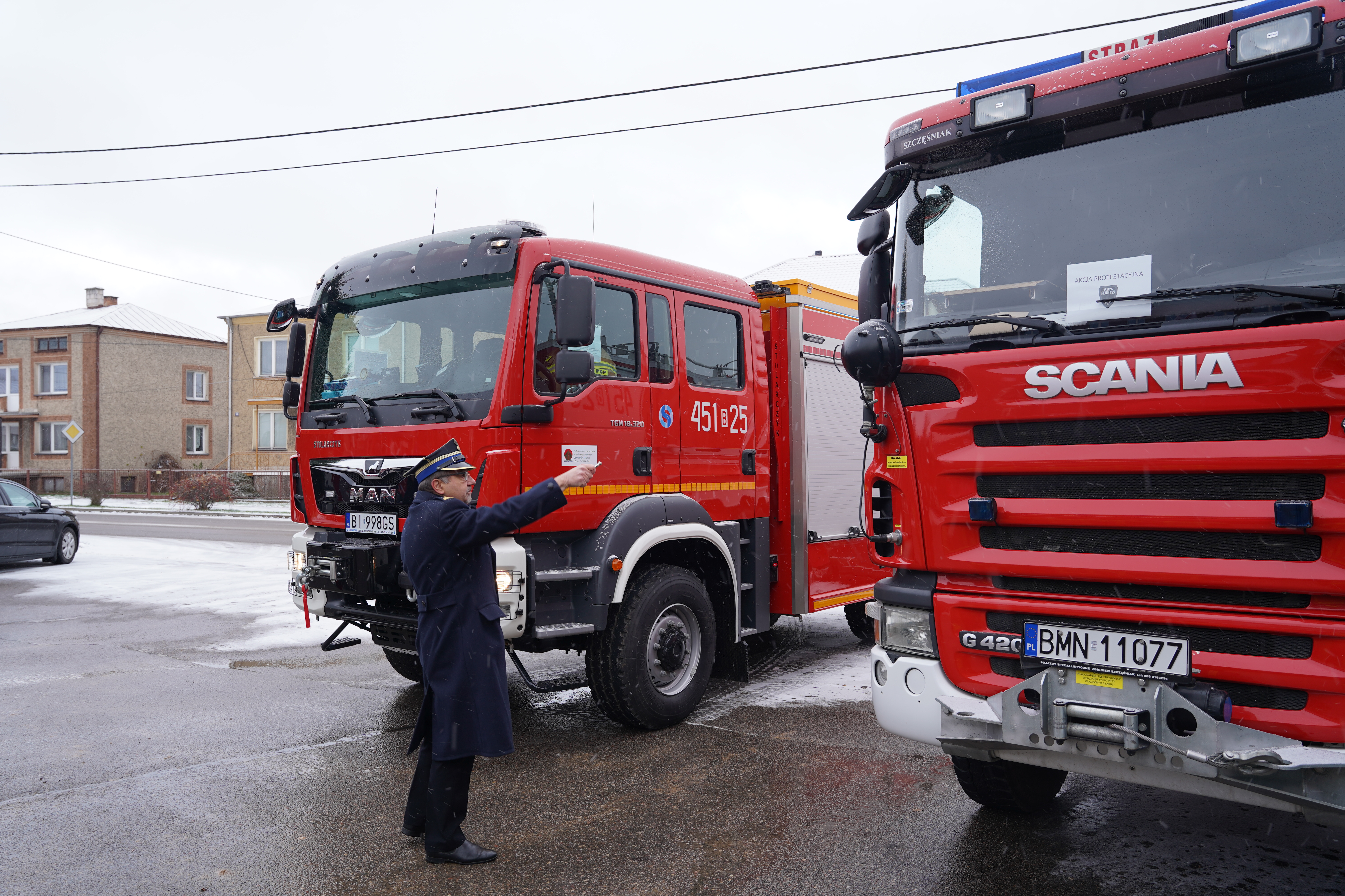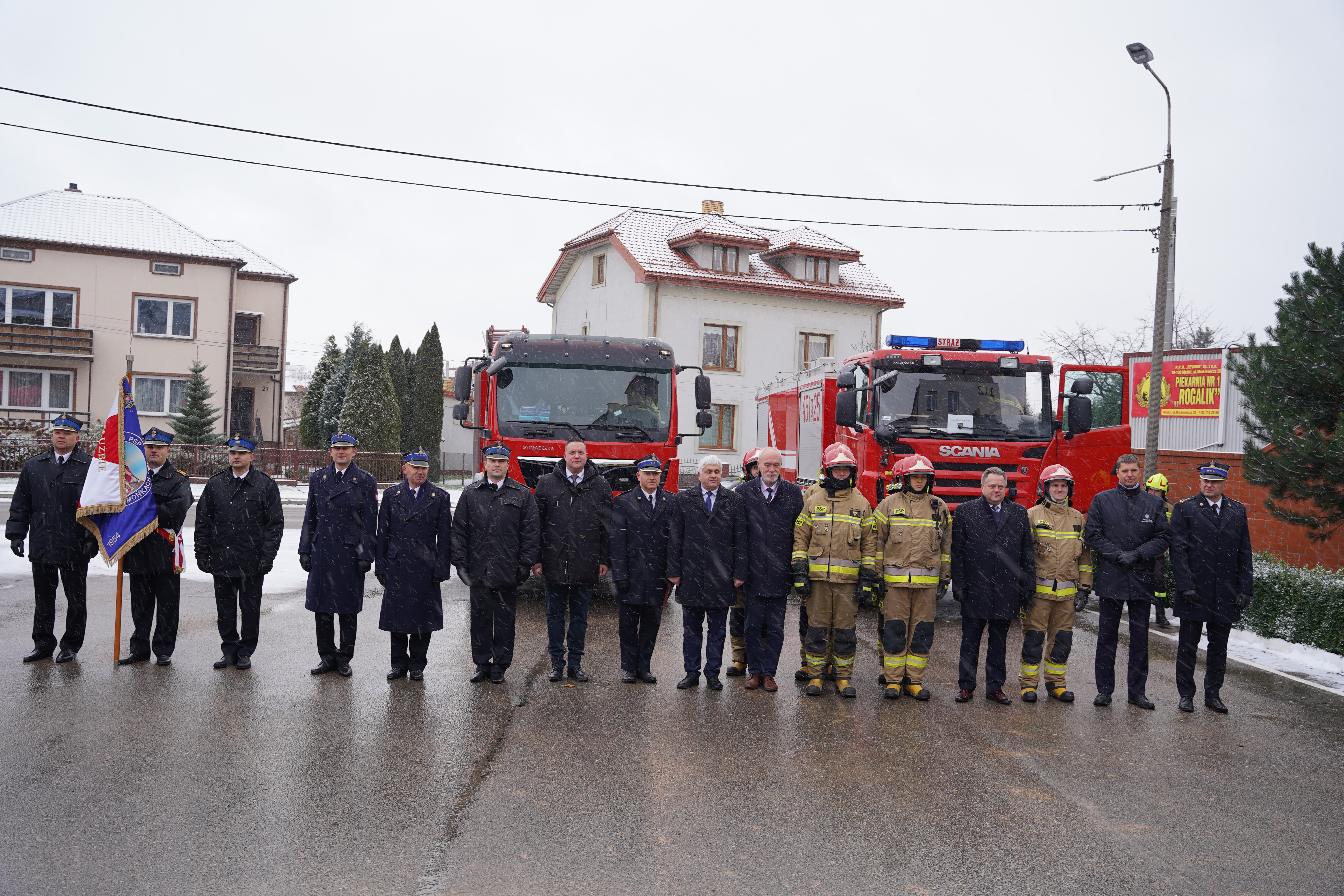 18 listopada 2022 roku o godzinie 9.30 na placu Komendy Powiatowej Państwowej Straży Pożarnej w Mońkach odbyła się uroczysta zbiórka z okazji powołania Zastępcy Komendanta Powiatowego Państwowej Straży Pożarnej w Mońkach oraz przekazania samochodów ratowniczo-gaśniczych jednostce Ochotniczej Straży Pożarnych w Michałowie. W uroczystości udział wzięli: Pan Dariusz Piontkowski, sekretarz stanu w Ministerstwie Edukacji i Nauki, Pan Jarosław Zieliński, Poseł na Sejm RP, Pan Marek Komorowski, Senator Rzeczypospolitej Polskiej, Przewodniczący Głównego Sądu Honorowego Związku OSP RP, Pan Bohdan Paszkowski, Wojewoda Podlaski, st. bryg. Sebastian Zdanowicz, podlaski komendant wojewódzki Państwowej Straży Pożarnejoraz jego zastępca bryg. Marcin Bielakowicz, ksiądz Wojciech Ejsmont, kapelan wojewódzki PSP, ksiądz Wojciech Wojtach, proboszcz parafii pw. Matki Boskiej Częstochowskiej i Św. Kazimierza w Mońkach, Pan Włodzimierz Wróblewski, zastępca dyrektora Biebrzańskiego Parku Narodowego, przedstawiciele władz samorządowych szczebla powiatowego na czele z Panem Błażejem Buńkowskim, starostą powiatu monieckiego, burmistrzowie i wójtowie, funkcjonariusze i pracownicy komendy oraz druhowie z jednostki Ochotniczej Straży Pożarnej w Michałowie. Komenda Powiatowa PSP w Mońkach otrzymała fabrycznie nowy ciężki samochód ratowniczo – gaśniczy na podwoziu Man TGM 4x4 typu GBA 5/39. Zakup pojazdu możliwy był dzięki środkom z budżetu państwa, dofinansowaniu z Narodowego Funduszu Ochrony Środowiska i Gospodarki Wodnej oraz Wojewódzkiego Funduszu Wsparcia Państwowej Straży Pożarnej, na który składały się środki pochodzące z samorządów województwa podlaskiego t.j. Starostwa Powiatowego w Mońkach, Gminy Mońki, Gminy Krypno, Gminy Goniądz, Gminy Michałowo. Całkowity koszt pojazdu wraz z wyposażeniem wyniósł 1 199 865 złotych. Nowy Man zastąpi dotychczas użytkowany samochód GCBA 8/60 SCANIA G420CB, który został przekazany jednostce Ochotniczej Straży Pożarnej w Michałowie. Uroczystość była doskonałą okazją do złożenia podziękowań osobom i instytucjom, które wsparły Komendę Powiatową Państwowej Straży Pożarnej w Mońkach w zakupie nowego samochodu ratowniczo-gaśniczego.