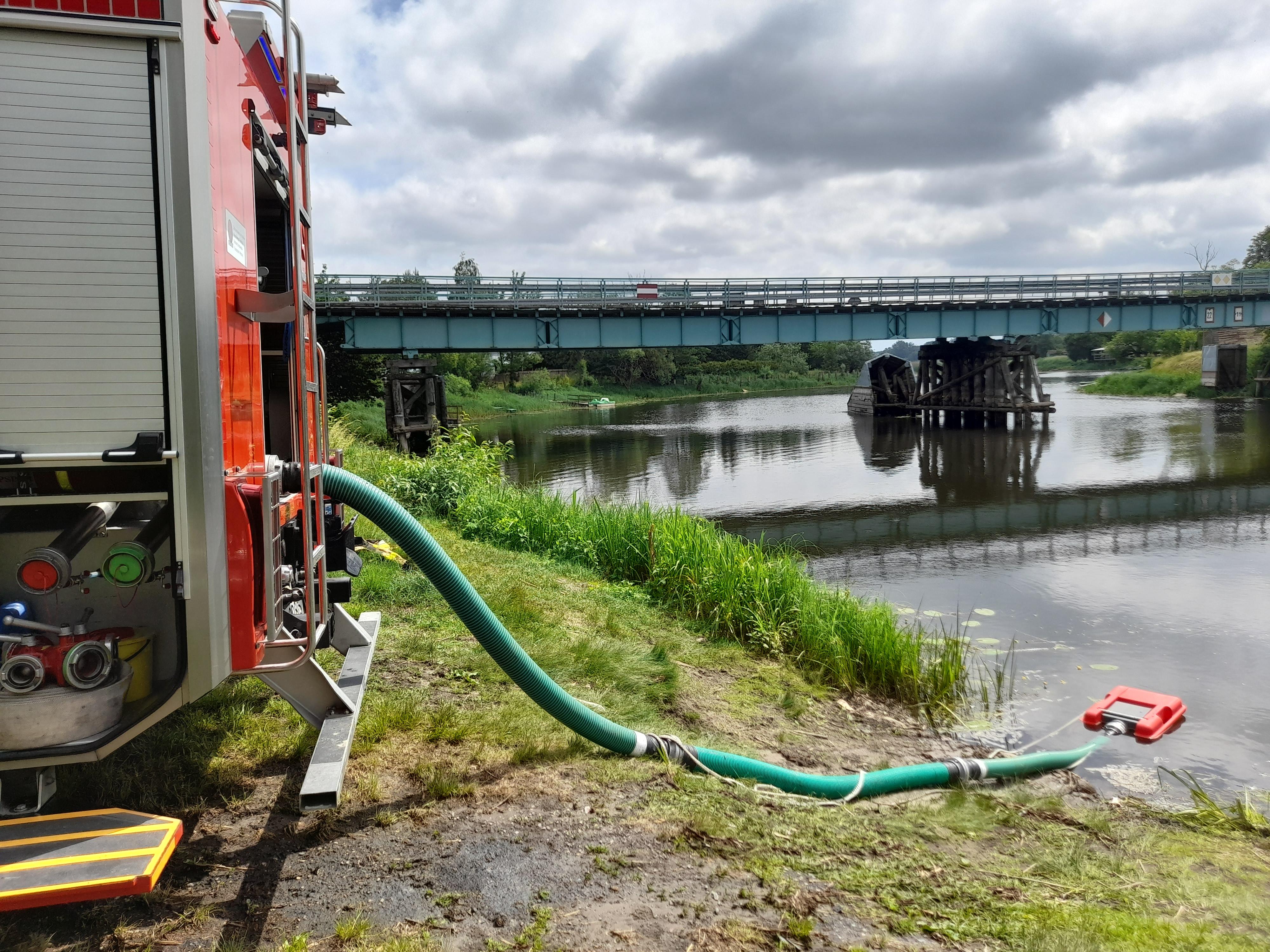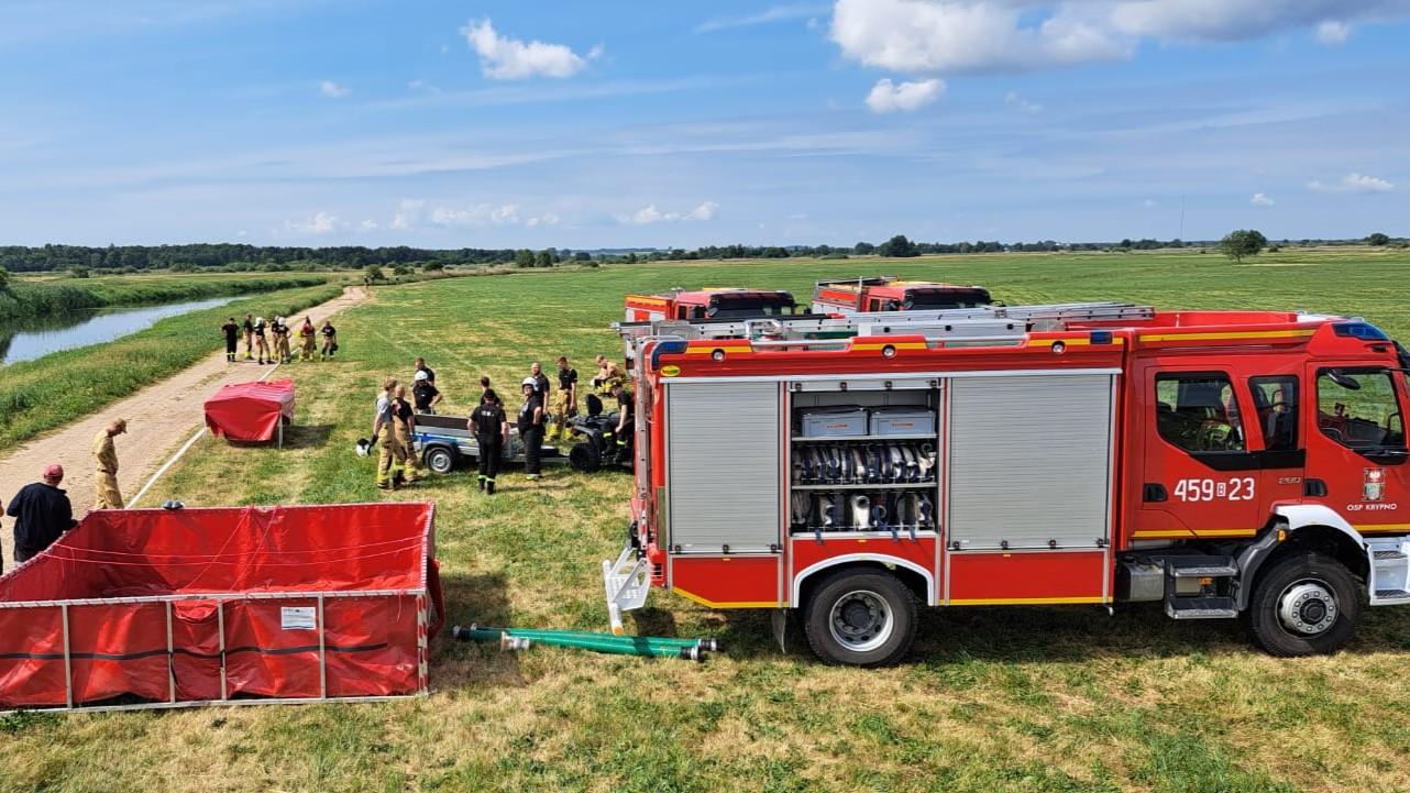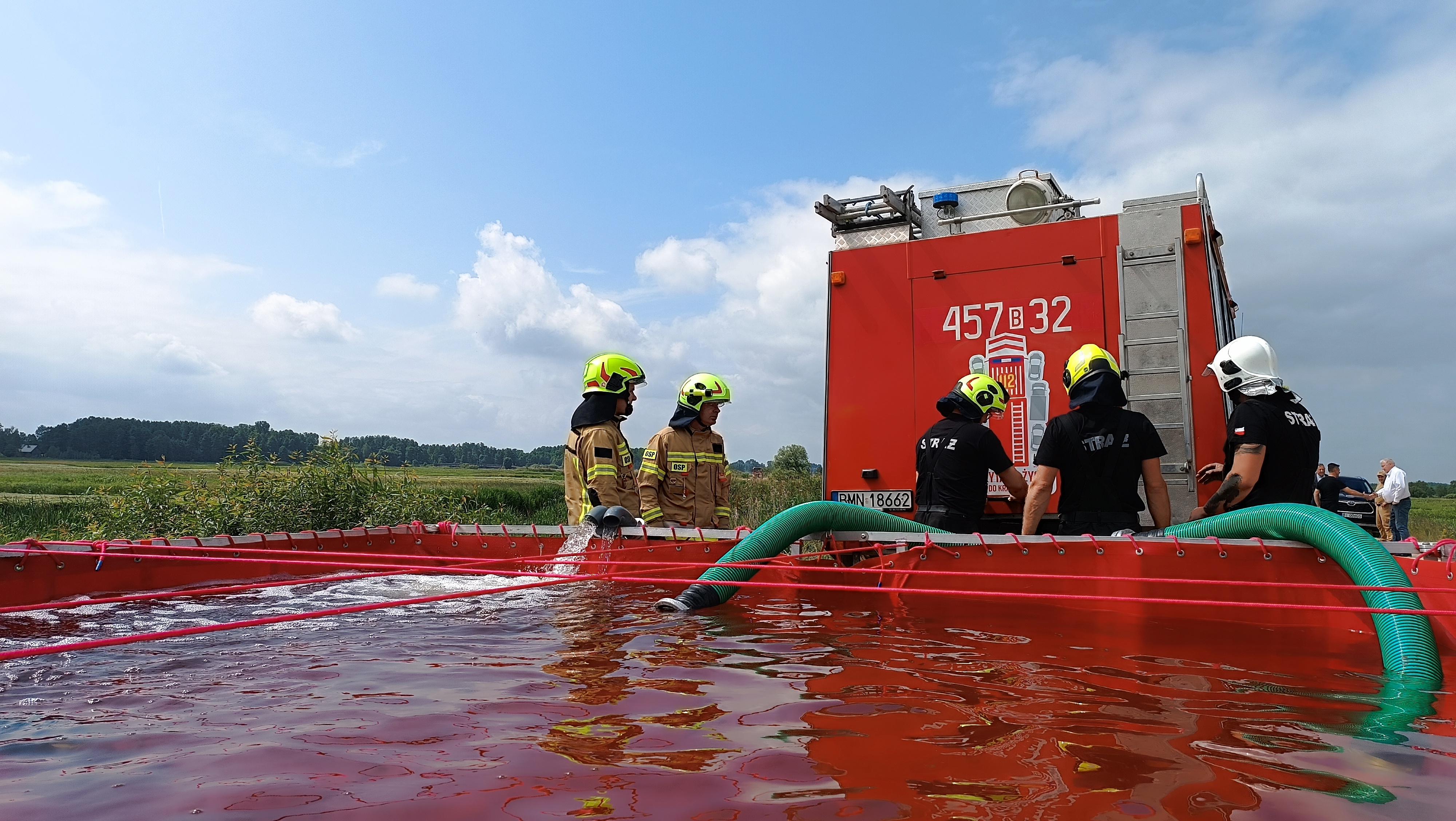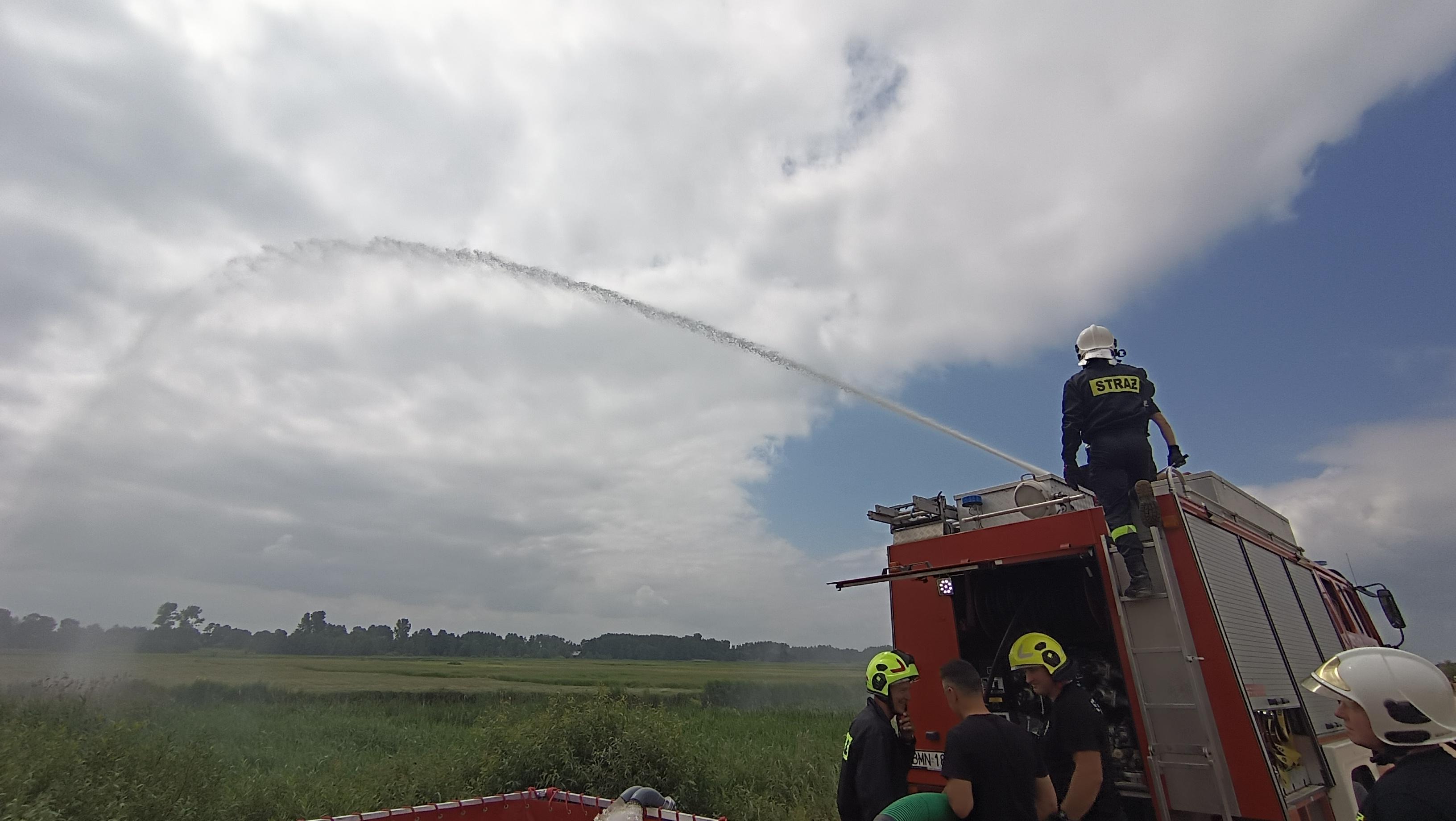 Warsztaty ratownicze z dostarczania wody na duże odległości w powiecie monieckim.