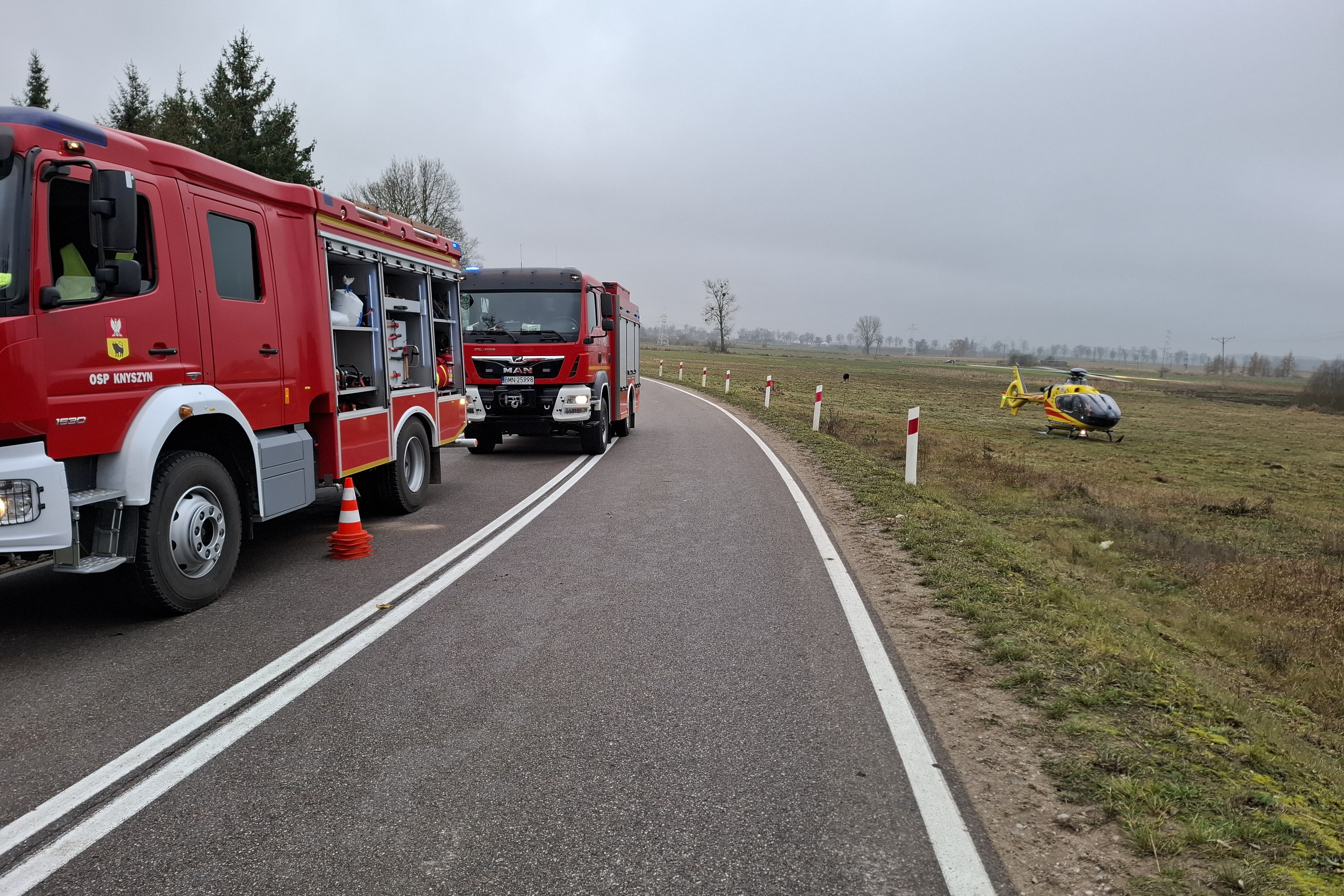 11.11.2025 r. przed godz. 11 w miejscowości Knyszyn na Drodze Wojewódzkiej 671 miał miejsce wypadek, w którym uczestniczyło dwa samochody osobowe. W wyniku zderzenia poszkodowane zostały trzy osoby. Aby uwolnić kierowcę jednego z pojazdów strażacy musieli użyć narzędzi hydraulicznych. Na miejscu akcji lądował również śmigłowiec Lotniczego Pogotowia Ratunkowego. W akcji brało udział 12 strażaków z JRG Mońki oraz OSP Knyszyn.