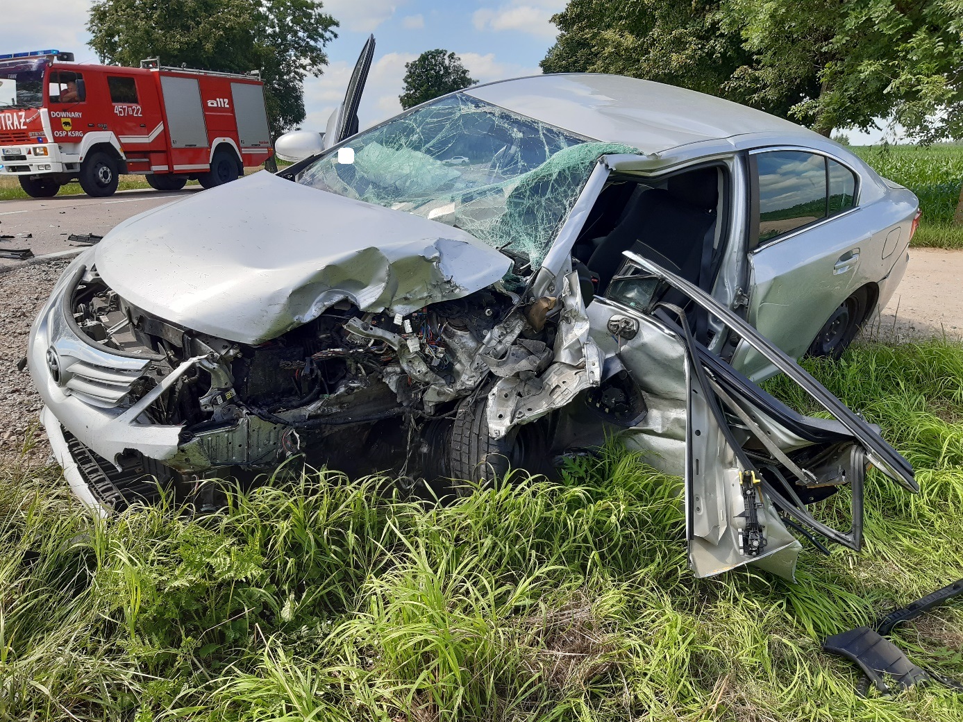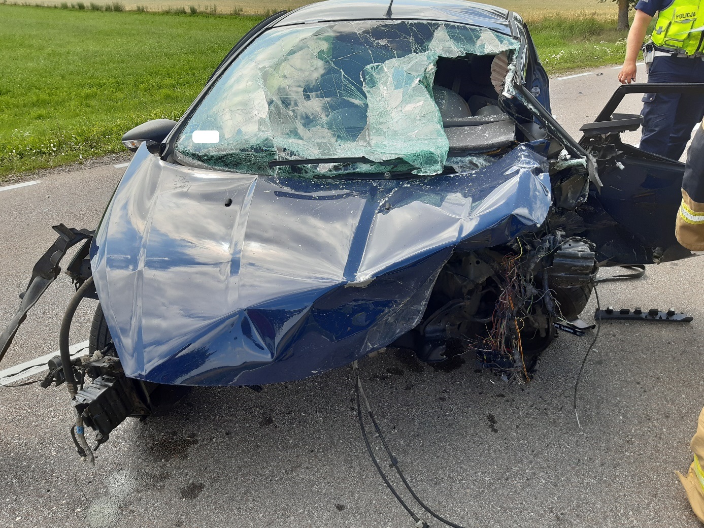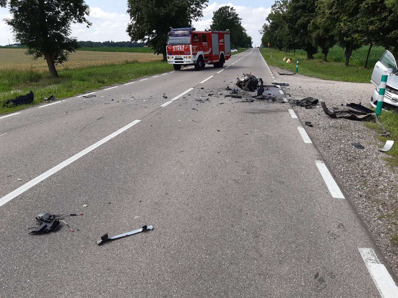 Zderzenie dwóch samochodów osobowych na drodze krajowej Nr 65.