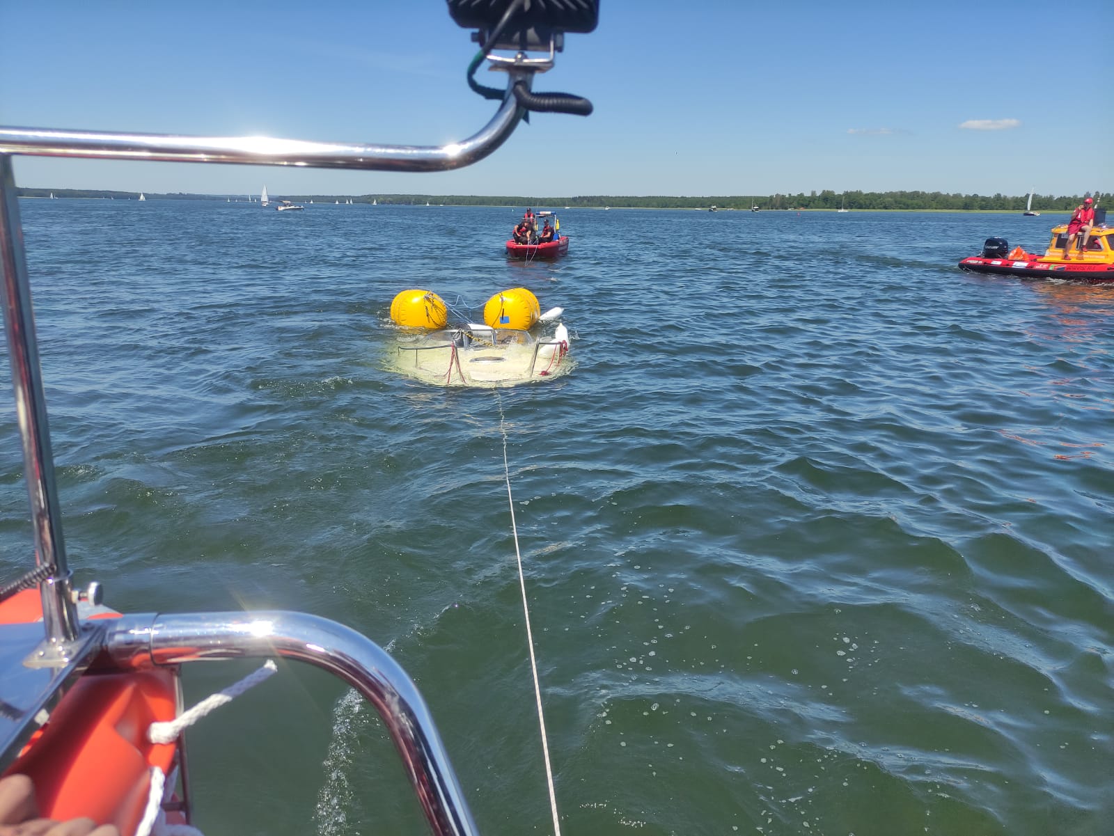 Dnia 24.06.2022r. na jeziorze Tałty prowadzone były prace podwodne związane z wydobyciem zatopionej łodzi motorowej.