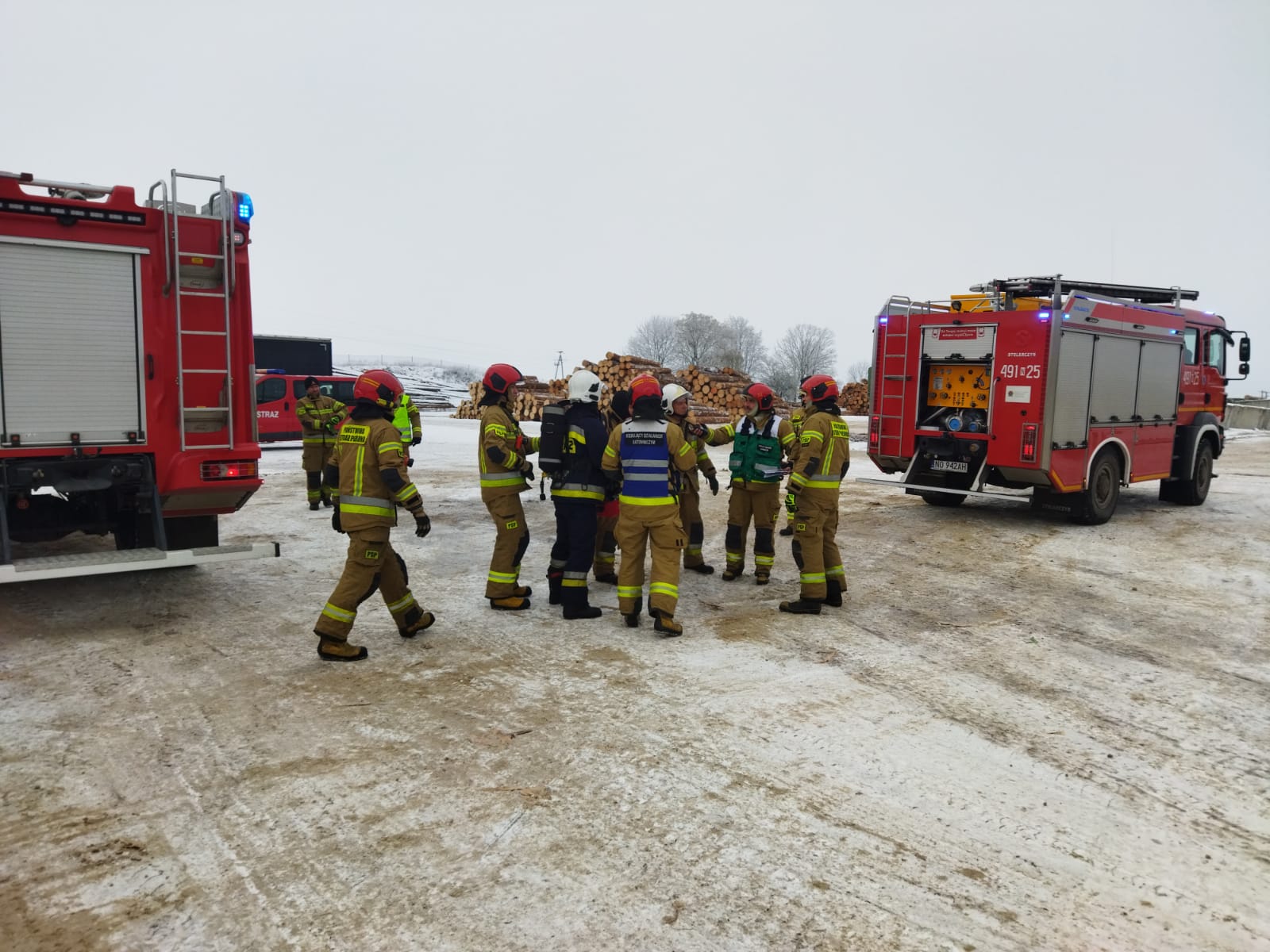 Na Stanowiska Kierowania Komendanta Powiatowego PSP w Mrągowie, dnia 28.11.2023 r. o godz. 10:00, wpłynęło zgłoszenie w postaci formatki z Centrum Powiadamiania Ratunkowego o pożarze na terenie tartaku przy ul. Tartacznej 5 w Pieckach. Na szczęście były to tylko ćwiczenia. Do pożaru doszło w kotłowni zakładu a poszkodowana została jedna osobowa z rozległymi oparzeniami ciała. W późniejszym czasie doszło do pożaru składowiska biomasy oraz do wypadku, który polegał na przygnieceniu pracownika zakładu przez kłodę w czasie pracy.