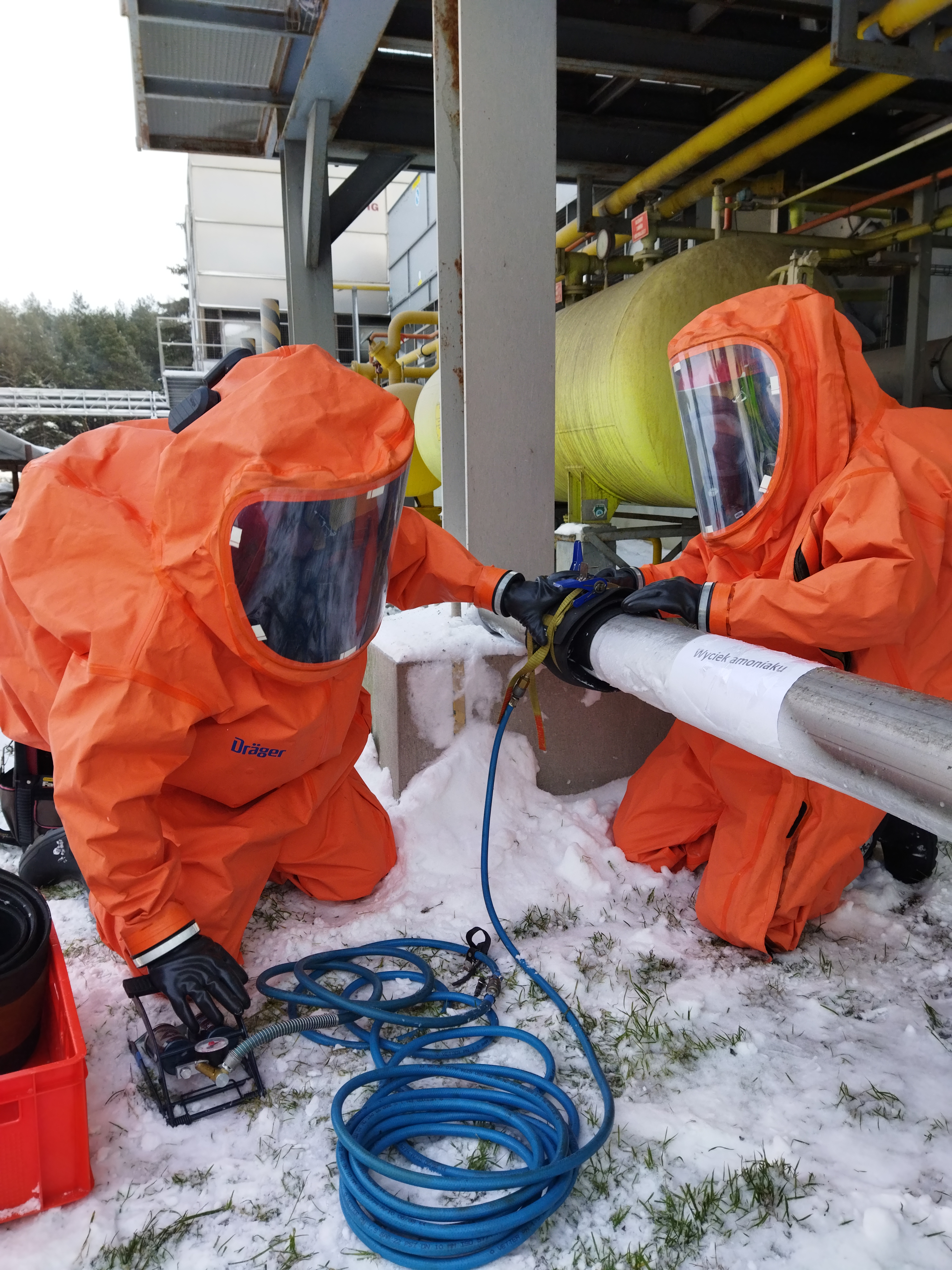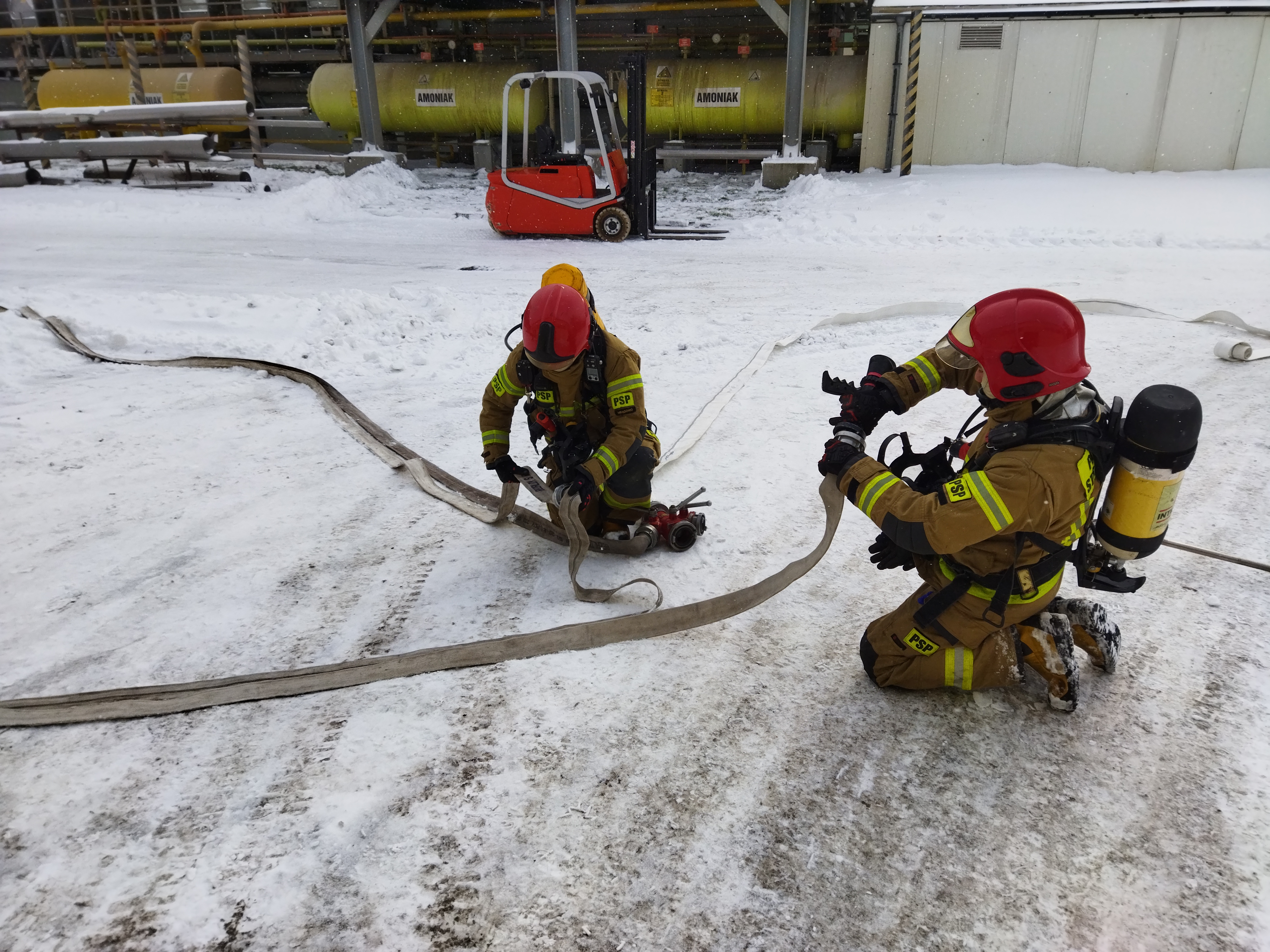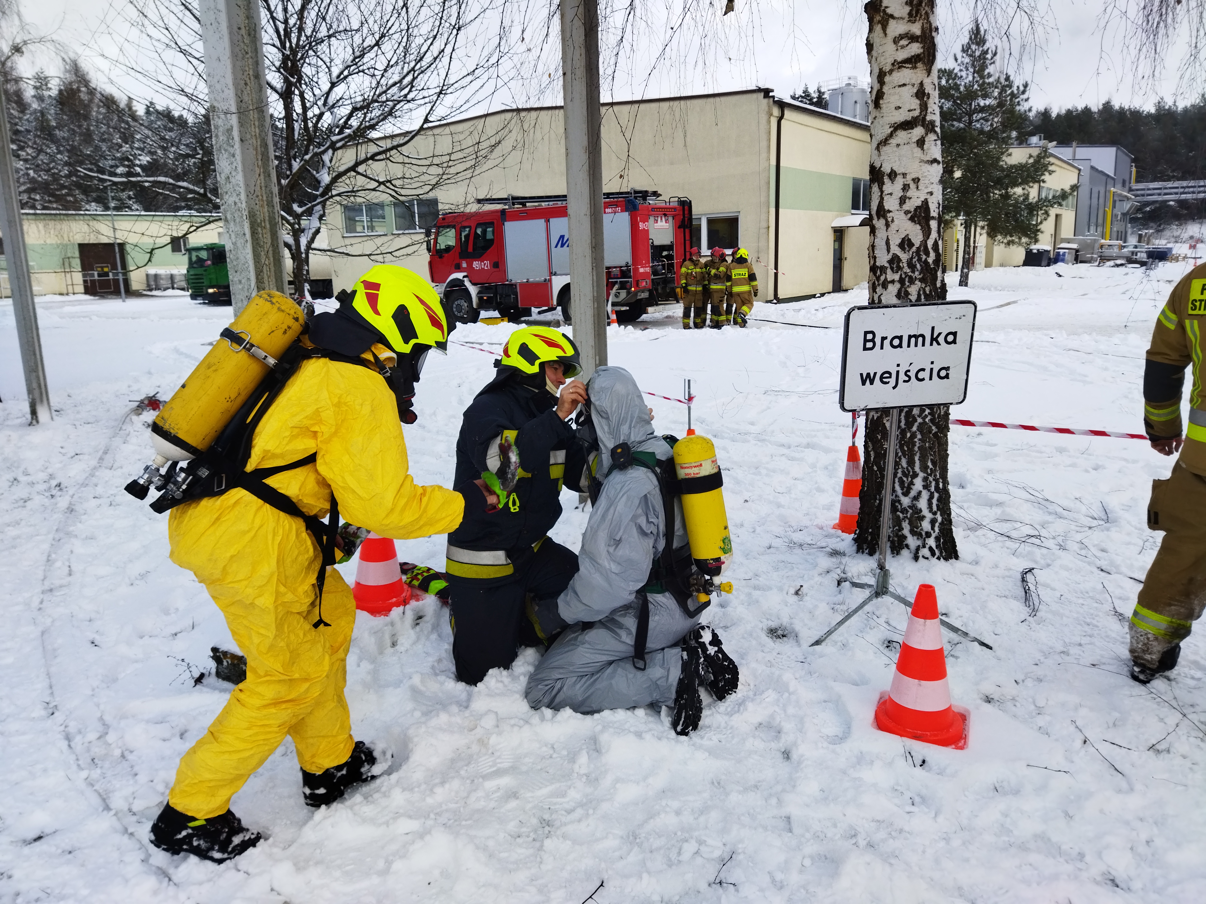 Ćwiczenia zostały zorganizowane we współpracy z dyrekcją zakładu MLEKPOL oraz Specjalistyczną Grupą Ratownictwa Chemicznego i Ekologicznego z JRG 1 Olsztyn.