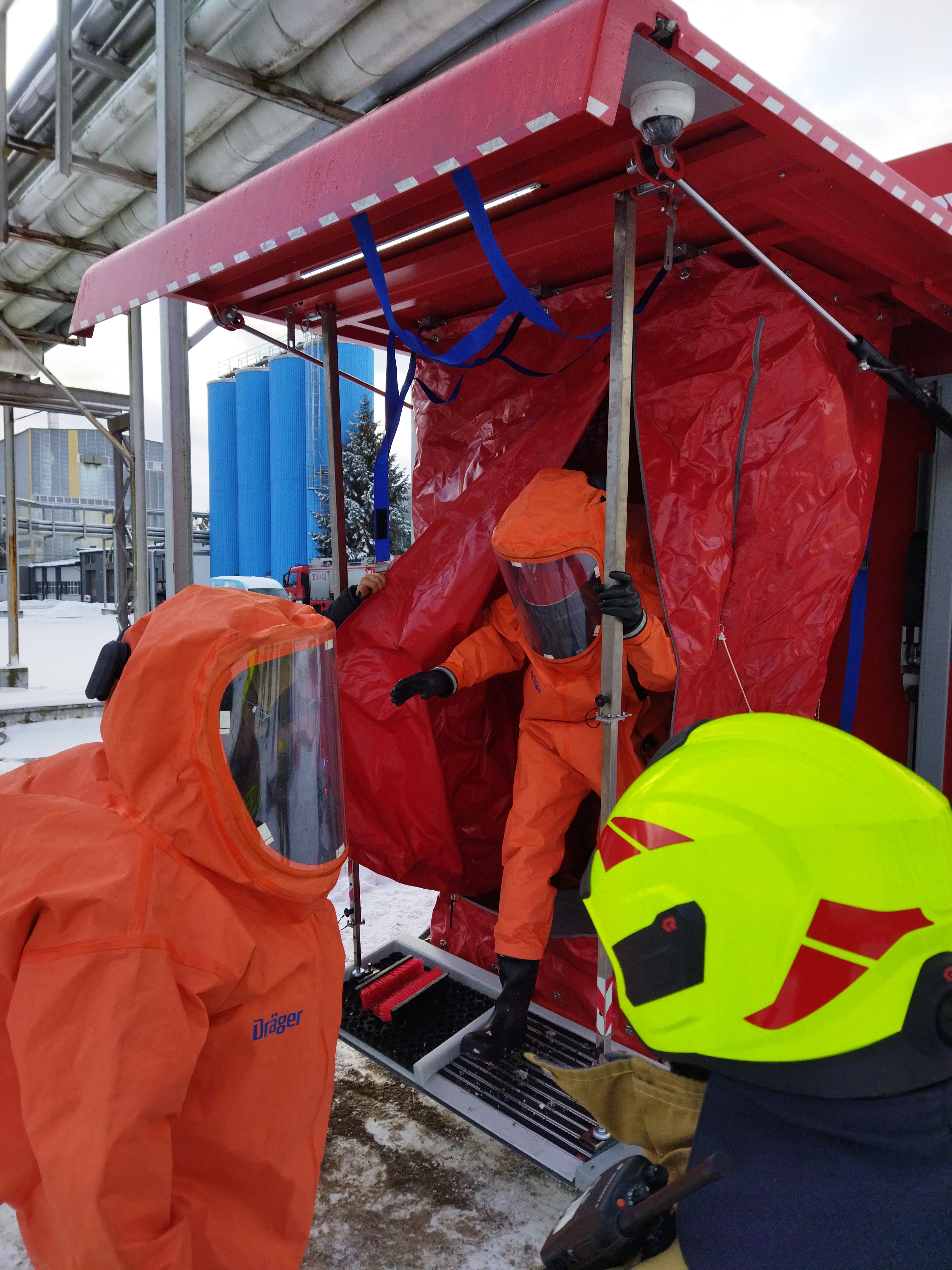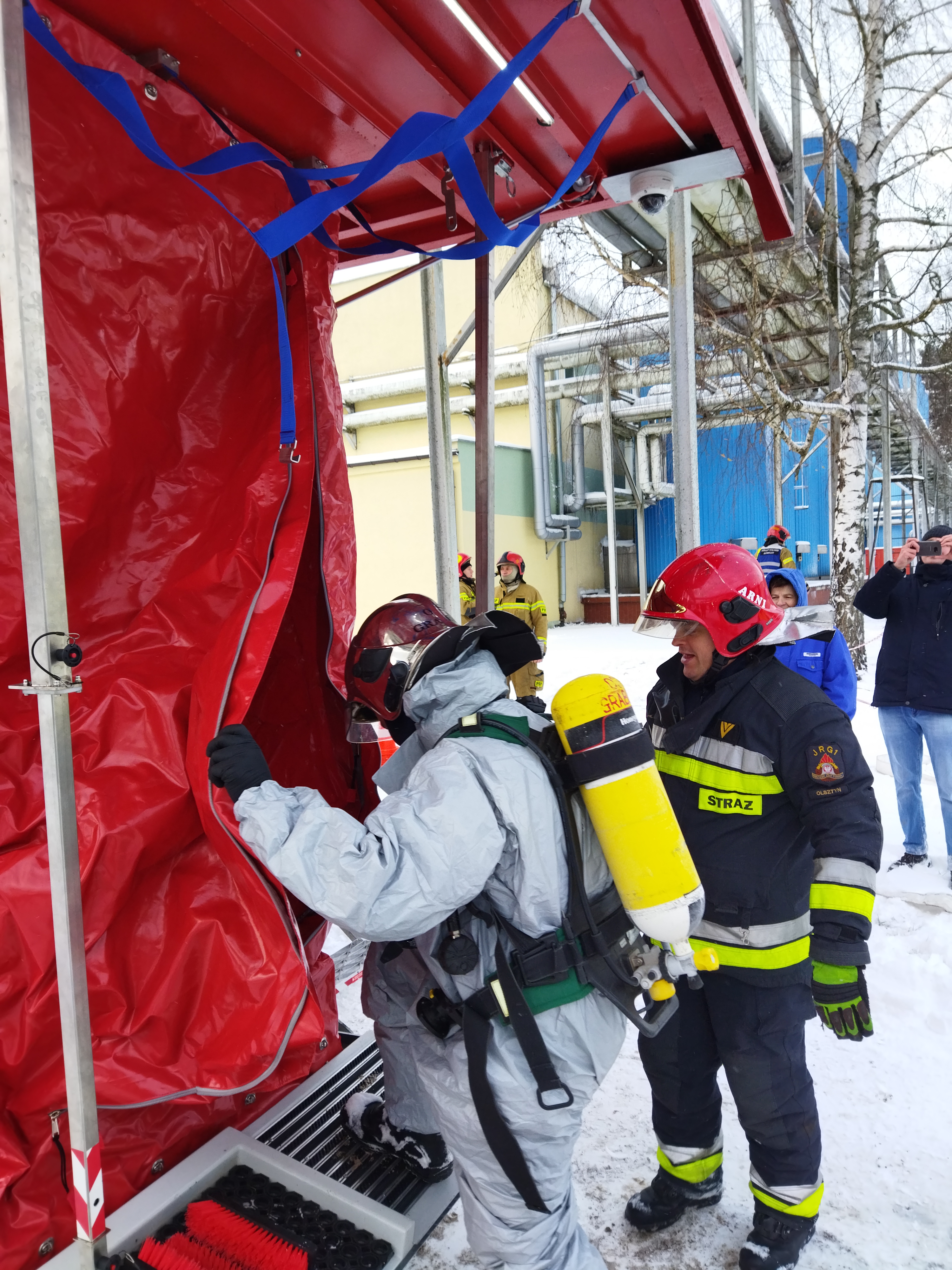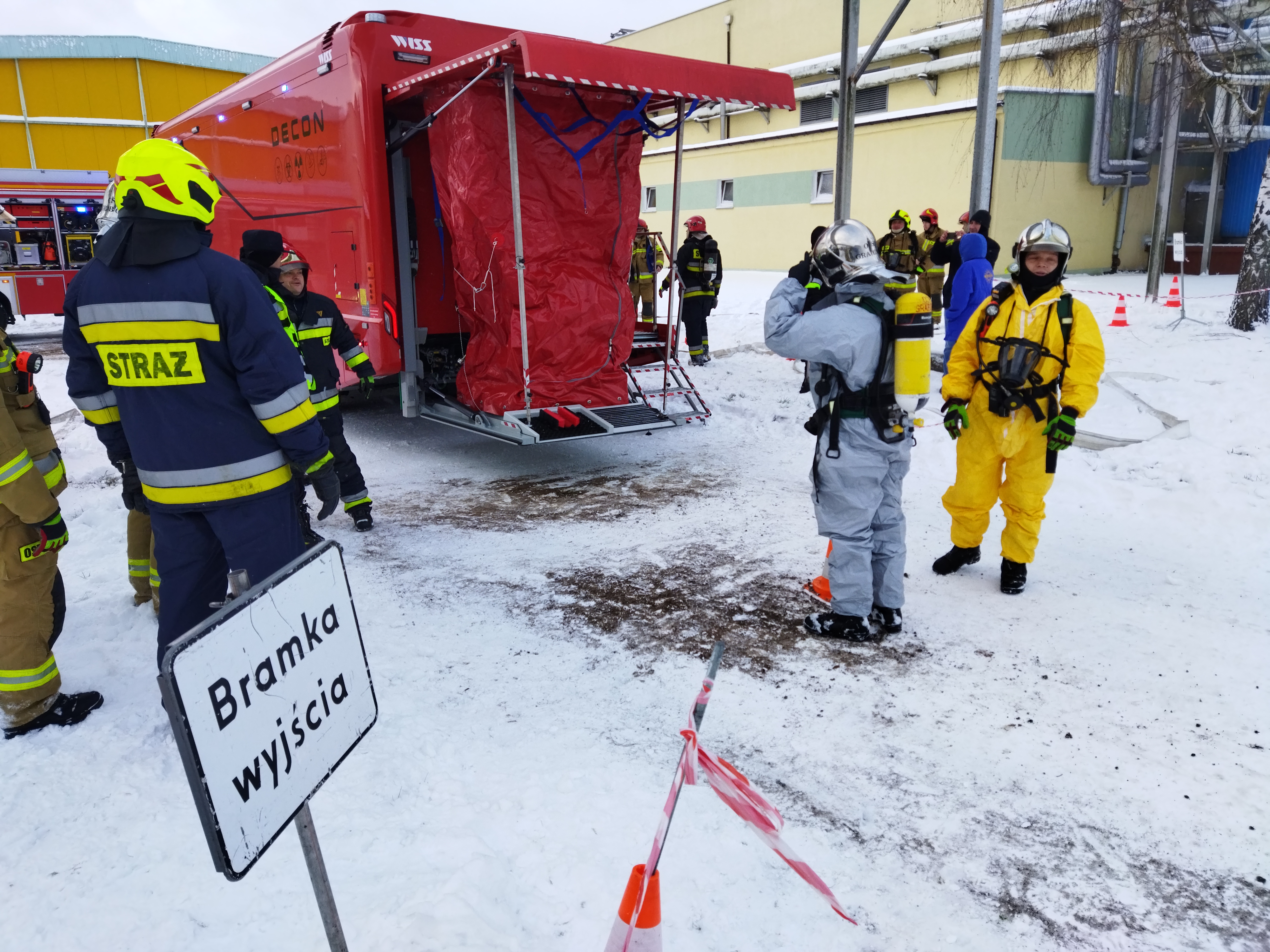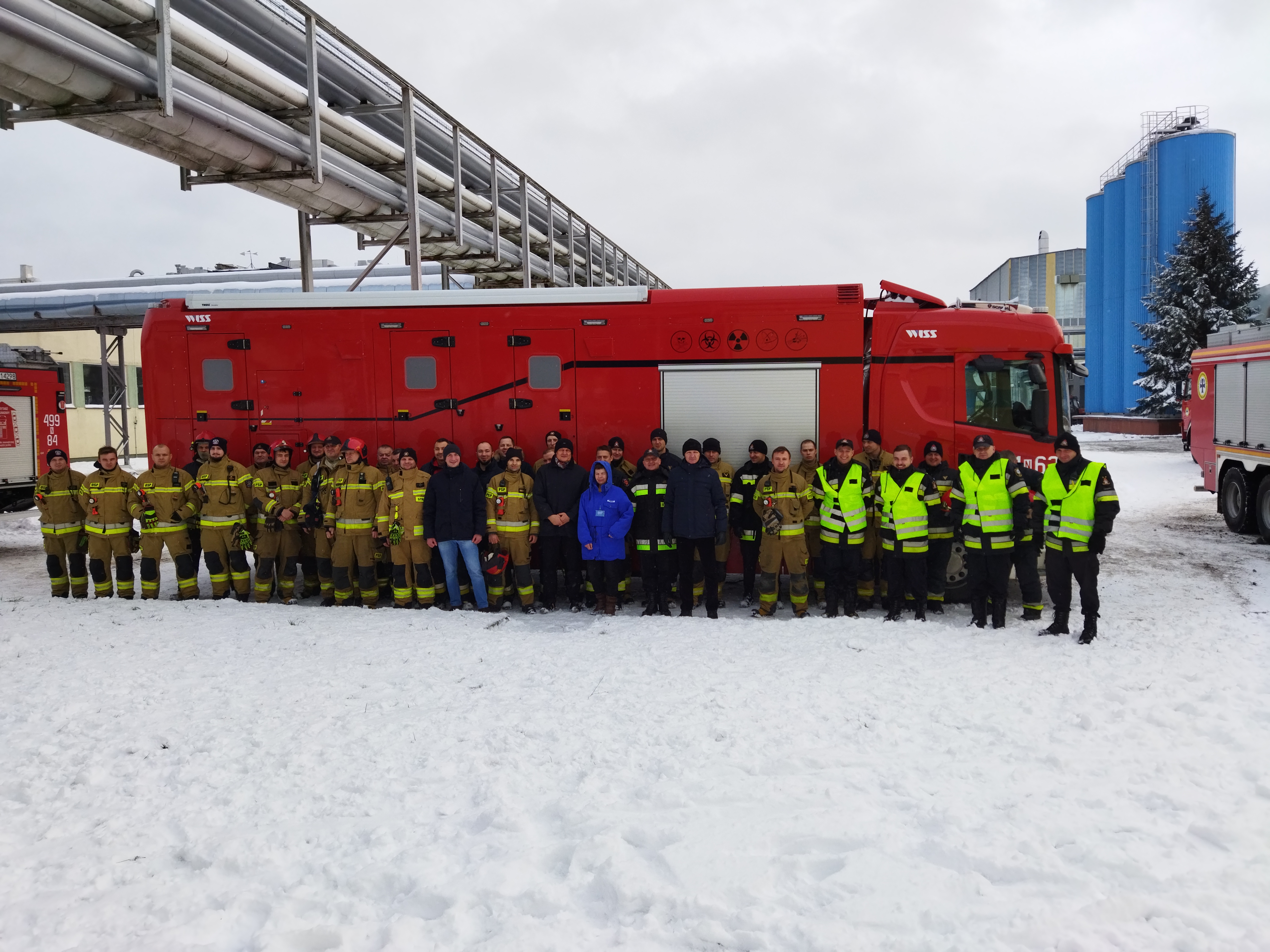 Ćwiczenia zostały zorganizowane we współpracy z dyrekcją zakładu MLEKPOL oraz Specjalistyczną Grupą Ratownictwa Chemicznego i Ekologicznego z JRG 1 Olsztyn.