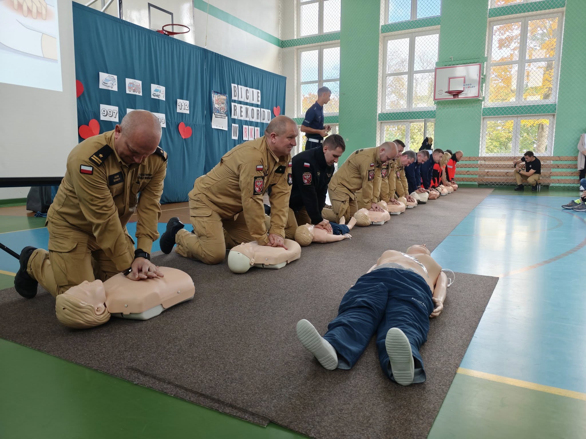 uczestniczyliśmy w akcji bicia rekordu udzielania pierwszej pomocy w Szkoła Podstawowa nr 1 im. Mikołaja Kopernika w Mrągowie. Do wspólnej resuscytacji krążeniowo-oddechowej przystąpili najmłodsi uczniowie, grono nauczycielskie oraz przedstawiciele Policji