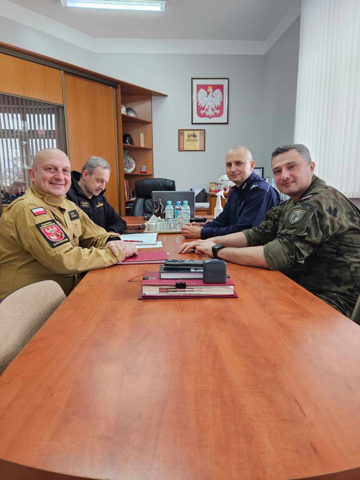 22 stycznia 2024 r. w Komendzie Powiatowej PSP w Mrągowie odbyło się spotkanie Kierownictwa mrągowskich służb celem ustalenia współpracy z WOŚP. W spotkaniu wziął udział Komendant Powiatowy PSP w Mrągowie mł. bryg. Józef Adam Banach oraz jego Zastępca mł. bryg. Grzegorz Zubowicz, Zastępca Komendanta Powiatowego Policji w Mrągowie podinsp. Andrzej Andraczek oraz Komendant Wojskowego Ośrodka Szkoleniowo-Kondycyjnego w Mrągowie ppłk Rafał Dziura.