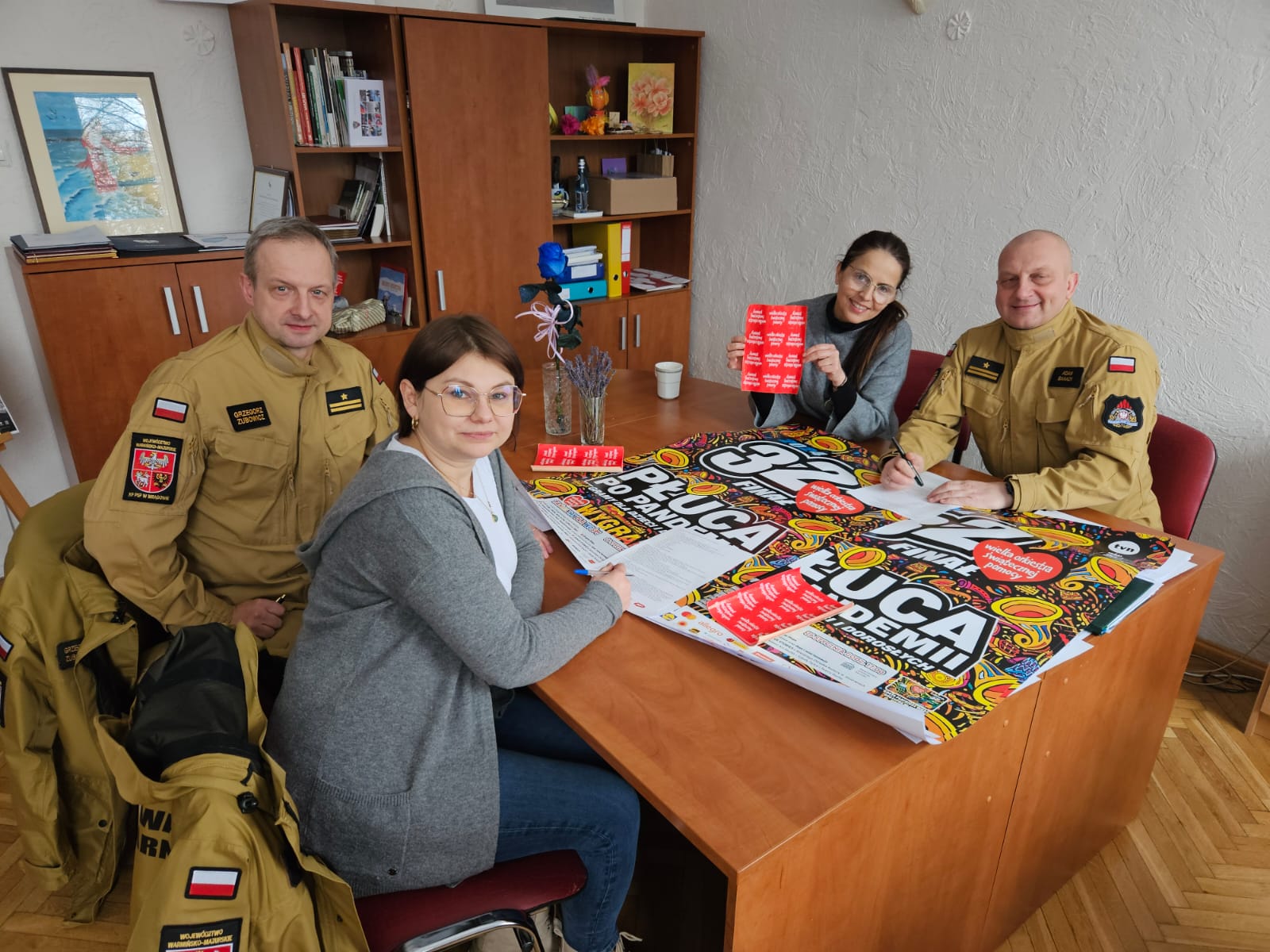 Następnie Kierownictwo naszej Komendy udało się na spotkanie z panią Kingą Tafel, Szefem Sztabu WOŚP Mrągowo, w celu ustalenia ścisłej współpracy oraz udziału PSP w nadchodzącym wydarzeniu.