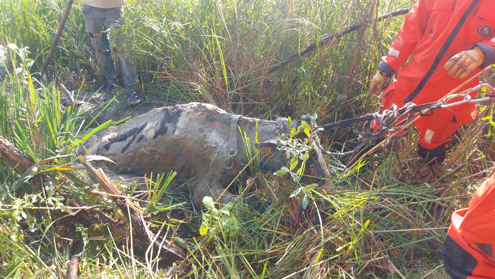 W dniu dzisiejszym do Stanowiska Kierowania Komendanta Powiatowego PSP w Mrągowie wpłynęło zgłoszenie w postaci formatki o krowie, która ugrzęzła w podmokłym, przyjeziornym terenie. Do zdarzenia doszło w miejscowości Dłużec. Przed przybyciem Straży Pożarnej właściciel sam próbował uwolnić zwierzę. Dzięki sprawnemu działaniu naszych strażaków w szybki i skuteczny sposób udało się uratować krowę.
