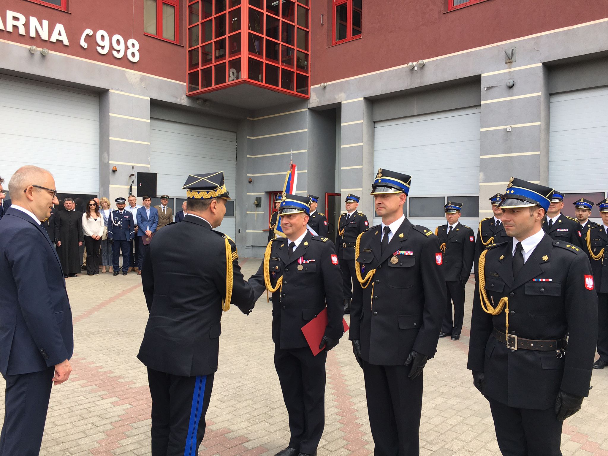 Po podniesieniu flagi państwowej na maszt, uhonorowano wyróżniających się strażaków medalami, odznaczeniami oraz awansami: