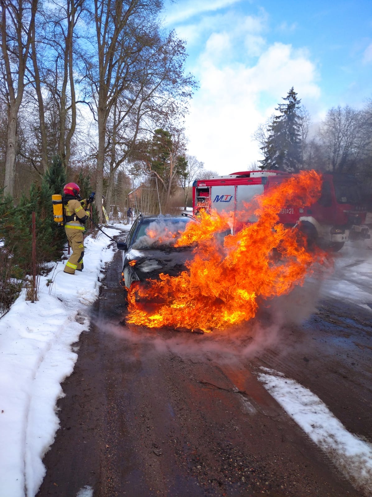 Pożar samochodu na DK 59