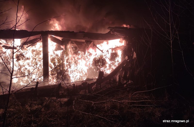 O godzinie 22:52 dnia 31.12.2020 r. na stanowisko kierowania Komendanta Powiatowego PSP w Mrągowie wpłynęła informacja o pożarze hali magazynowej w której składowane były odpady.