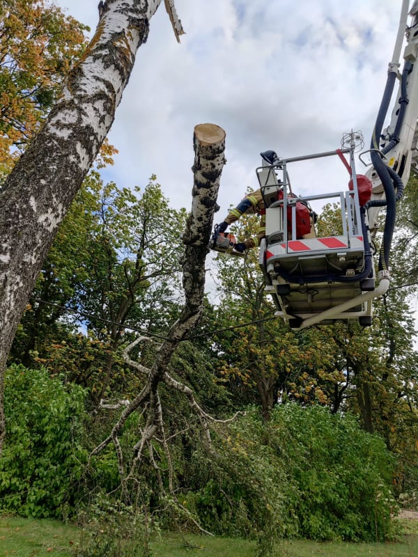 Choć sezon wakacyjny, który tego roku szczególnie obfity był w zdarzenia będące następstwem gwałtownych zjawisk atmosferycznych dobiegł już końca, nie oznacza to, że Strażacy mogą cieszyć się błogim spokojem. Zarówno dla ratowników z JRG Mrągowo jak i druhów z Ochotniczych Straży Pożarnych naszego powiatu miniony weekend okazał się być powtórką najbardziej pracowitych dni z okresu letniego, kiedy burze i wichury wymagały nieustających interwencji zastępów ochrony przeciwpożarowej. W związku z występowaniem porywów silnego wiatru Centralne Biuro Prognoz Meteorologicznych w Białymstoku wprowadziło 1 stopień zagrożenia meteorologicznego dla powiatu mrągowskiego, co przełożyło się na mnogość niebezpiecznych incydentów, do których zostaliśmy zadysponowani. Od piątku do niedzieli SK KP w Mrągowie odnotowało 32 zdarzenia, podczas których działania Straży Pożarnej polegały m.in. na usuwaniu powalonych drzew blokujących przejezdność dróg, bądź też stwarzających inne zagrożenia dla życia i zdrowia ludzi. Do akcji wielokrotnie wyjeżdżały m.in. jednostki z OSP Mikołajki, OSP Krutyń, OSP Warpuny, OSP Szestno, OSP Wyszembork, OSP Sorkwity, OSP Piecki, OSP Stare Kiełbonki, OSP Wierzbowo, OSP Woźnice, OSP Gązwa, OSP Rybno, a także JRG Mrągowo. Do działań niejednokrotnie koniecznym było także zadysponowanie podnośnika.