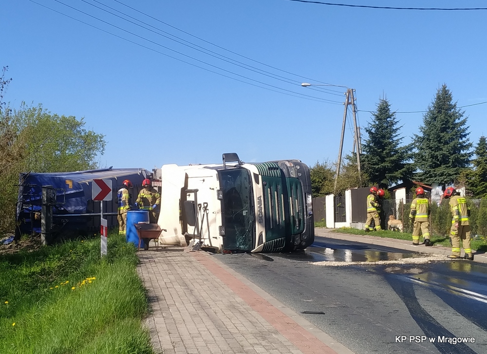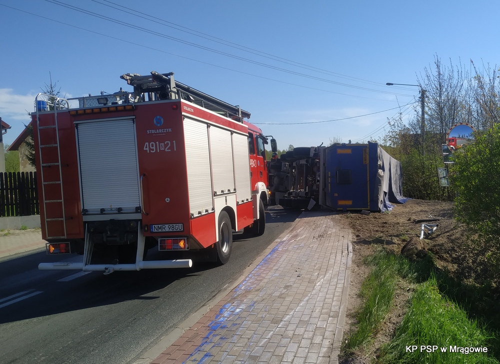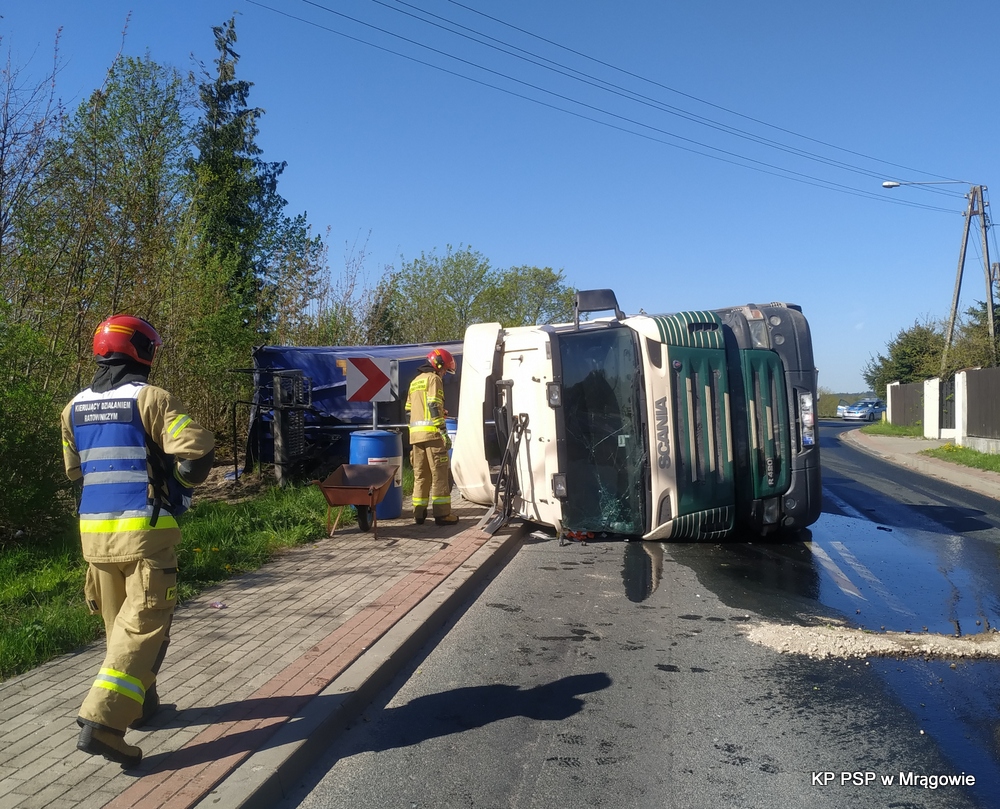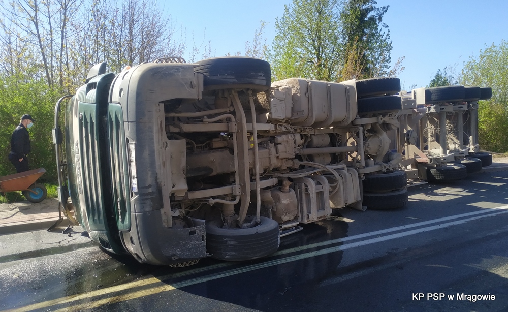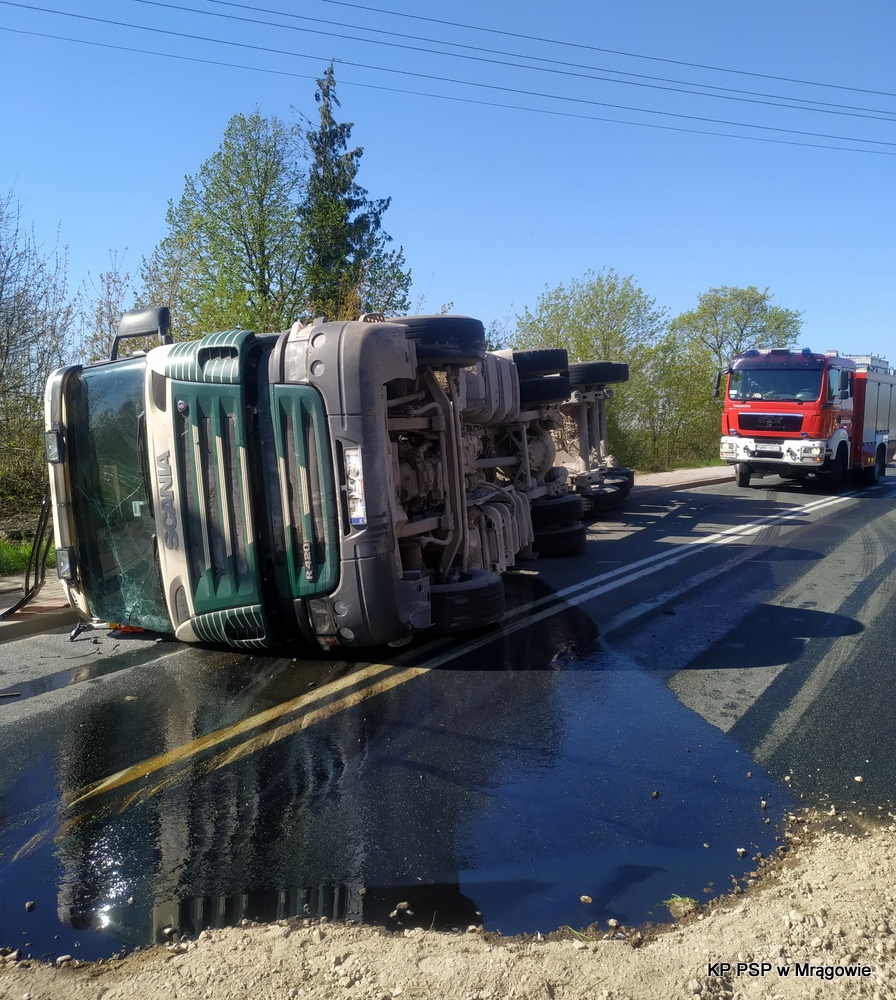 O godzinie 08:21 dnia 11.05.2021 r. na stanowisko kierowania Komendanta Powiatowego PSP w Mrągowie wpłynęła informacja o przewróconym samochodzie ciężarowym w miejscowości Inulec.