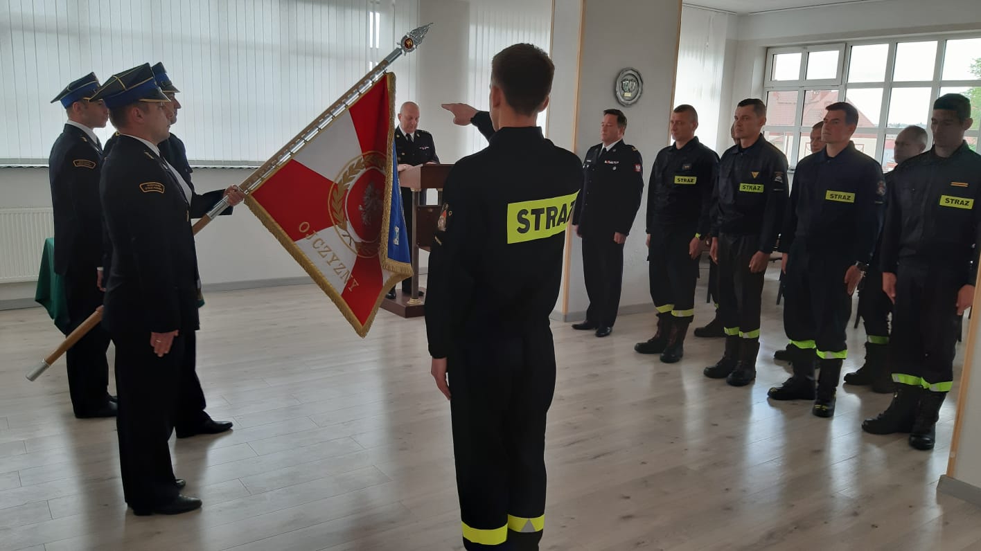 Ślubowanie funkcjonariusza mrągowskiej Straży Pożarnej