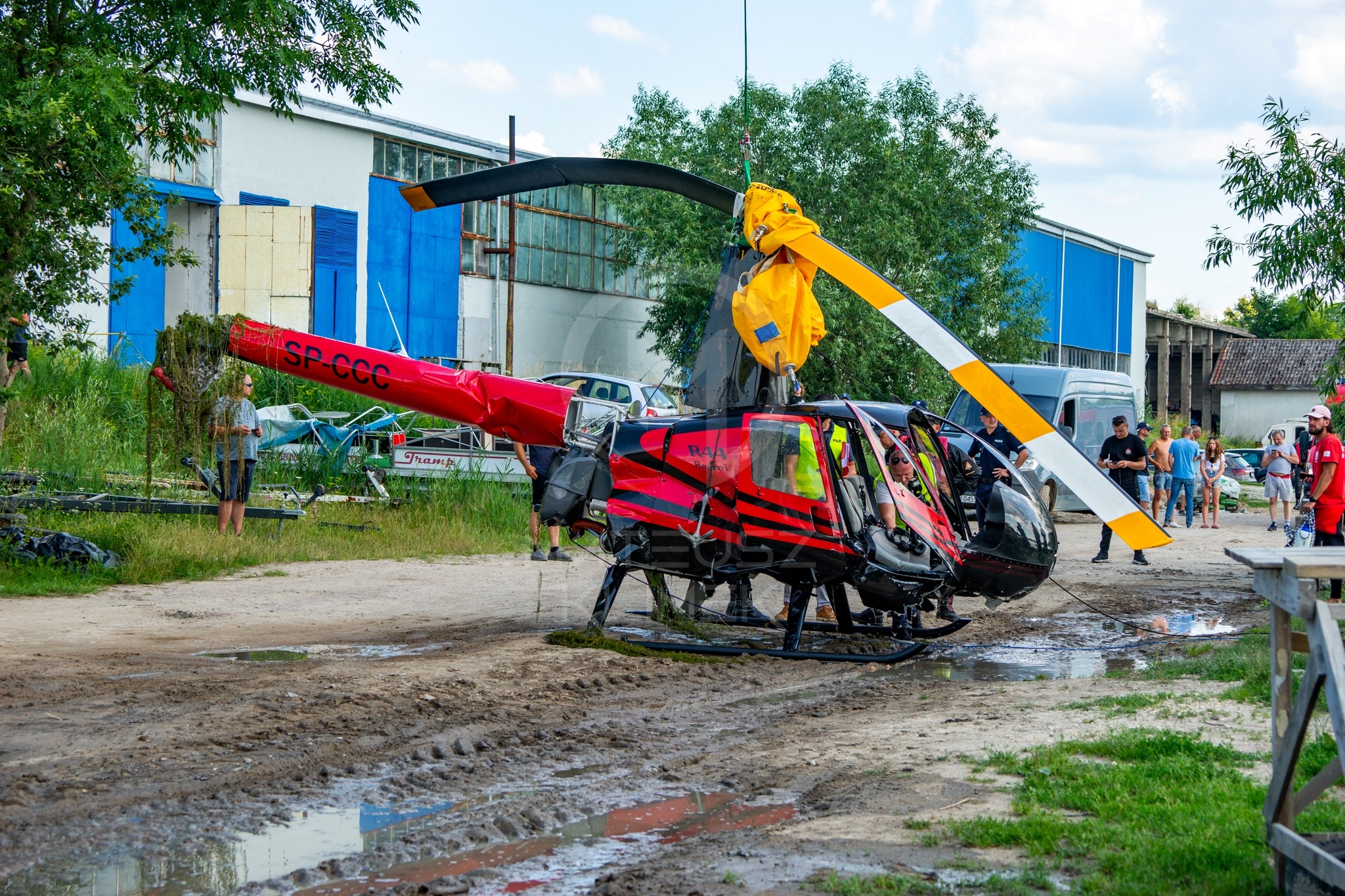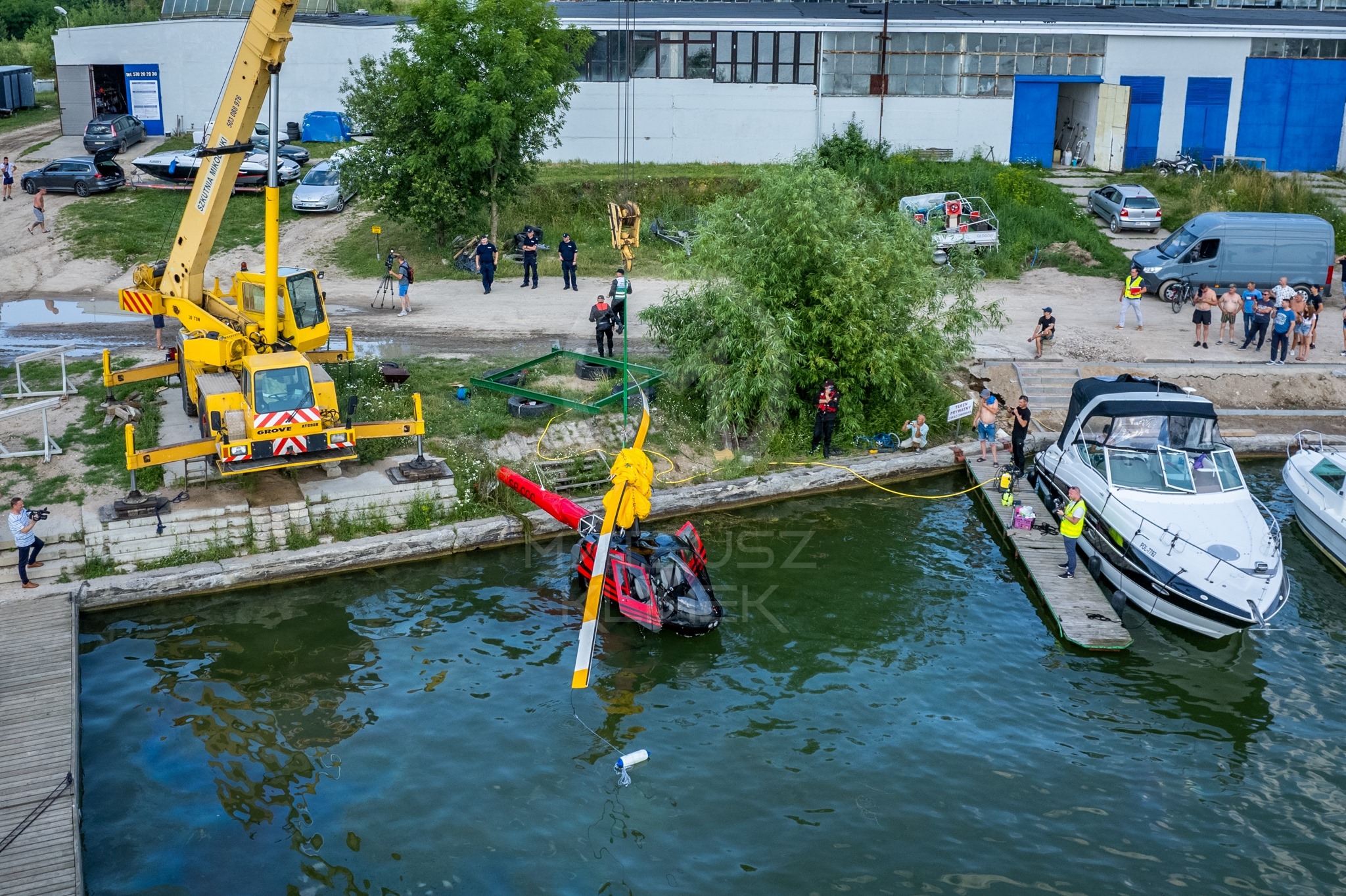 Na miejsce przybyła Grupa Operacyjna Warmińsko-Mazurskiego Komendanta Wojewódzkiego PSP której dowódca po zapoznaniu się z sytuacją przejął dowodzenie. Wszczęto przygotowania do podniesienia wraku śmigłowca z dna jeziora. KDR dokonał przegrupowania Strażaków na jednym brzegu jeziora od ul. Dąbrowskiego oraz ustalił z lokalnym przedsiębiorcą – operatorem dźwigu slipowego w porcie, miejsce wydobycia wraku z wody na brzeg. W celu podniesienia śmigłowca z dna jeziora, który znajdował się na głębokości 12 metrów, nurkowanie podczepili 2 balony wypornościowe o łącznej wyporności 1000 kilogramów po czym wrak został wydobyty pod lustro wody i odholowany do brzegu przy pomocy łodzi. Następnie nurkowie podczepili zawiesie do wraku śmigłowca po czym wydobyto go na brzeg. Ustalono z Policją, że przedstawiciele PKBWL przybędą dokonać oględzin wraku następnego dnia i do tego czasu wrak zabezpieczy Policja.