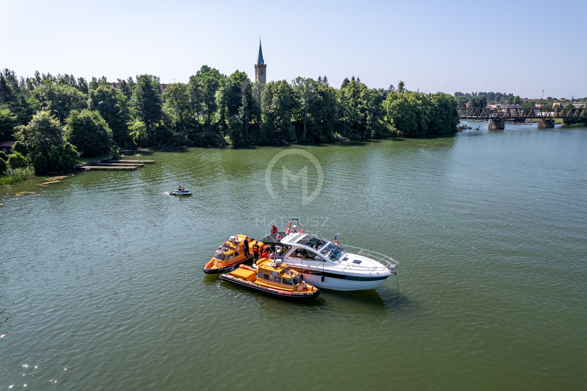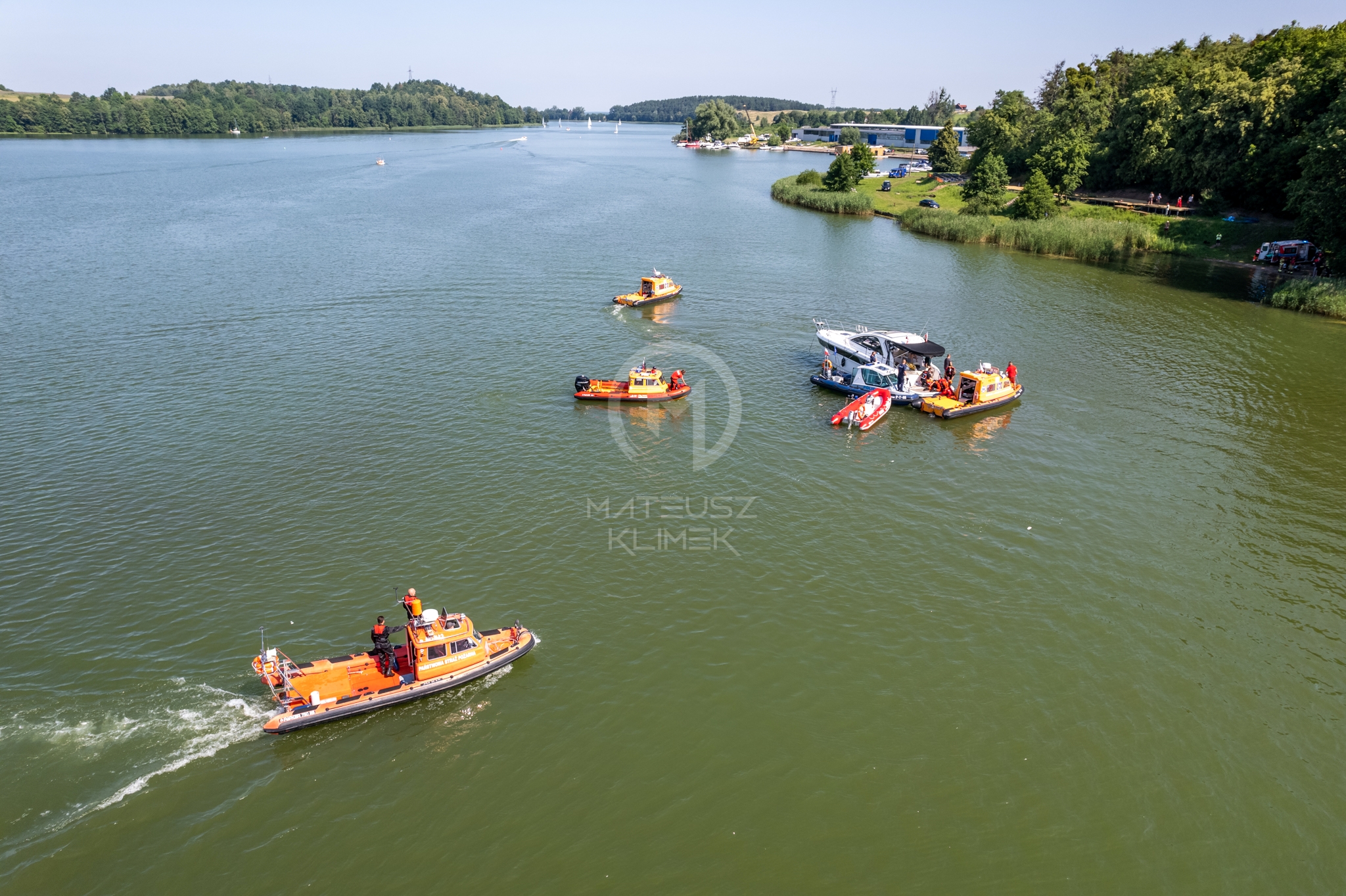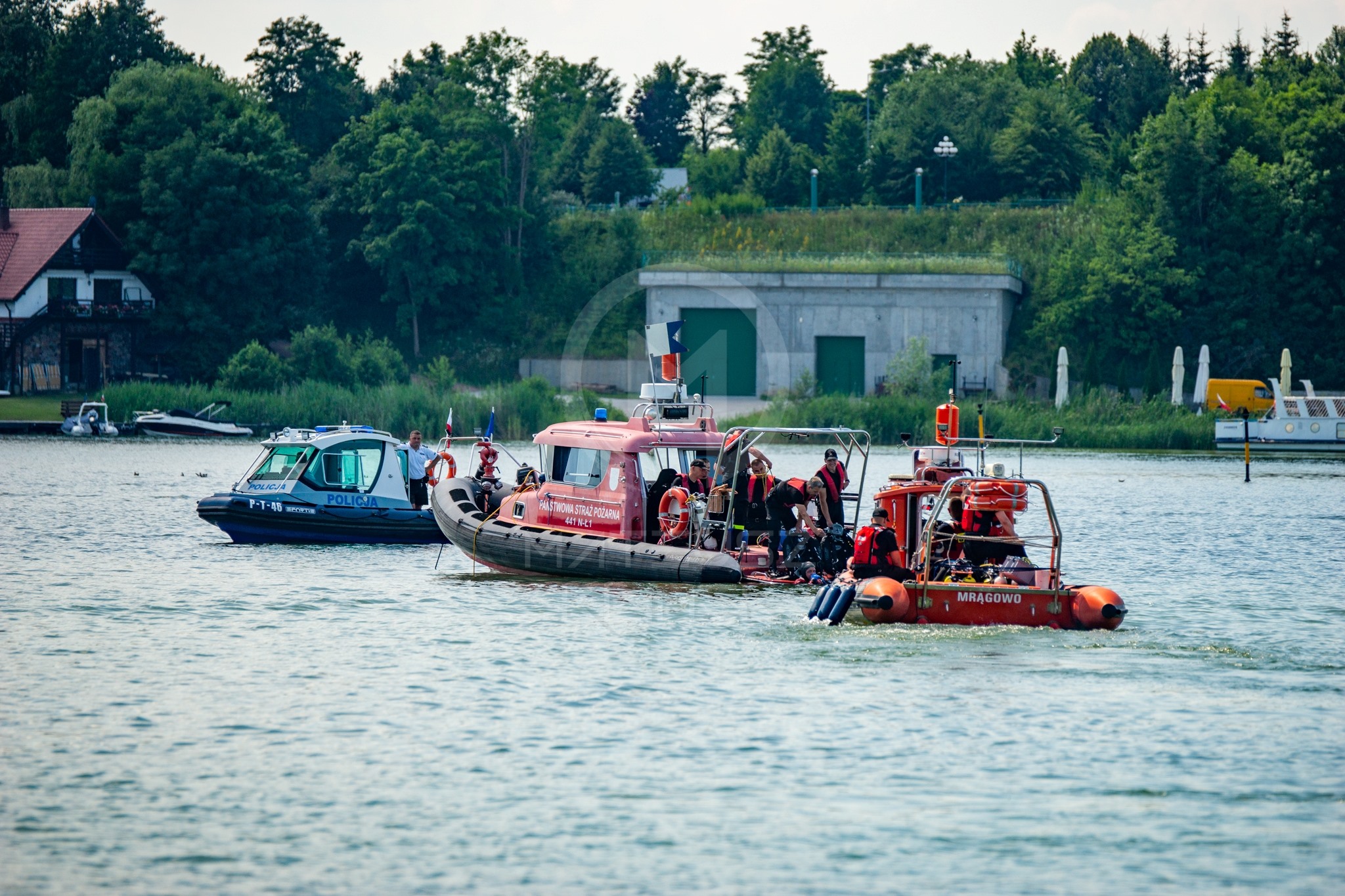 Na miejsce zdarzenia przybyli Komendant Powiatowy PSP w Mrągowie wraz z Zastępcą oraz 6 członków SGRW-N Mrągowo w tym Zastępca Dowódcy JRG Mrągowo. Przy użyciu łodzi udali się na miejsce zatonięcia śmigłowca celem dokonania rozpoznania. Na miejscu zdarzenia otrzymano informację, że śmigłowcem podróżowały 3 osoby którym udało się opuścić helikopter przed jego zatonięciem. KDR podjął decyzje o zejściu dwóch nurków w celu dokładnego sprawdzenia miejsca zatopienia wraku śmigłowca pod kątem innych osób poszkodowanych oraz ewentualnych wycieków. Na szczęście nie stwierdzono obecności innych osób we wraku pod wodą. Dokonano oznakowania miejsca przy użyciu bojki w celu ułatwienia podjęcia wraku.