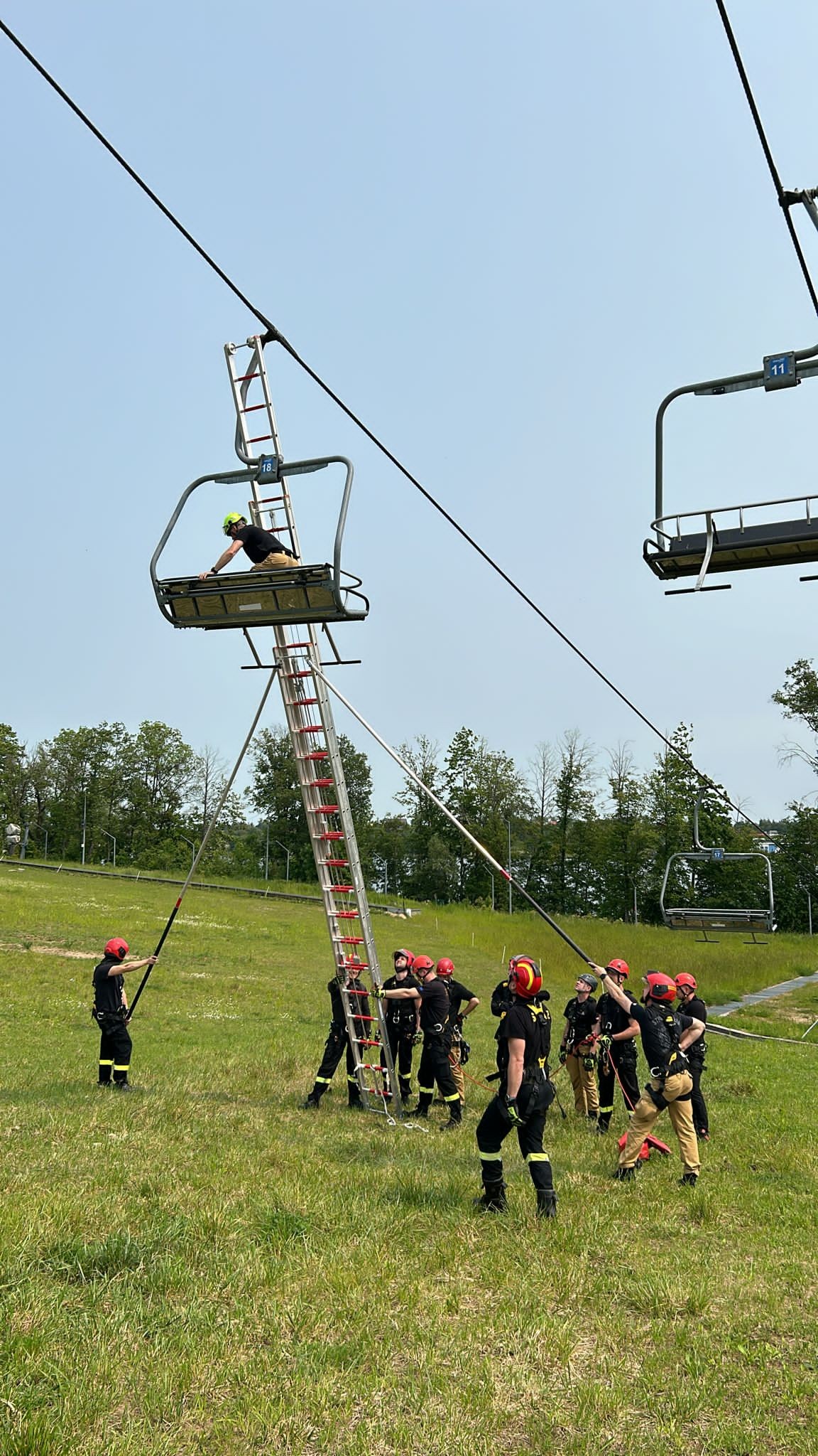 W myśl powiedzenia "Strzeżonego Pan Bóg strzeże" mrągowscy strażacy szkolil się z zakresu ratownictwa wysokościowego. A jako że w Powiat Mrągowski wystepuje jeden z dwóch na terenie całego województwa wyciągów krzesełkowych, szkolenie obejmowało właśnie techniki ewakuacji ludzi z wysokości w momencie awarii urządzenia.