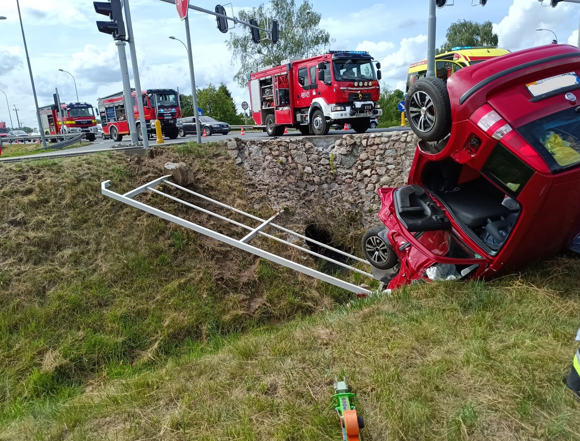 Na skrzyżowaniu obwodnicy z Leśną Drogą w Mrągowie, zderzyły się dwa samochody osobowe. Jeden z samochodów dachował i wpadł do głębokiego rowu. W zdarzeniu brały udział 4 osoby. Po dojeździe Straży Pożarnej na miejsce, strażacy zabezpieczyli miejsce zdarzenia i razem z ratownikami medycznymi udzielali pomocy poszkodowanym. Niestety obrażenia osób podróżujących w samochodzie marki Fiat, który wpadł do rowu były bardzo poważne. Kierowca z obrażeniami czekał na transport do szpitala, natomiast pasażerka bez oznak życia w stosunku do której była prowadzona RKO - Resuscytacja Krążeniowo Oddechowa. Do działań został zadysponowany śmigłowiec LPR po czym strażacy wyznaczyli i zabezpieczyli miejsce lądowania śmigłowca. Niestety pomimo starań ratowników i strażaków, nie udało się uratować życia kobiety. Podróżujących samochodem marki Nissan przetransportowano na obserwację do szpitala.