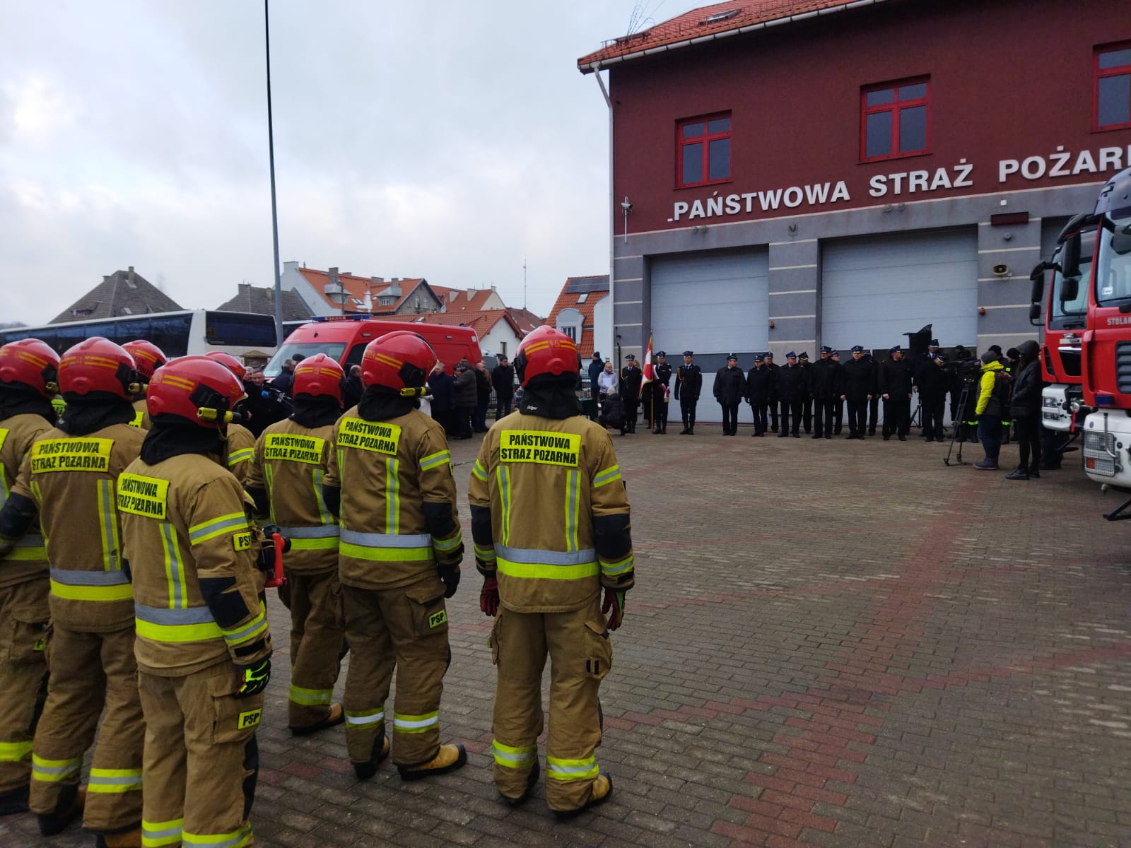 W uroczystym apelu wzięli udział m.in. Podsekretarz Stanu w Ministerstwie Spraw Wewnętrznych i Administracji Błażej Poboży, Warmińsko-Mazurski Komendant Wojewódzki PSP nadbryg. Tomasz Komoszyński, senator Małgorzata Kopiczko, poseł Jerzy Wojciech Małecki, poseł Wojciech Kossakowski oraz samorządowcy z powiatu mrągowskiego i zaproszeni goście.