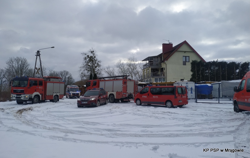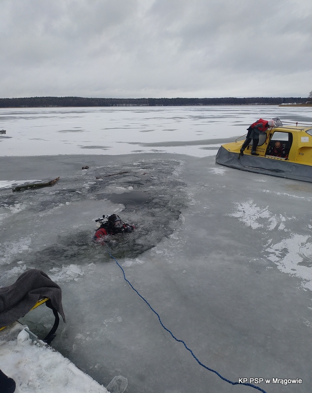 O godzinie 11:10 na Stanowisko Kierowania Komendanta Powiatowego PSP w Mrągowie wpłynęła informacja o dwóch mężczyznach, pod którymi załamał się lód na jeziorze Tałty w miejscowości Jora Wielka.