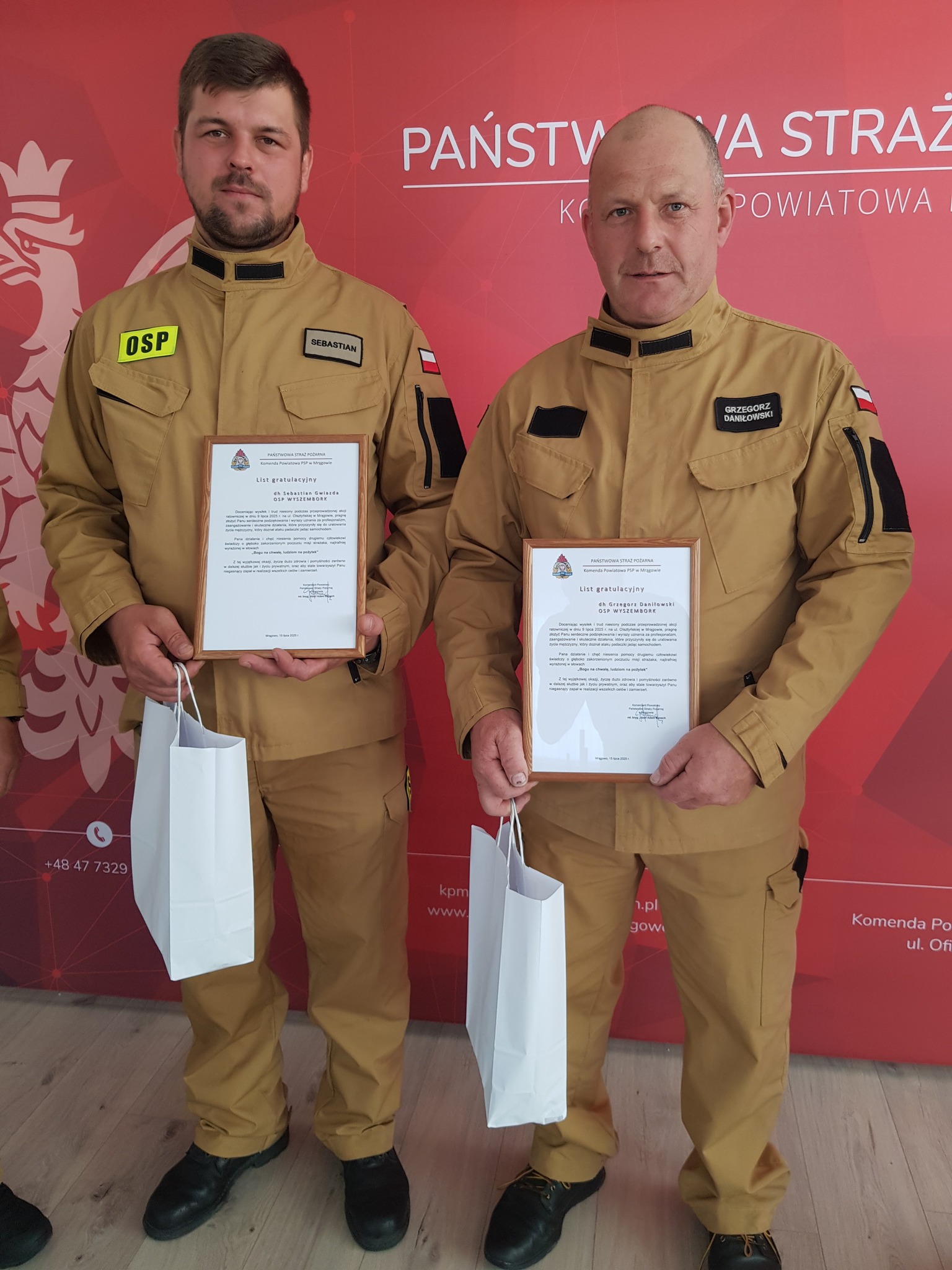 Dziś tj. 18.07 Komendant Powiatowy PSP w Mrągowie mł. bryg Józef Adam Banach w obecności przedstawiciela Gmina Mrągowo wręczył Listy gratulacyjne dh Grzegorzowi Daniłowskiemu oraz dh Sebastianowi Gwieździe z OSP KSRG Wyszembork.