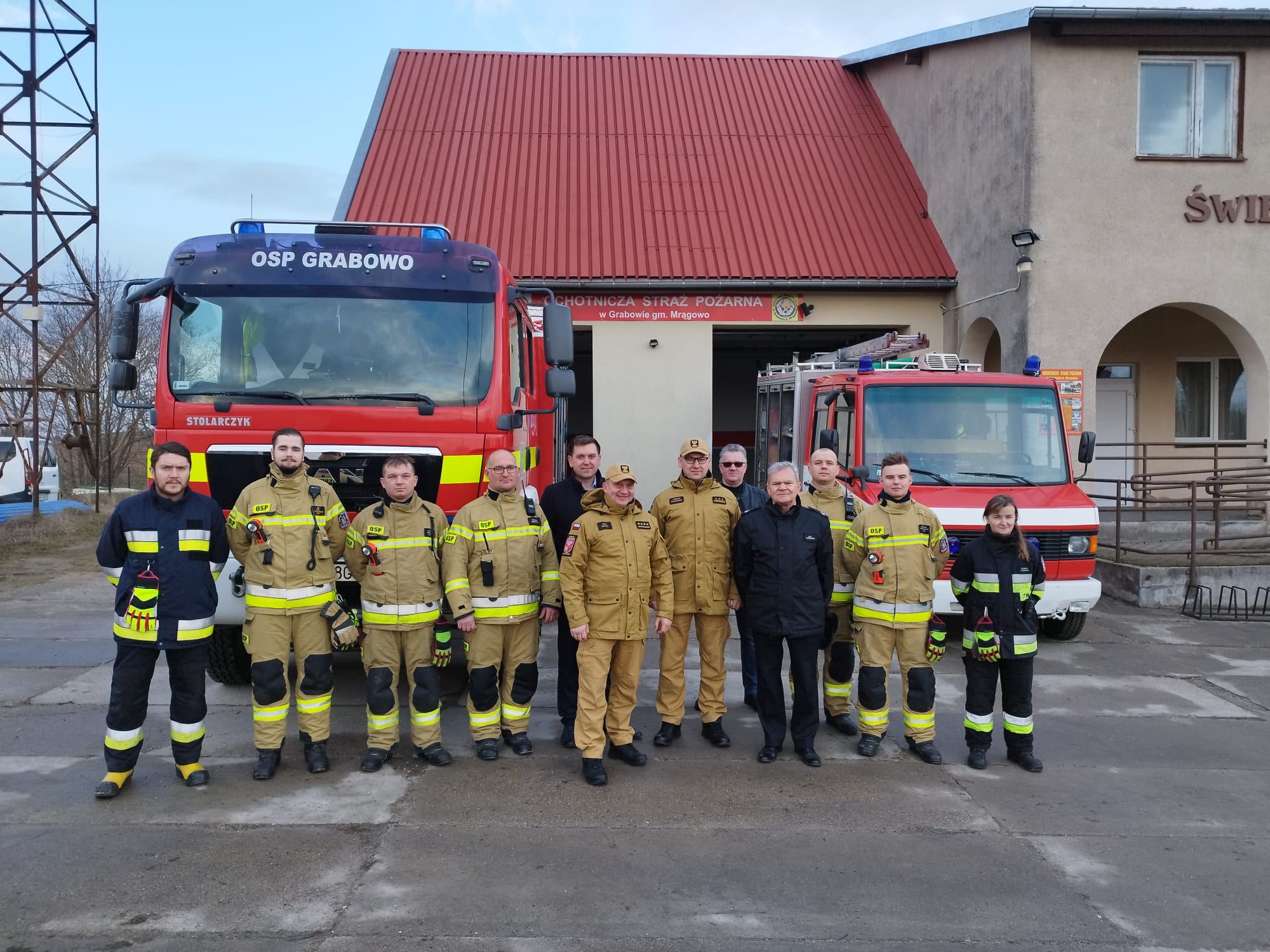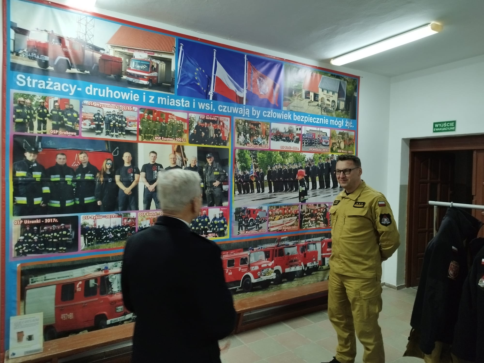 Na spotkaniach Zastępca Warmińsko Mazurskiego Komendanta Wojewódzkiego PSP st. bryg. Tomasz Ostrowski spotkał się z druhami oraz zapoznał się z wyposażeniem danych jednostek oraz z Salą Tradycji Pożarniczych Ochotniczej Straży Pożarnej w Grabowie.