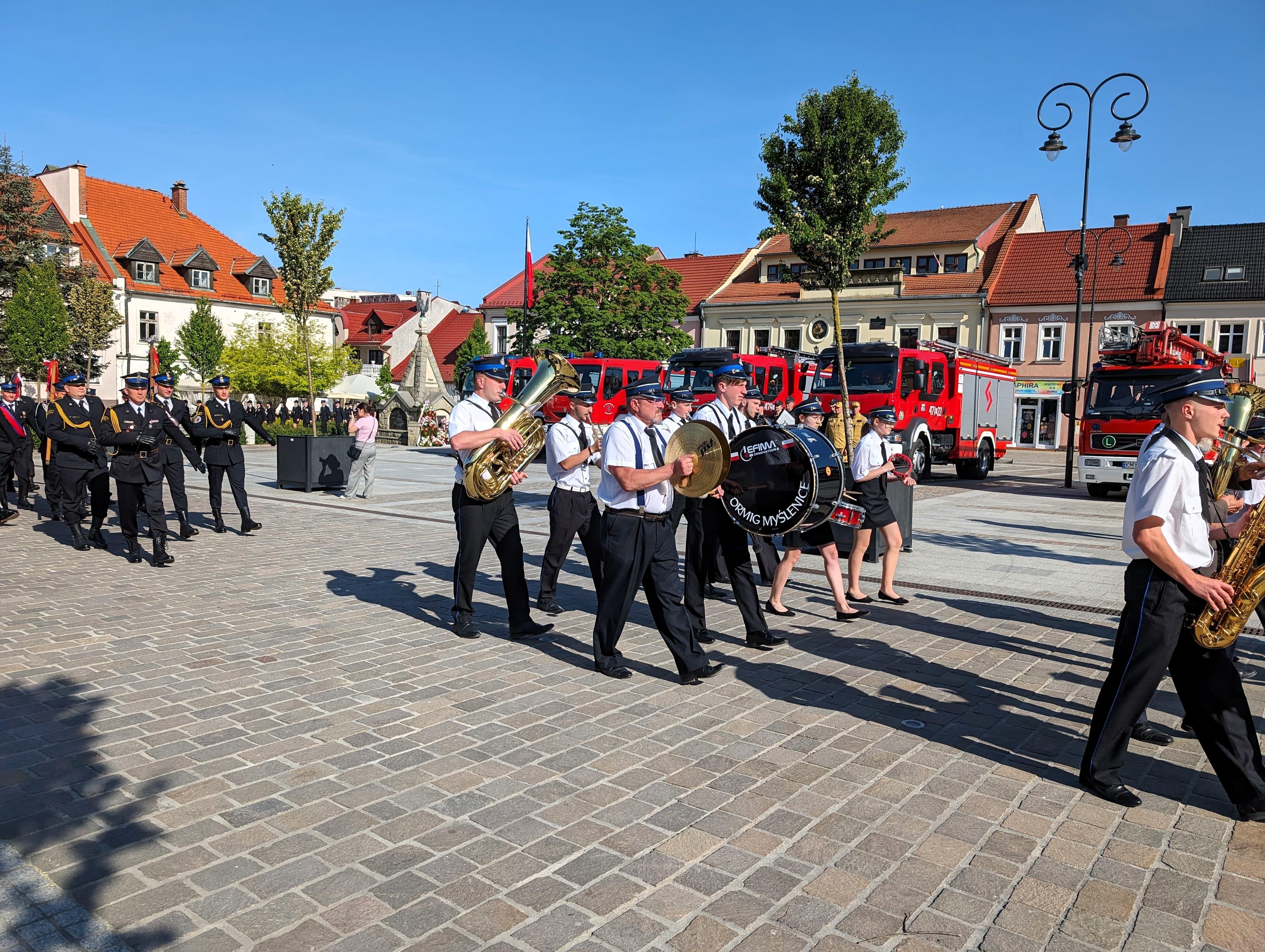 Obchody Dnia Strażaka przebiegały przy akompaniamencie Orkiestry Reprezentacyjnej Miasta i Gminy Myślenice.