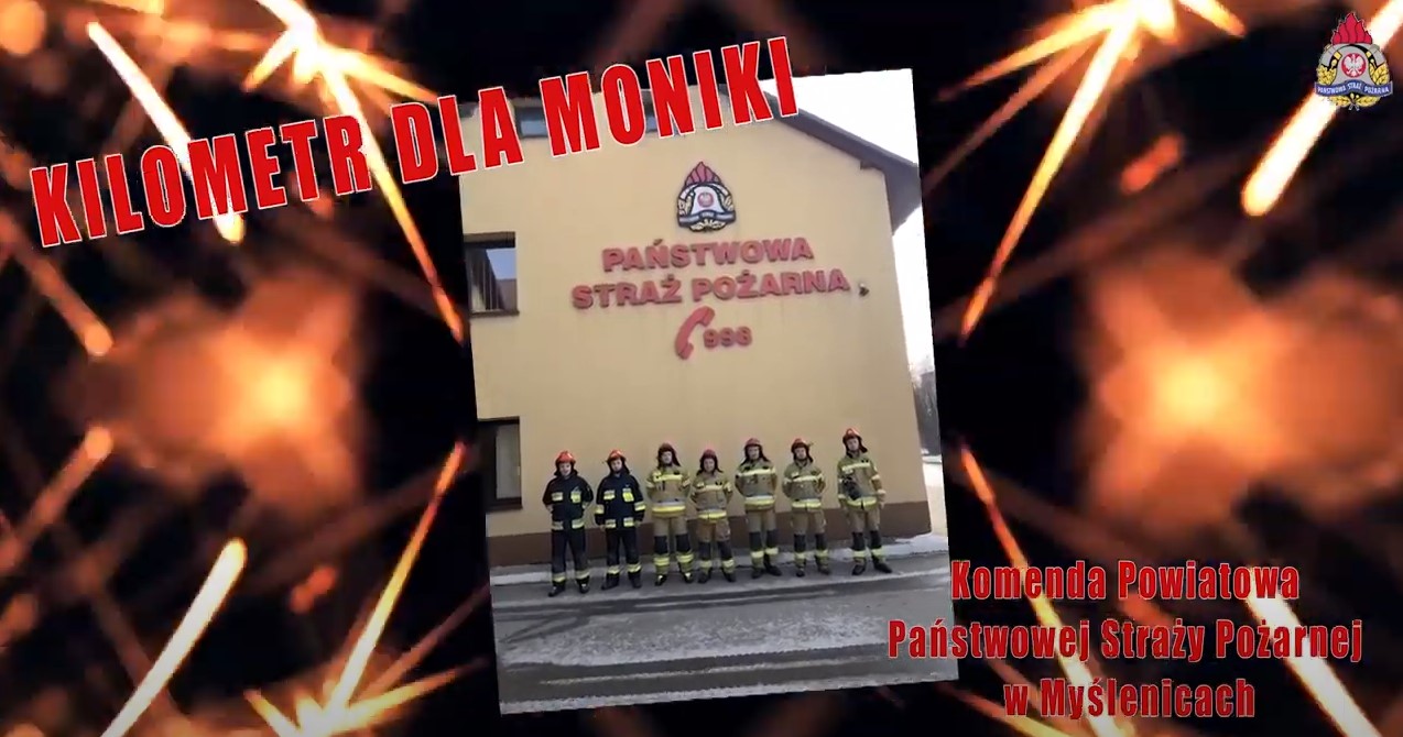 Codzienne działania strażaków to ratowanie życia, zdrowia i mienia społeczeństwa, ale równie chętnie włączamy się w pomoc na innych płaszczyznach. Komenda Powiatowa Państwowej Straży Pożarnej w Myślenicach w ramach akcji charytatywnej otrzymała nominację od funkcjonariuszy Komendy Powiatowej Policji w Myślenicach do zadania „Kilometr dla Moniki”. Strażacy podjęli się wykonania zadania i ubrani jak do działań ratowniczych przebiegli odpowiedni dystans równocześnie organizując wśród pracowników zbiórkę pieniężną na rzecz Moniki poszkodowanej w wypadku drogowym. Dziękujemy za możliwość udziału w tak ważnej akcji.