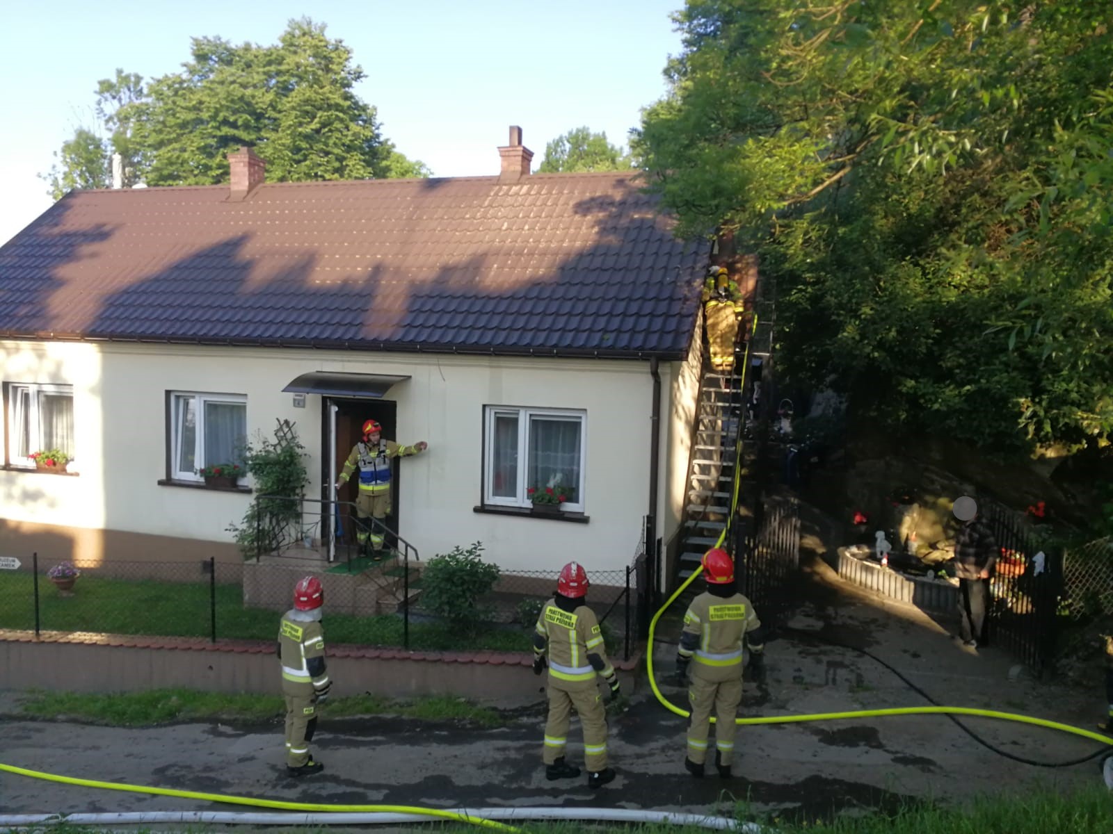 Po przybyciu na miejsce zdarzenia w miejscowości Dobczyce i przeprowadzeniu rozpoznania stwierdzono pożar na poddaszu budynku mieszkalnego. Sprawiono linię gaśniczą i podano prąd wody do wnętrza palącego się obiektu. Roty ratownicze pracowały w aparatach powietrznych wykorzystując posiadany sprzęt służący do lokalizacji ognia w przestrzeniach ukrytych. Po wskazaniu miejsc o podwyższonej temperaturze przystąpiono do prac rozbiórkowych konstrukcji dachu celem wyeliminowania zarzewi ognia. W celu wykluczenia zagrożenia od gazów pożarowych po zakończonych działaniach gaśniczych skontrolowano pomieszczenia budynku na obecność tlenku węgla nie stwierdzając zagrożenia.