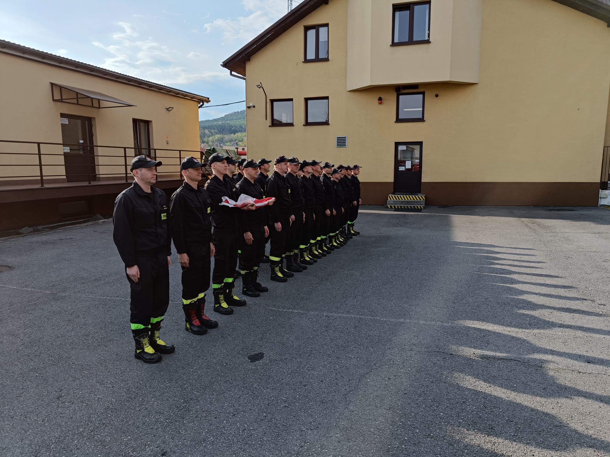 Z tej okazji o godzinie 8:00 w Komendzie Powiatowej Państwowej Straży Pożarnej w Myślenicach odbyła się uroczysta zmiana służby, podczas której nastąpiło podniesienie flagi państwowej na maszt.