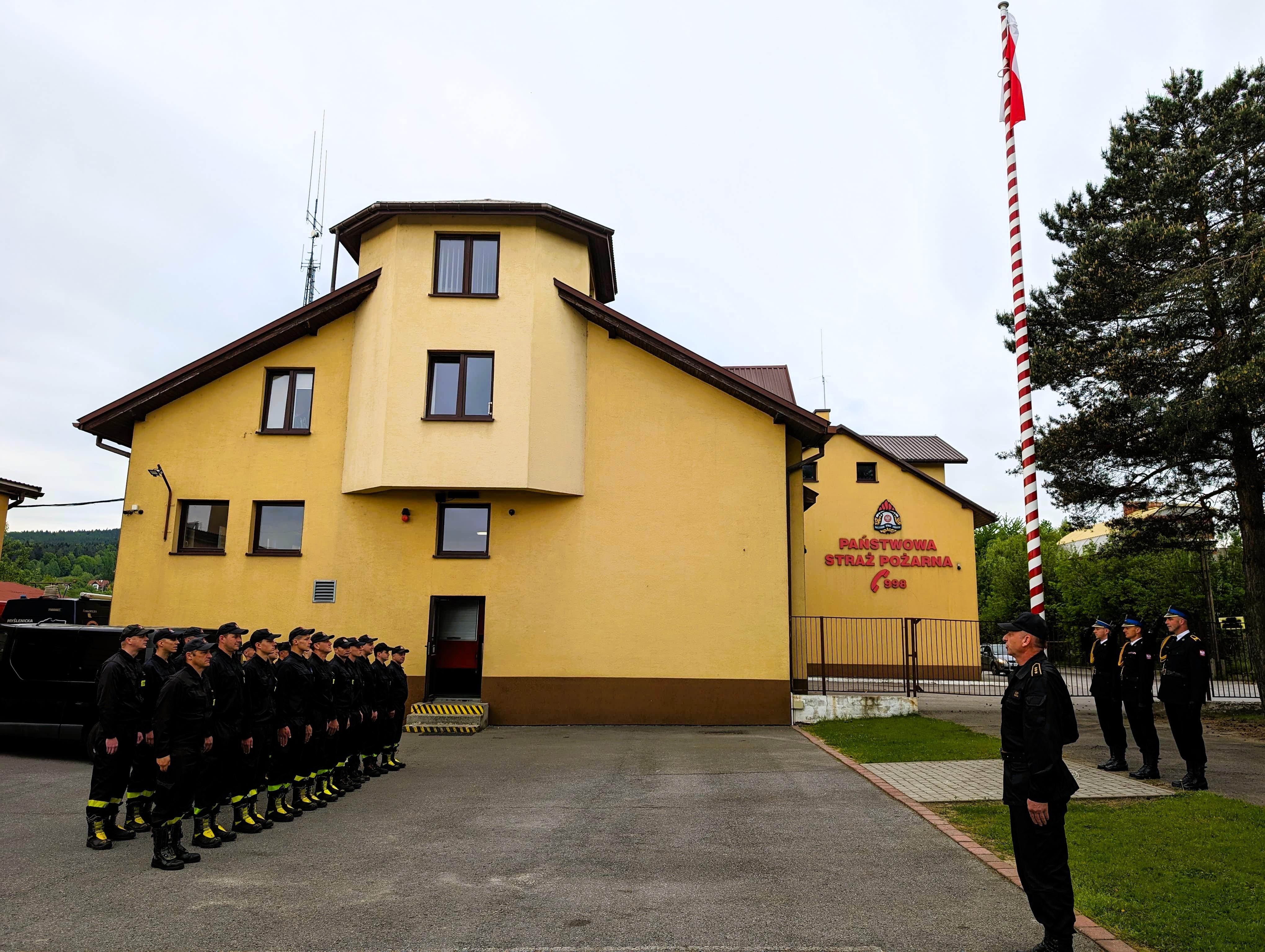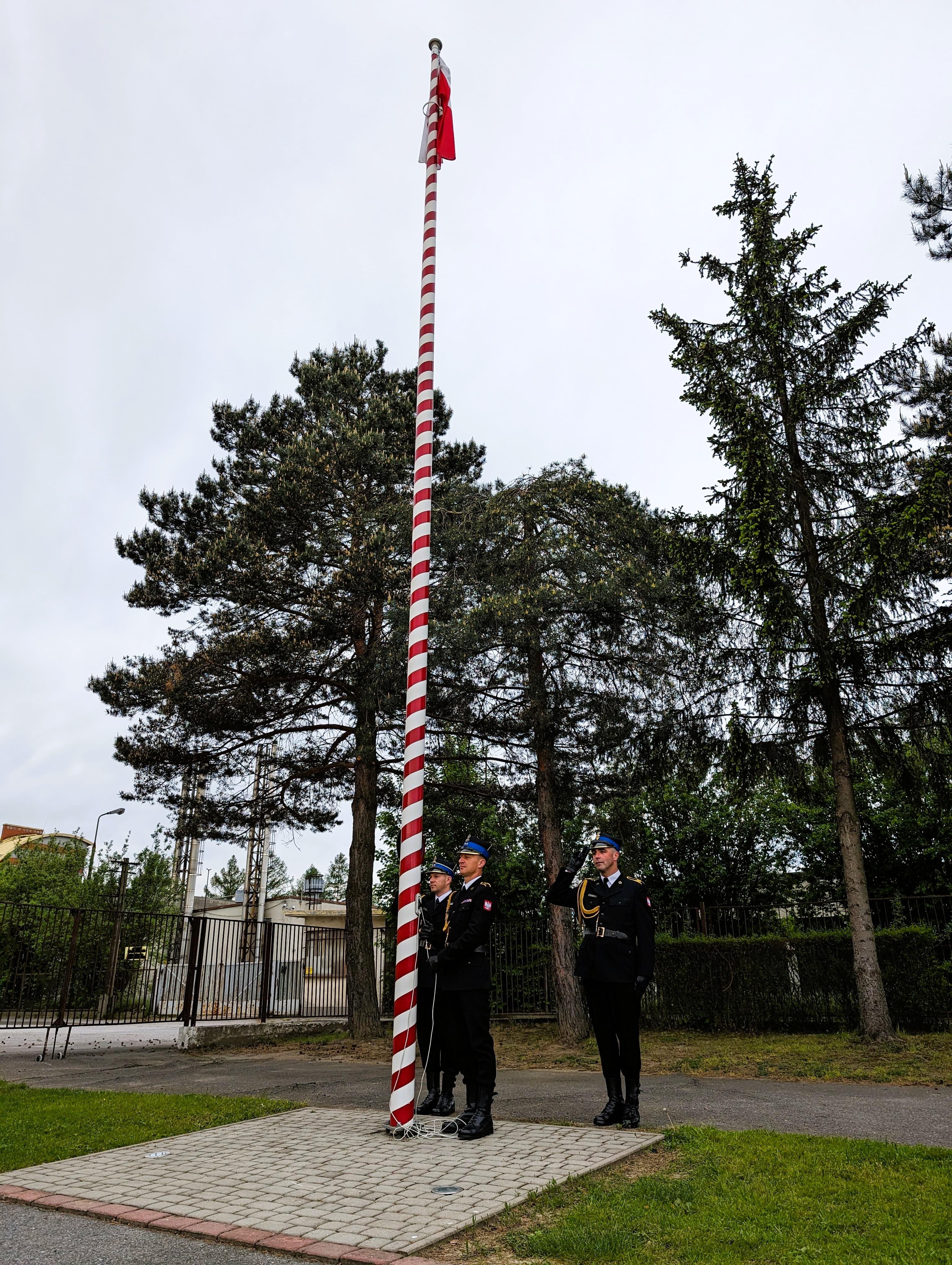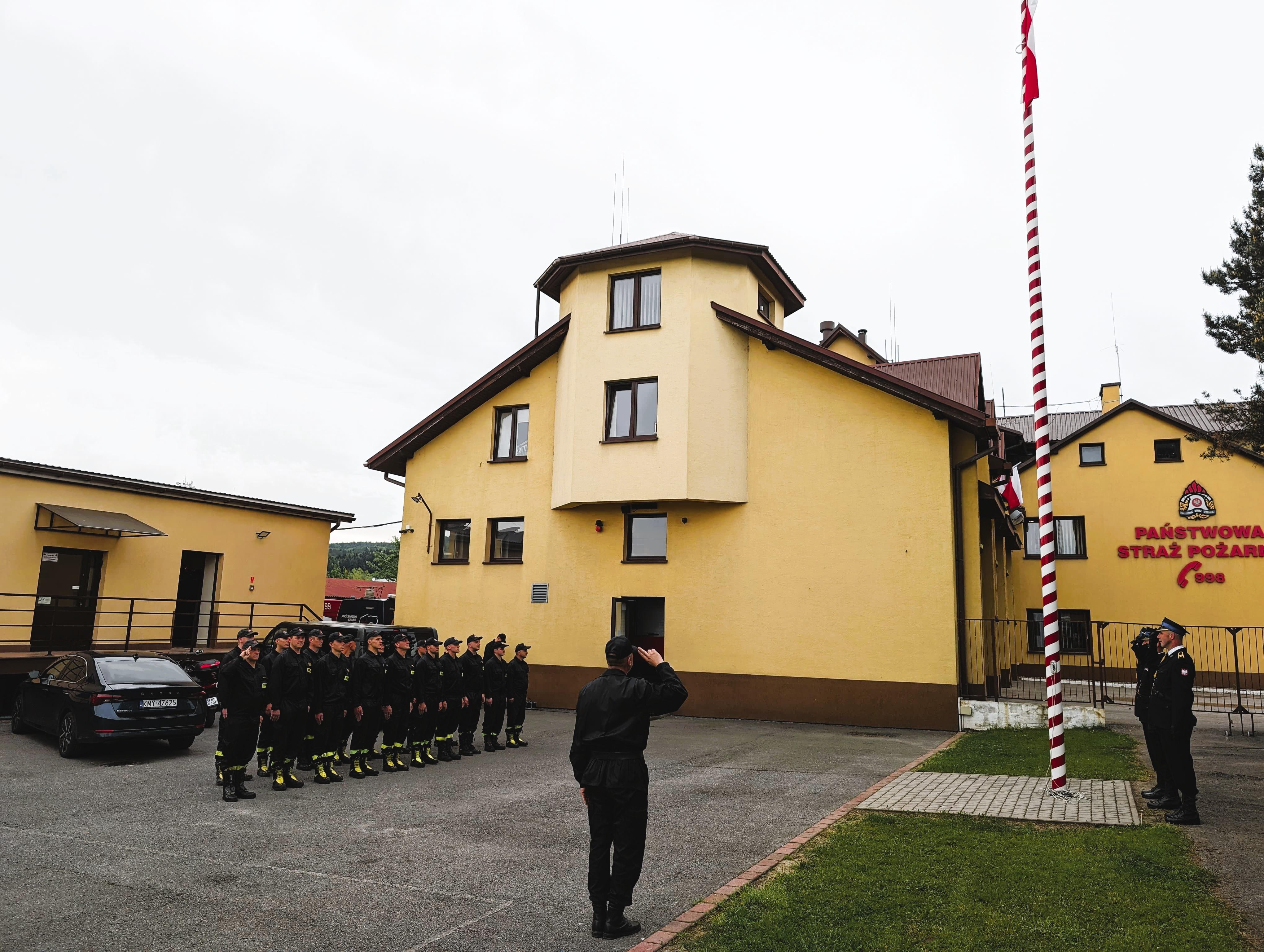 Jak co roku, funkcjonariusze Komendy Powiatowej Państwowej Straży Pożarnej w Myślenicach, podczas zmiany służbowej, dokonali uroczystego podniesienia flagi państwowej na maszt.