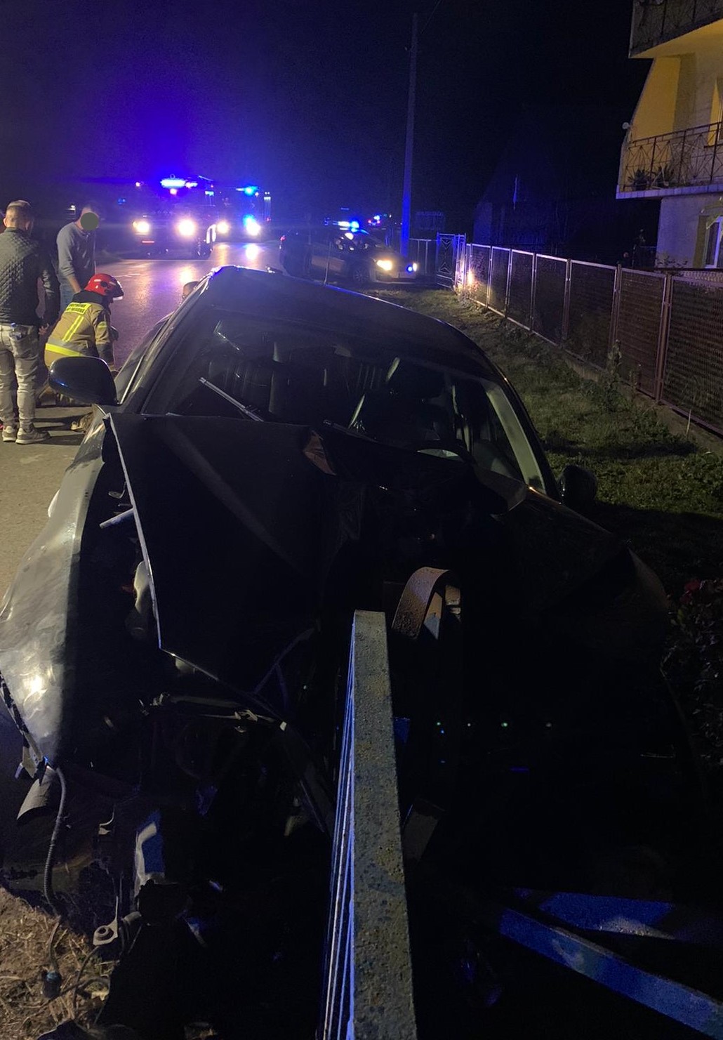 W dniu 16 października o godzinie 3.41 do SKKP PSP w Myślenicach wpłynęło zgłoszenie o wjechaniu samochodu osobowego w barierę ochronną mostu na drodze powiatowej. W wyniku zdarzenia poszkodowane zostały dwie osoby, które o własnych siłach opuściły pojazd przed przybyciem zastępów straży pożarnej. Pierwsi przybyli na miejsce strażacy OSP zabezpieczyli miejsce zdarzenia, udzielili Kwalifikowanej Pierwszej Pomocy osobom poszkodowanym poprzez stabilizację odcinka szyjnego kręgosłupa, termoizolację oraz wsparcie psychiczne. Po przekazaniu rannych ratownikom medycznym zostały one przewiezione przez ZRM do szpitala w Myślenicach. Dalsze działania polegały na sorpcji płynów eksploatacyjnych, usunięciu rozbitych elementów pojazdu z jezdni. W działaniach udział brały zastępy JRG Myślenice, OSP Dąbie.