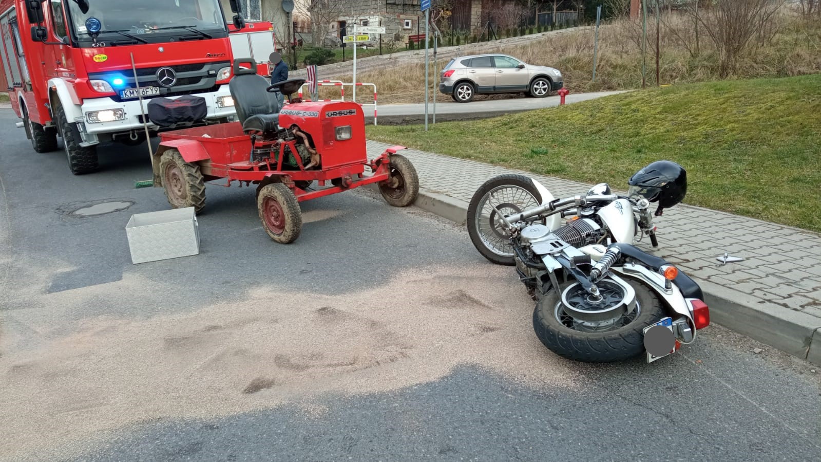 Grudniowe zderzenie motocykla z ciągnikiem SAM